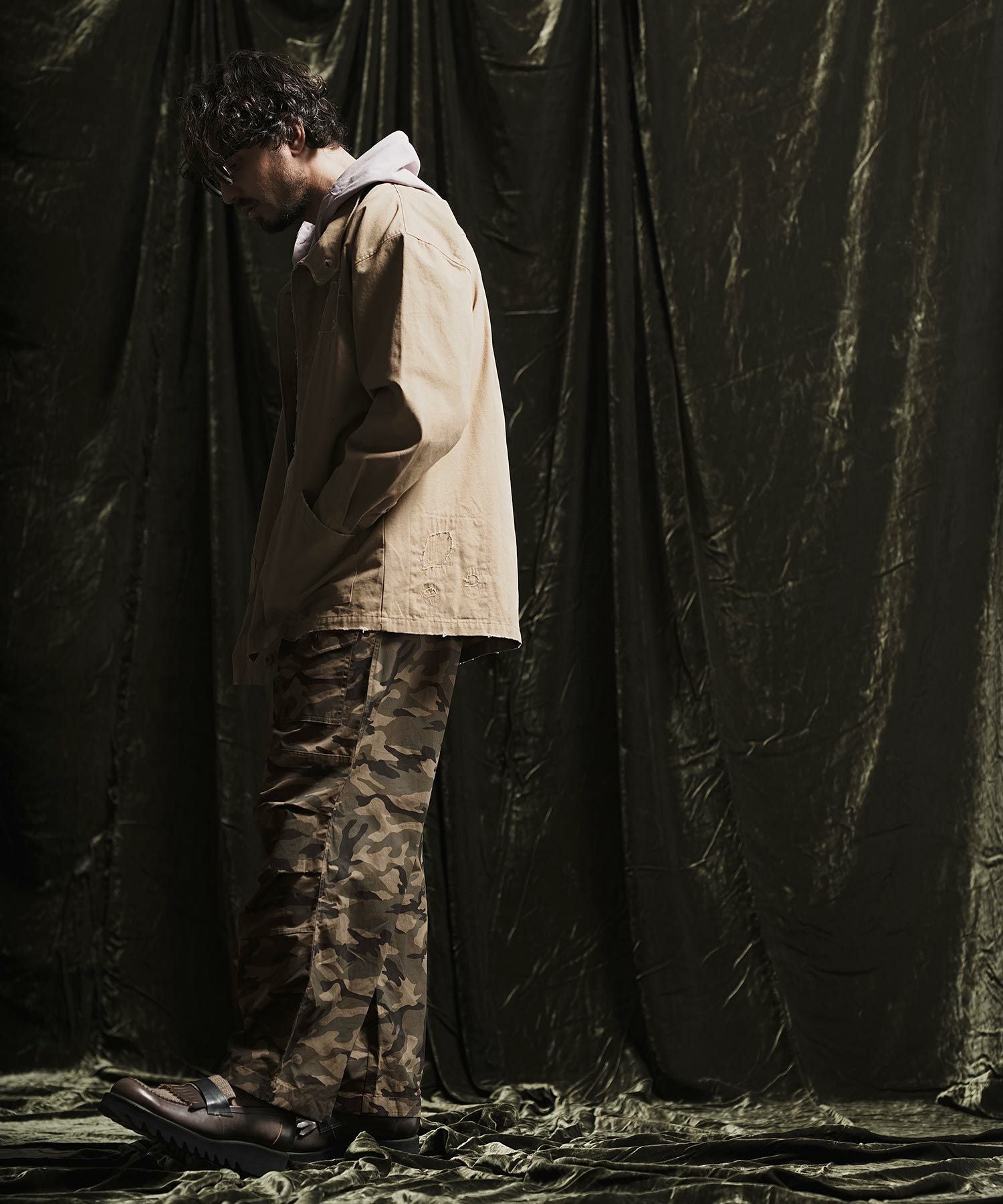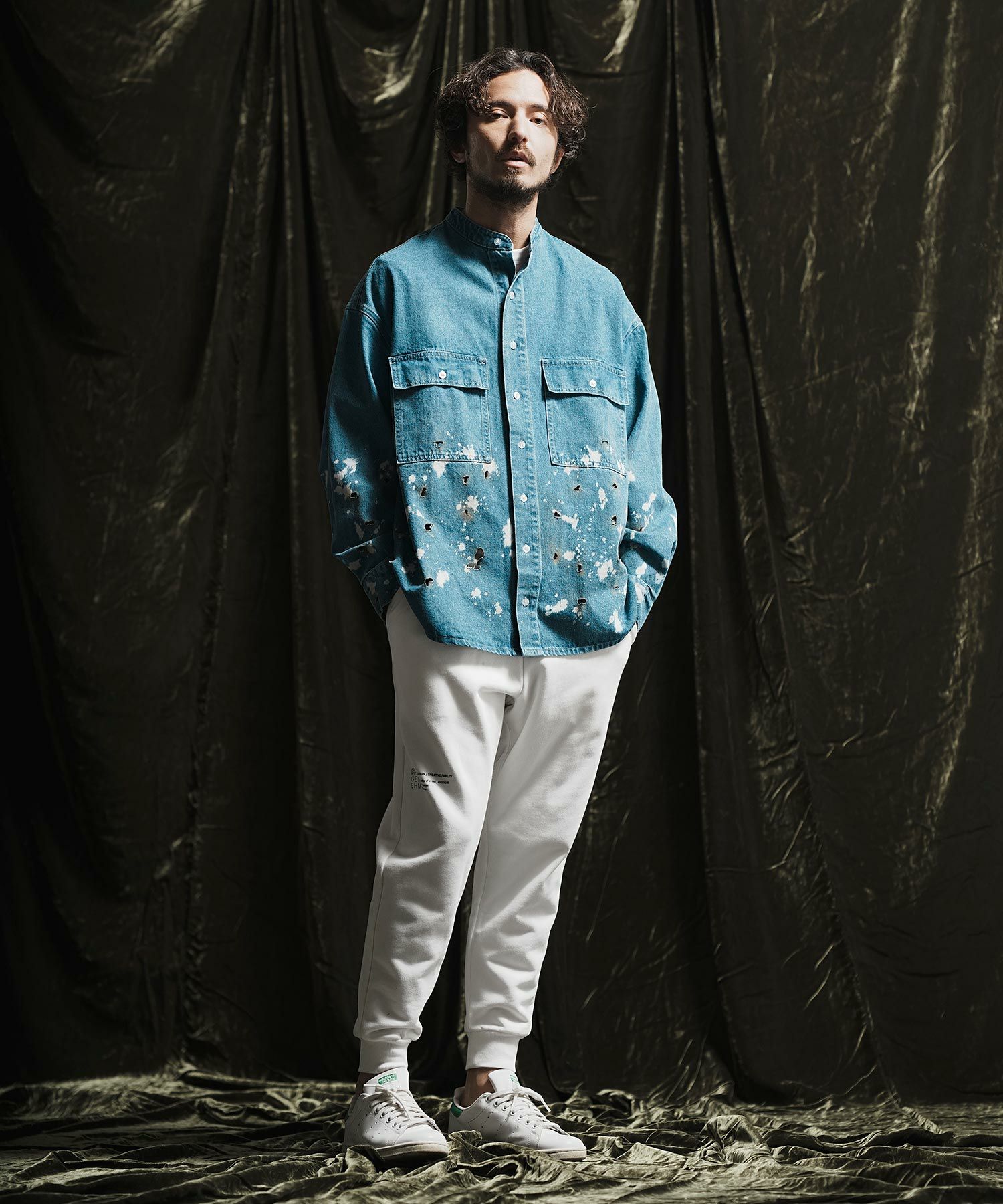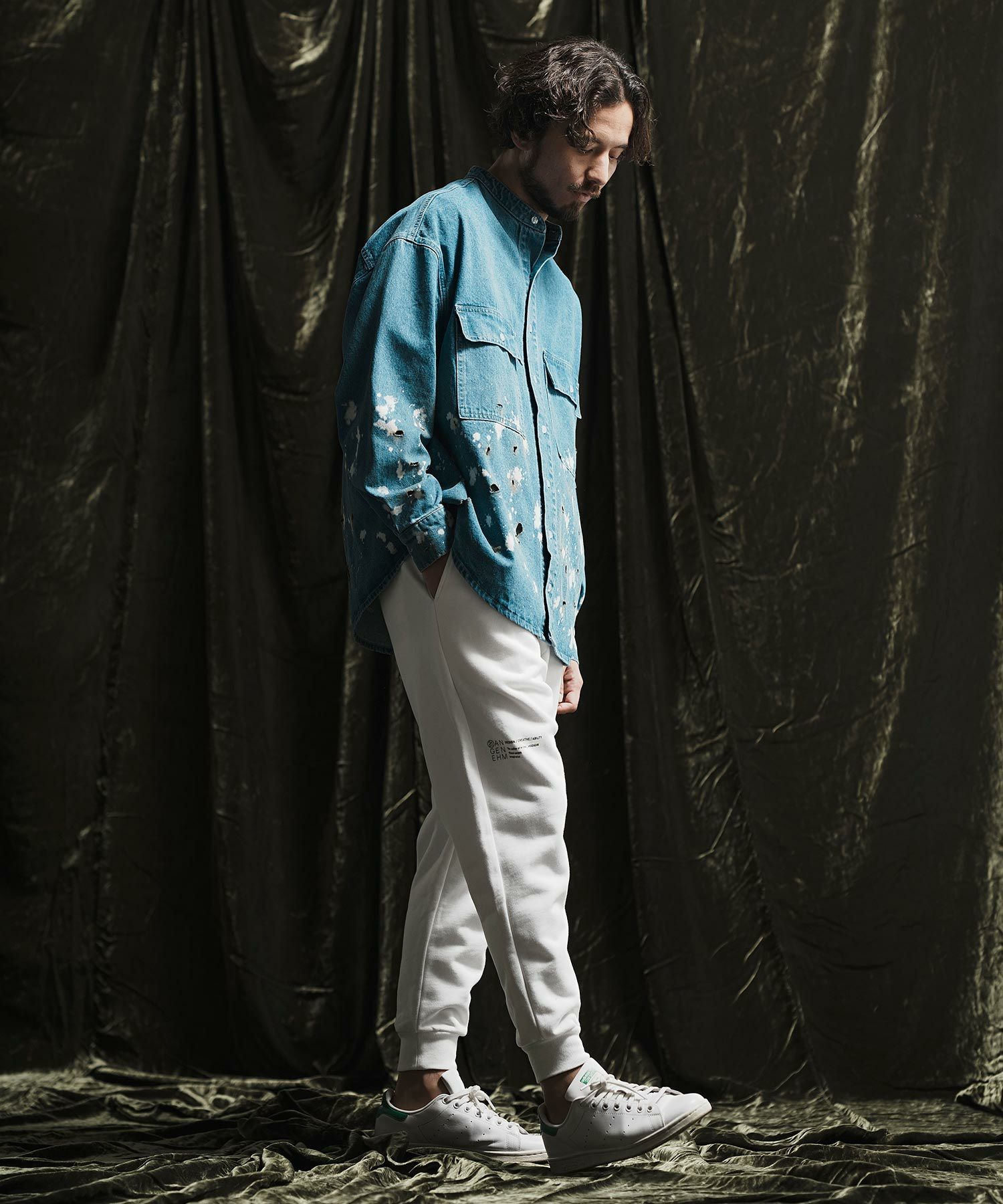 ANGENEHM 50%OFF【ANGENEHM(アンゲネーム)】 Patchwork design deformation standing collar shirt スタンドカラーシャツジャケット(AG02-032sce)