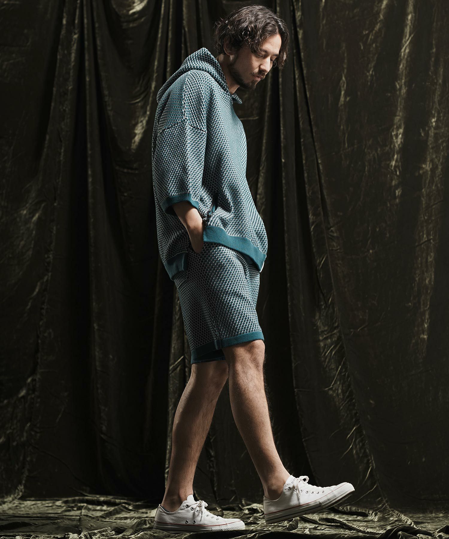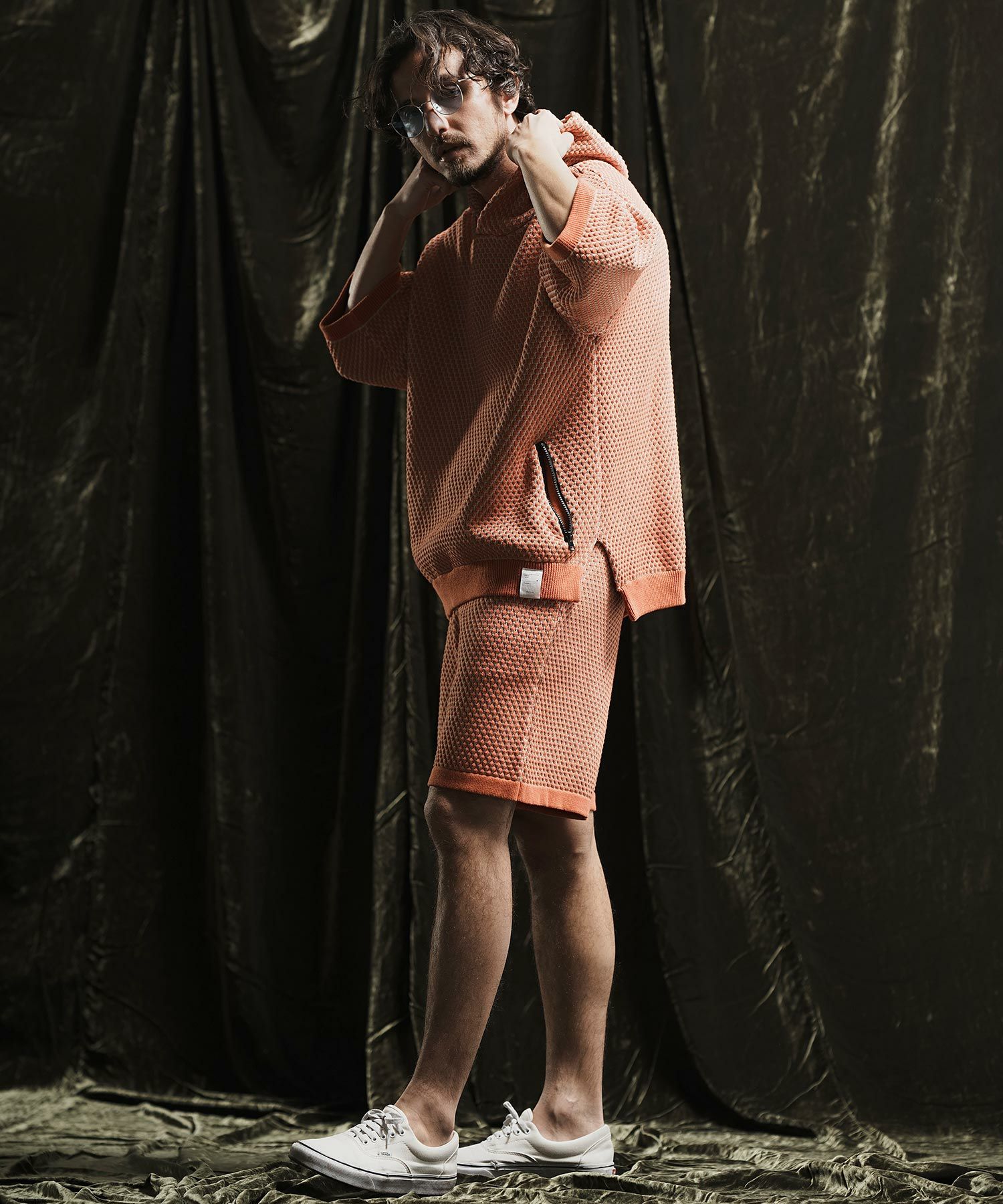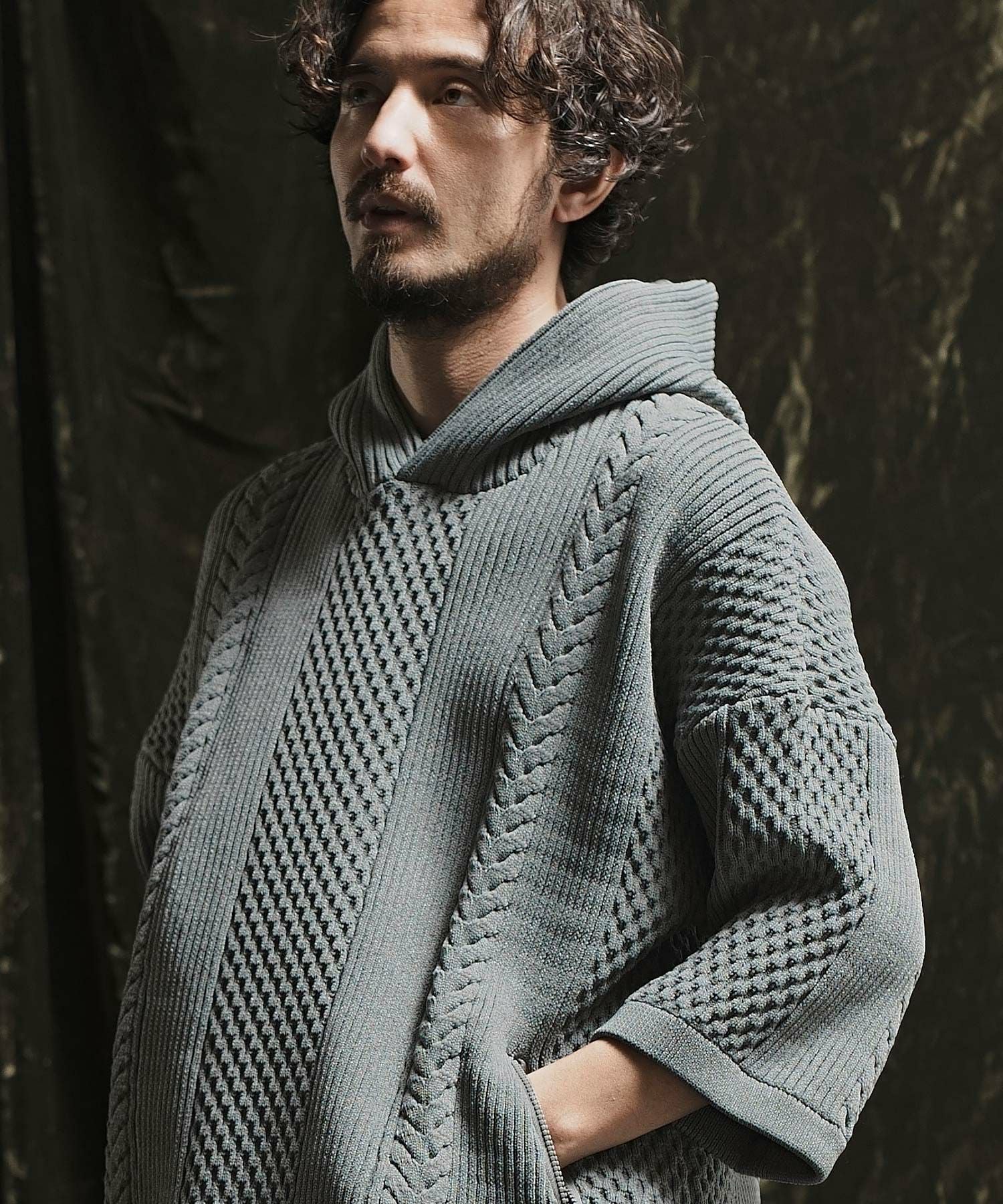 ANGENEHM 50%OFF【ANGENEHM(アンゲネーム)】Light yarn cable stitch short sleeve hoodie パーカー(AG02-035sce)
