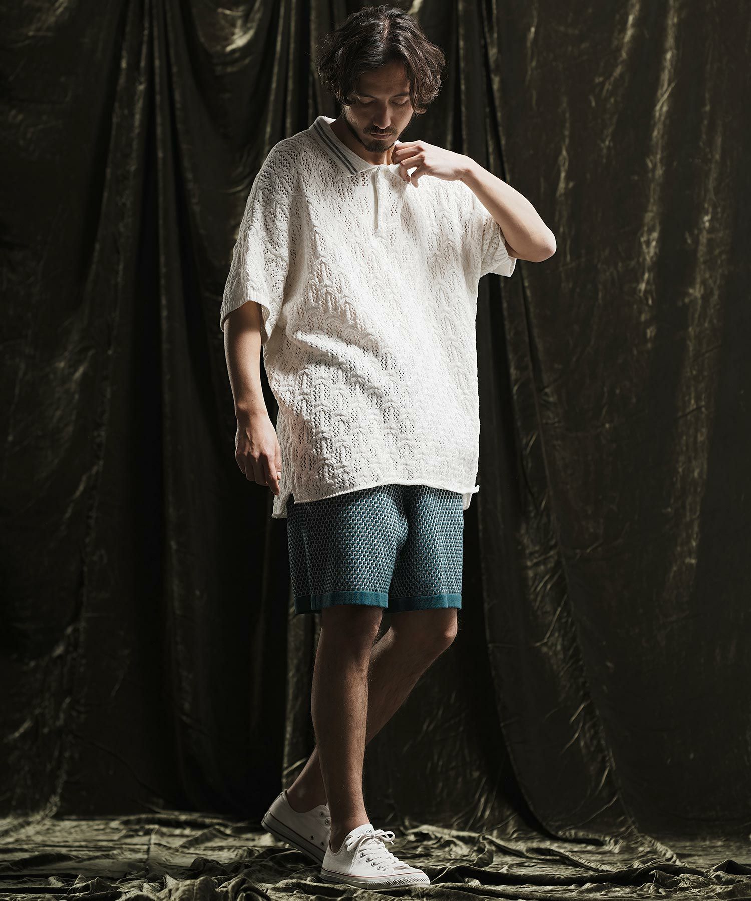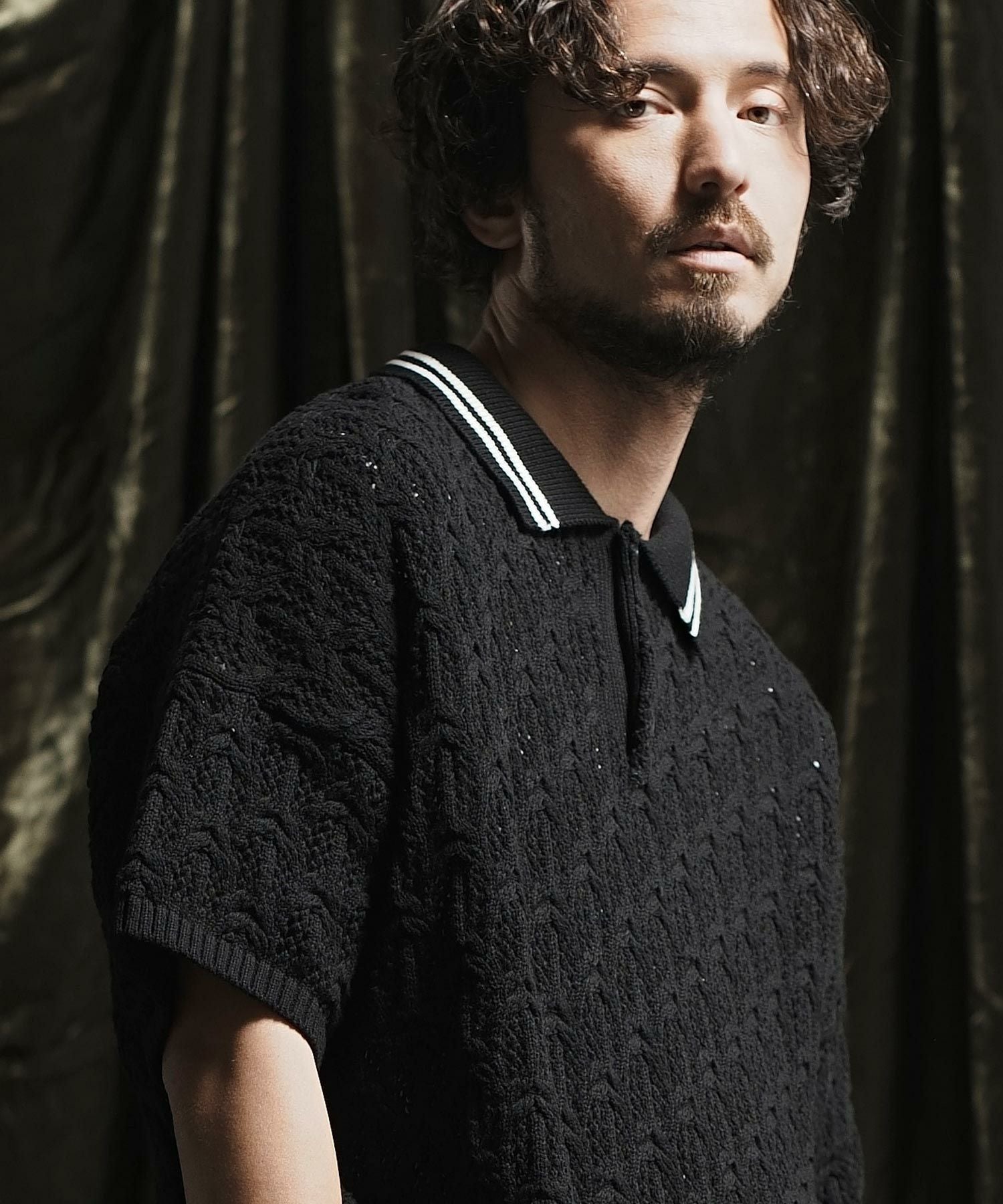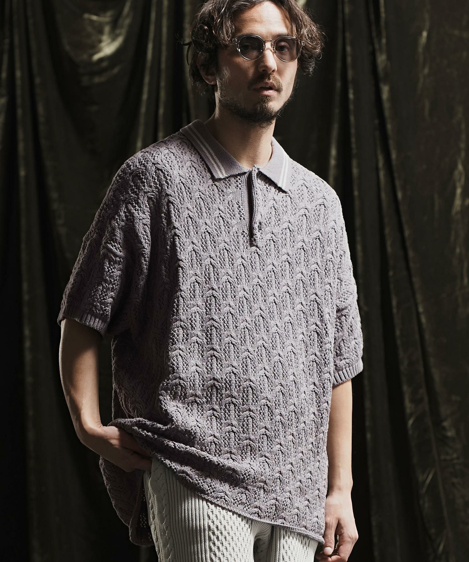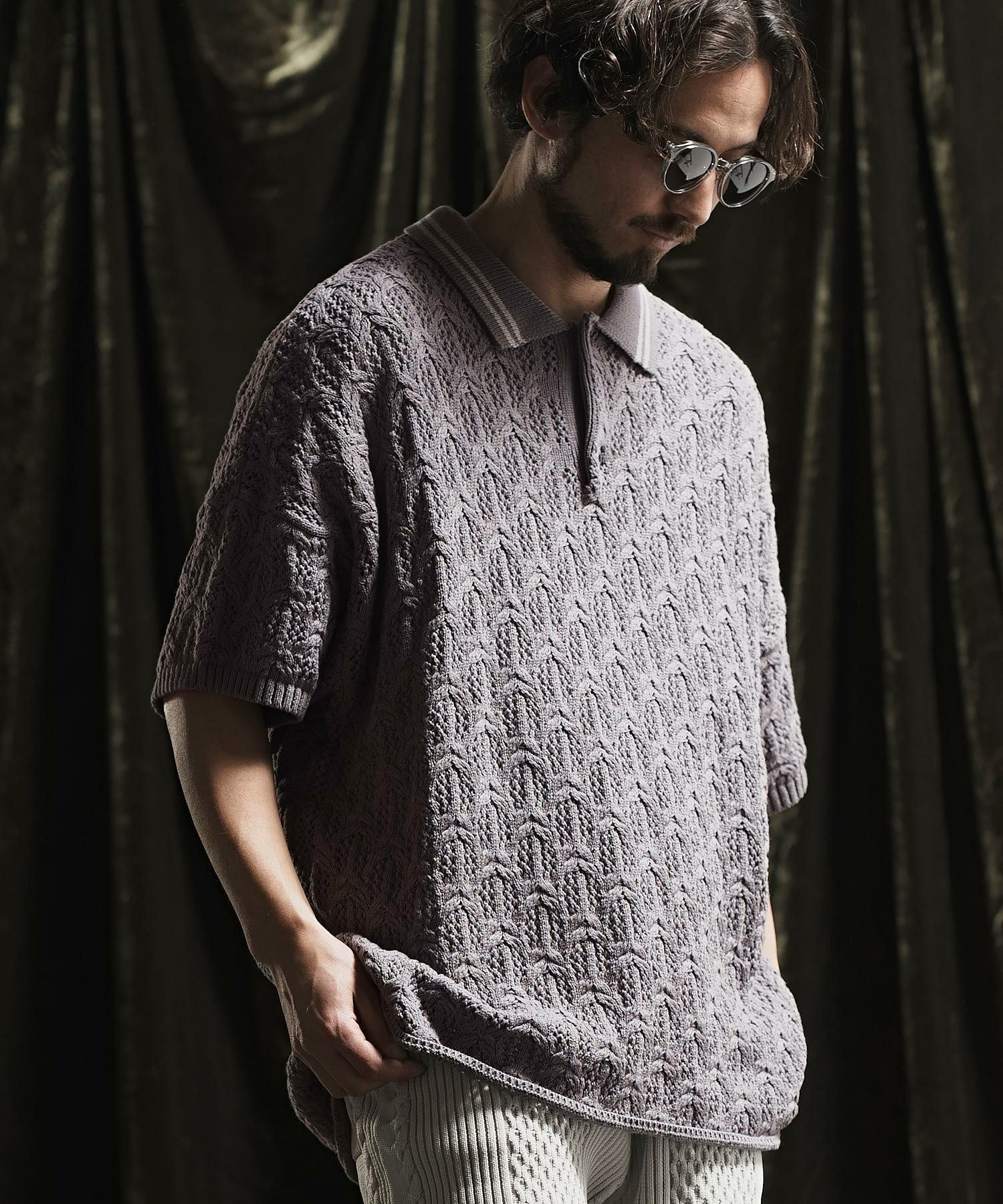 ANGENEHM 50%OFF【ANGENEHM(アンゲネーム)】 Crochet needle knitting polo shirt ポロシャツ(AG02-023sce)