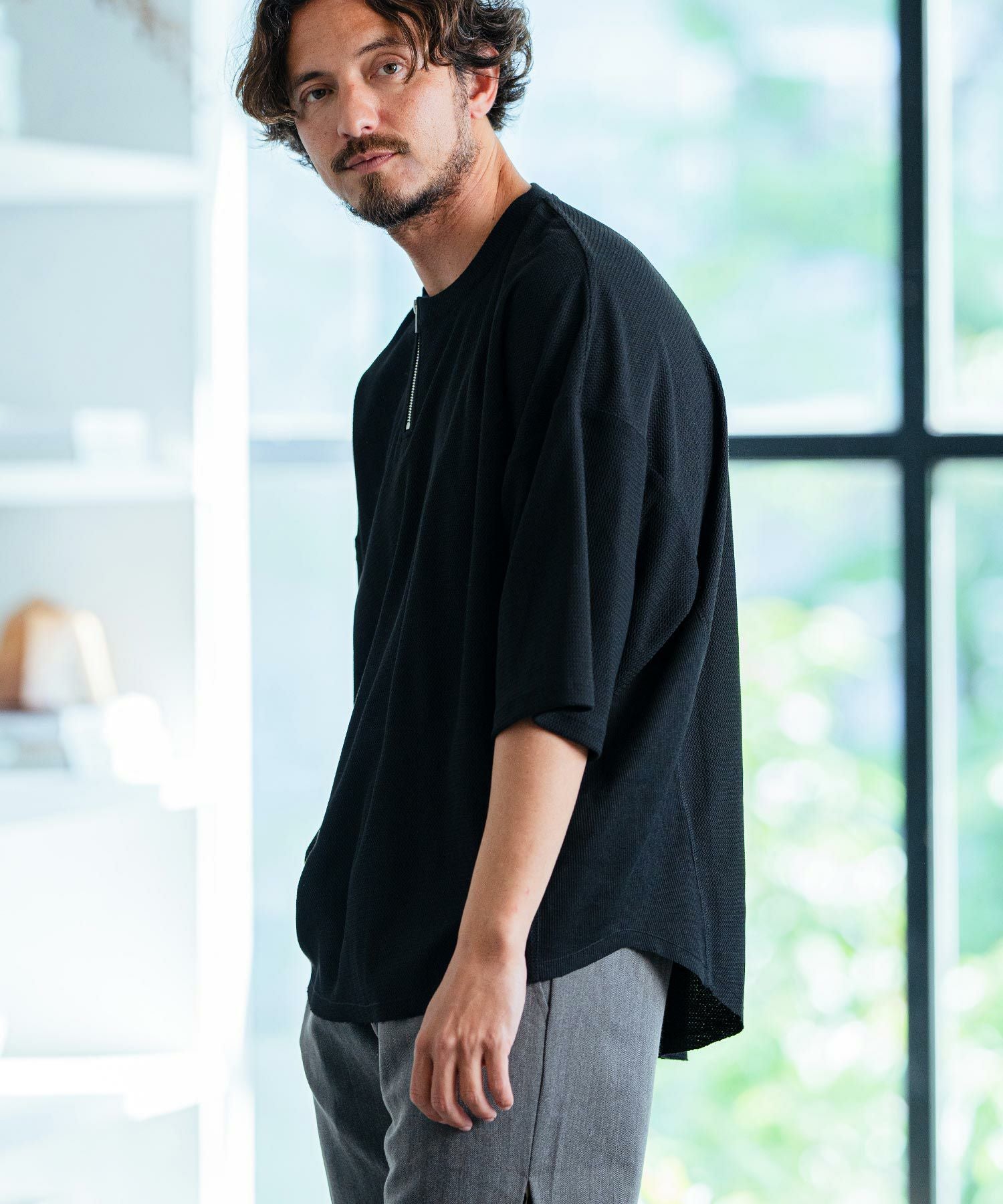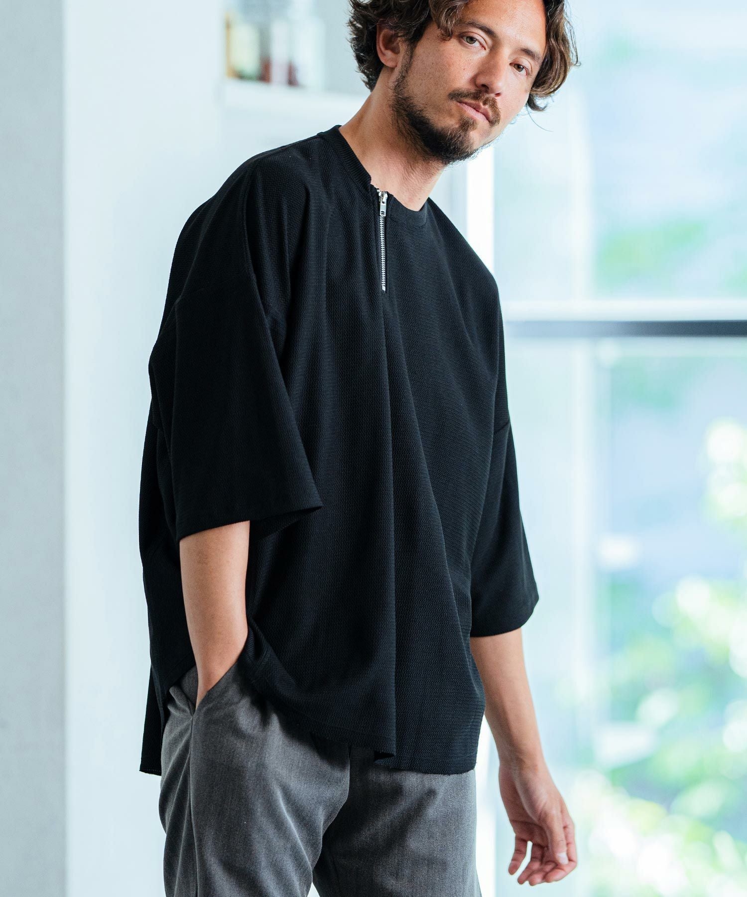 Magine 50%OFF【Magine(マージン)】Deformed waffle jacquard fastener design T-shirt カットソー(MGN-241-2-003)