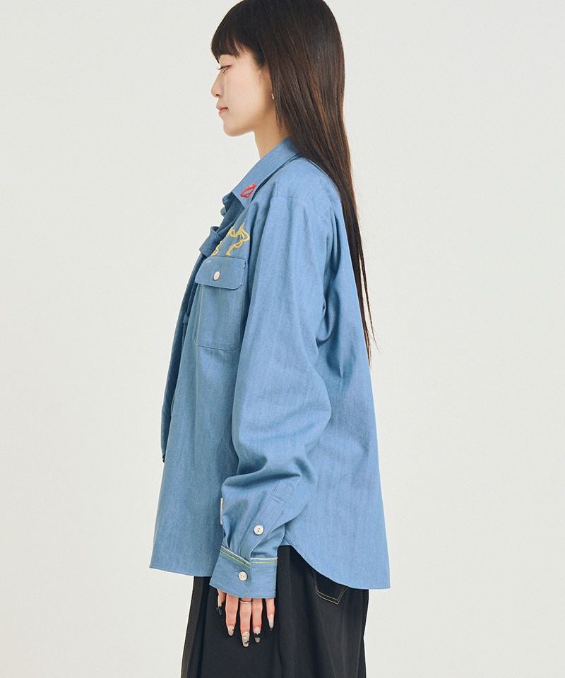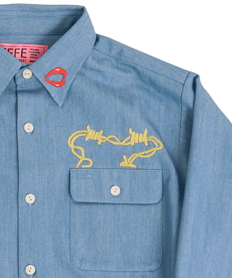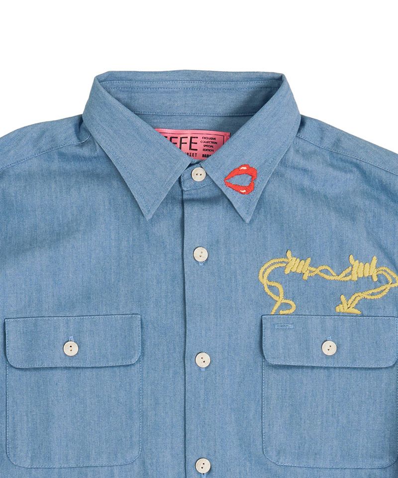 EFFECTEN 【EFFECTEN(エフェクテン)】【予約販売3月下旬~4月上旬入荷】Stitch denim shirts デニムシャツ(efsal-11)