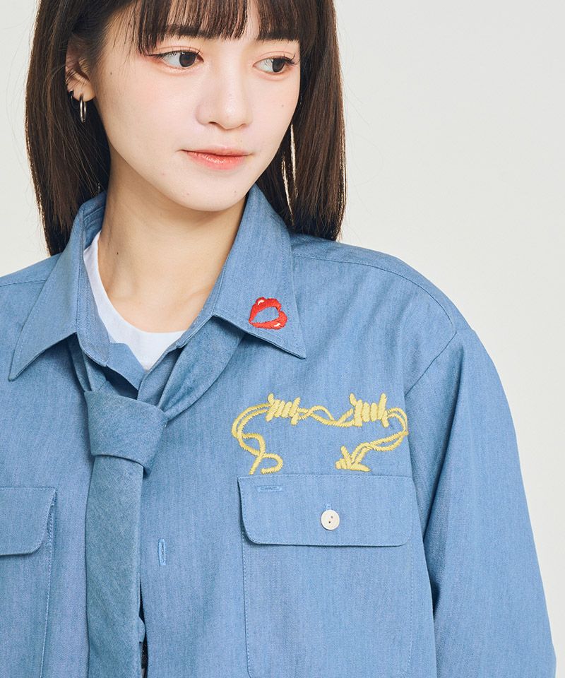 CRIMIE 【CRIMIE(クライミー)】【予約販売4月下旬~5月上旬入荷】TAILORED SWALLOW EMBROIDERY S-S SHIRT - EASY CARE 半袖シャツ(CR1-02F1-SS08)