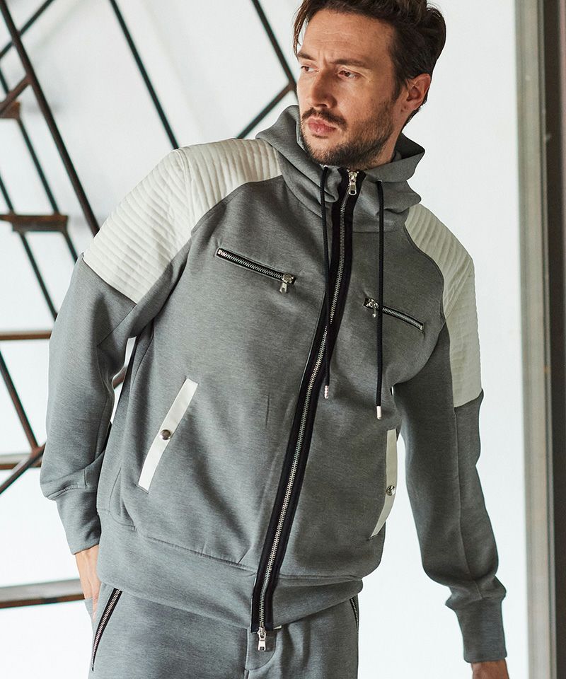 ACANTHUS 50%OFF【ACANTHUS(アカンサス)】Double-knit Biker Hoodie ジップアップパーカー(DK2501)