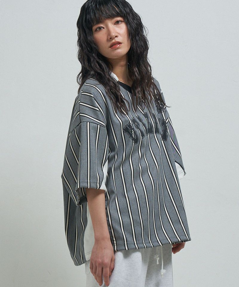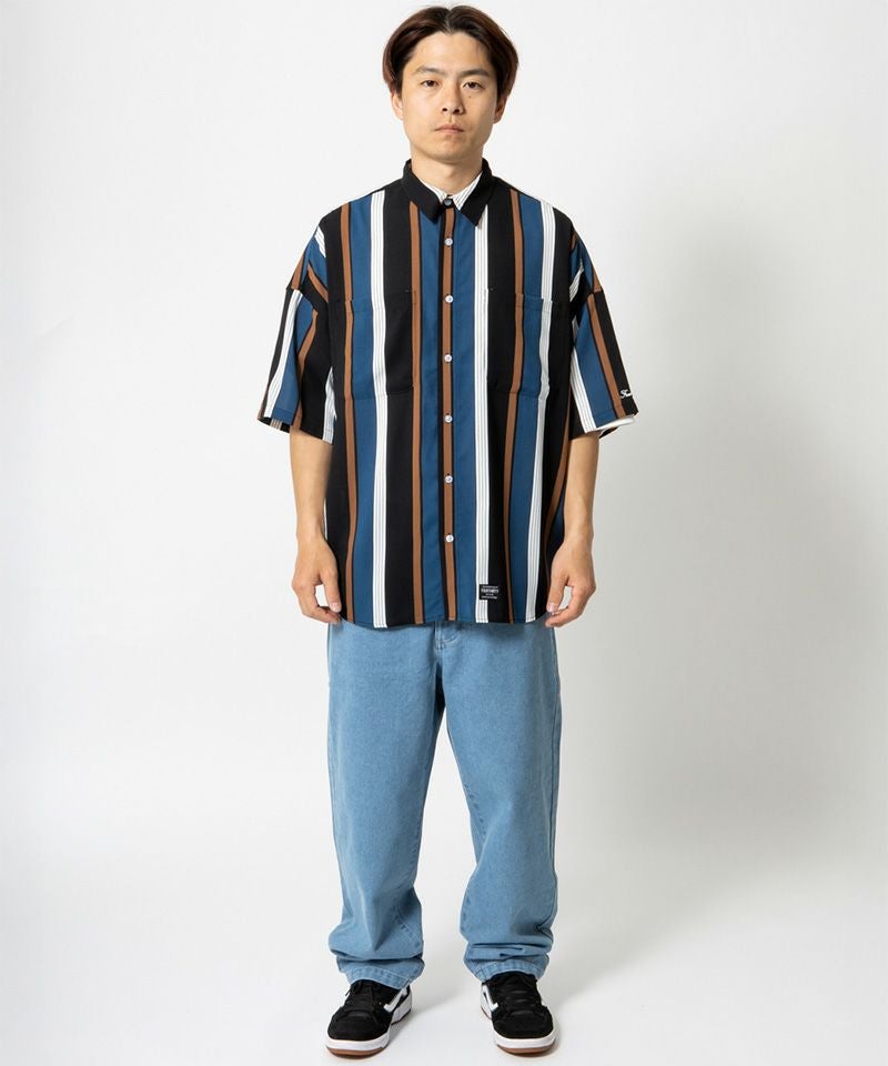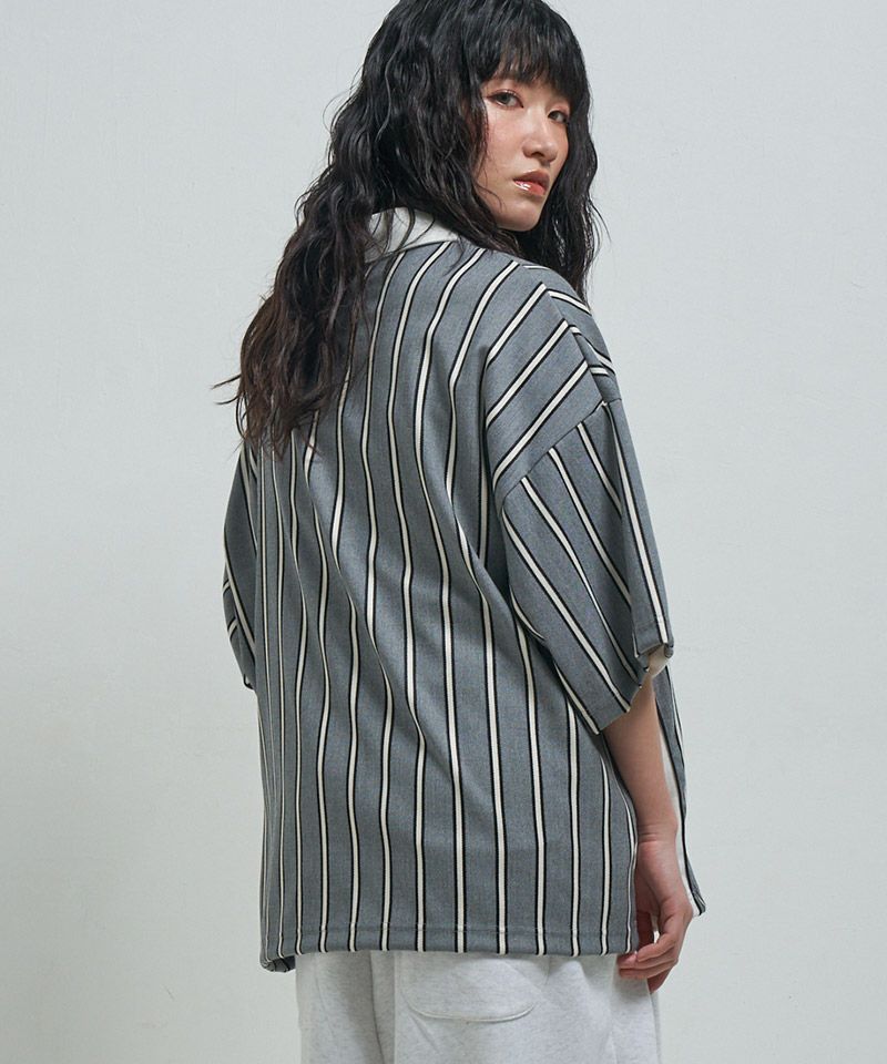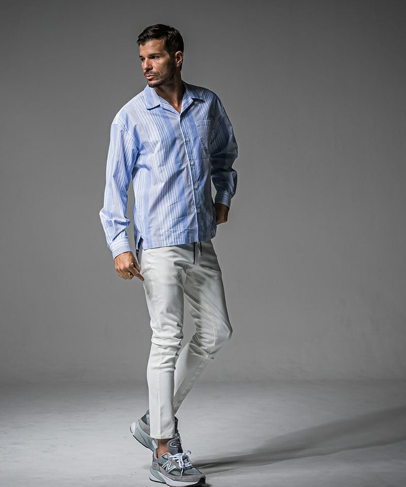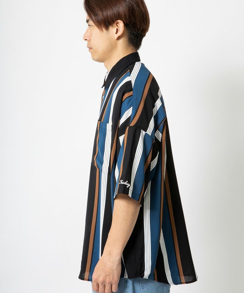 430 【430(フォーサーティ)】S-S STRIPE BIG SHIRT ストライプシャツ(25-086)