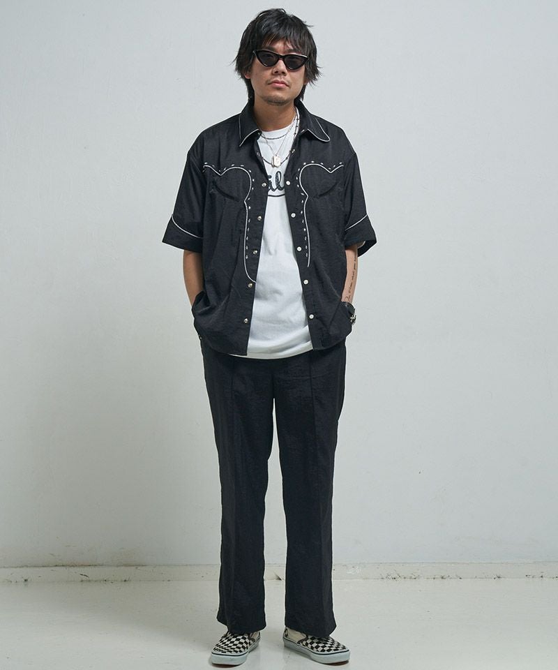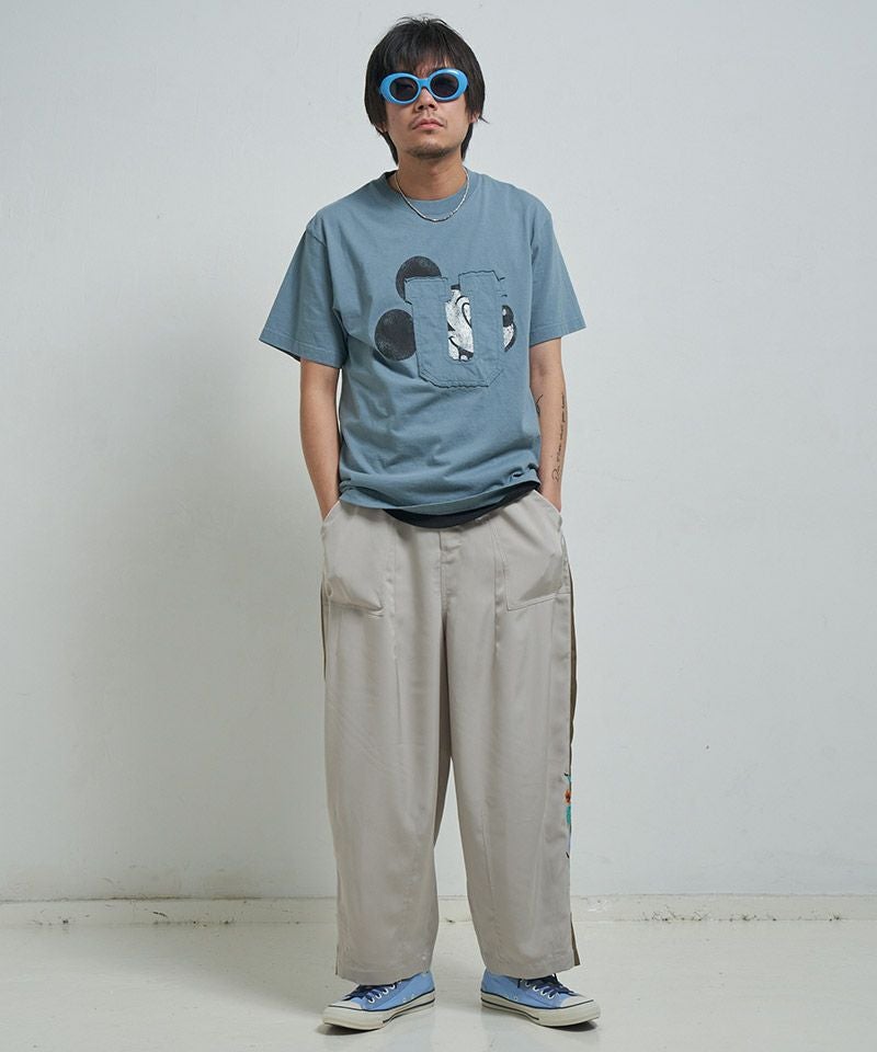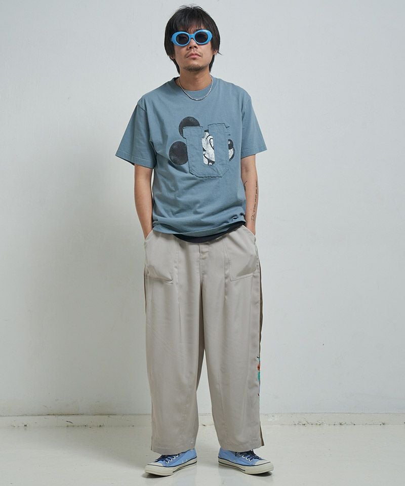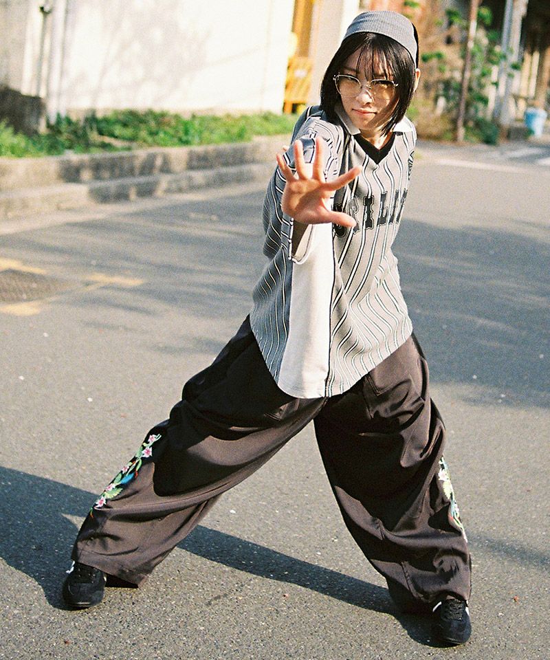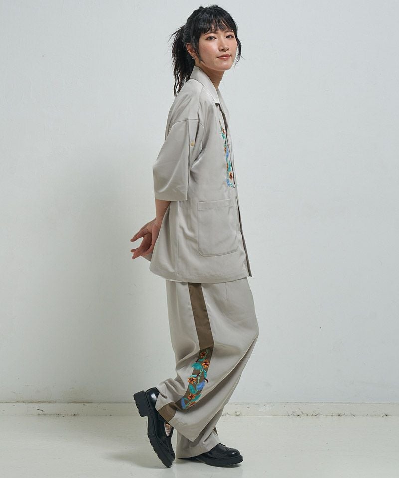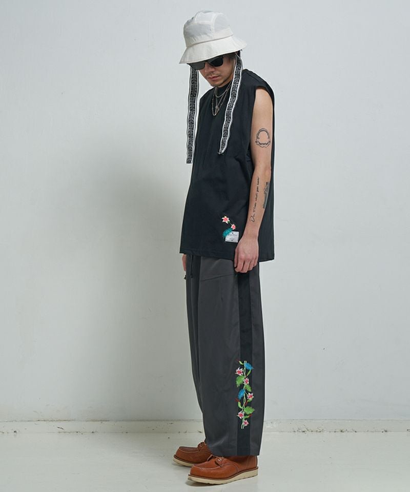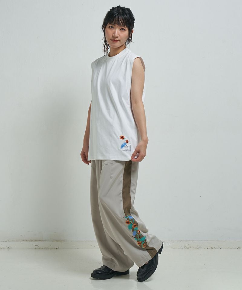 EFFECTEN 【EFFECTEN(エフェクテン)】 Hibiscus embroidery line wide tapered pants テーパードワイドパンツ(efite-08)