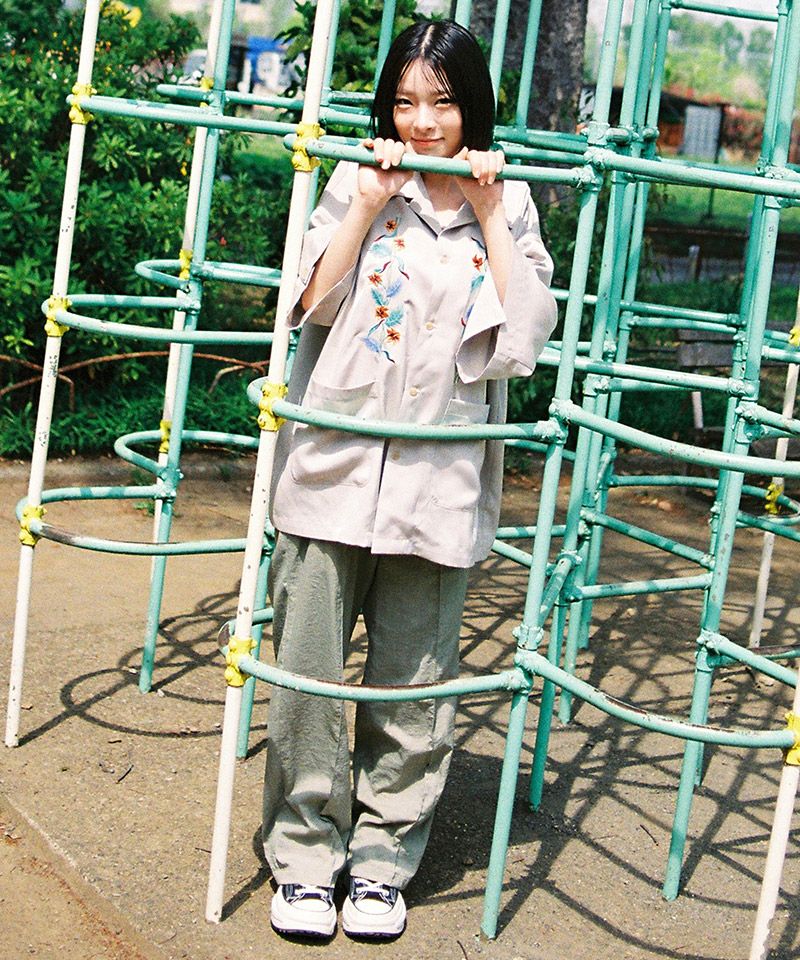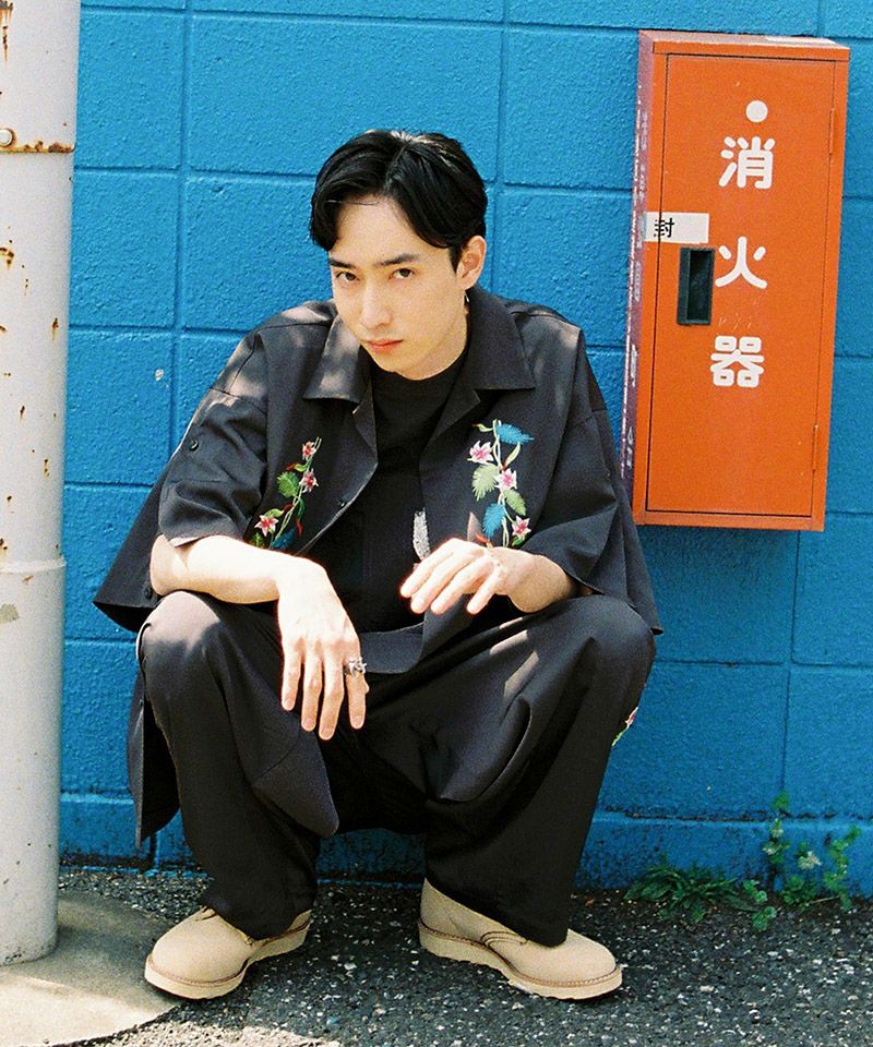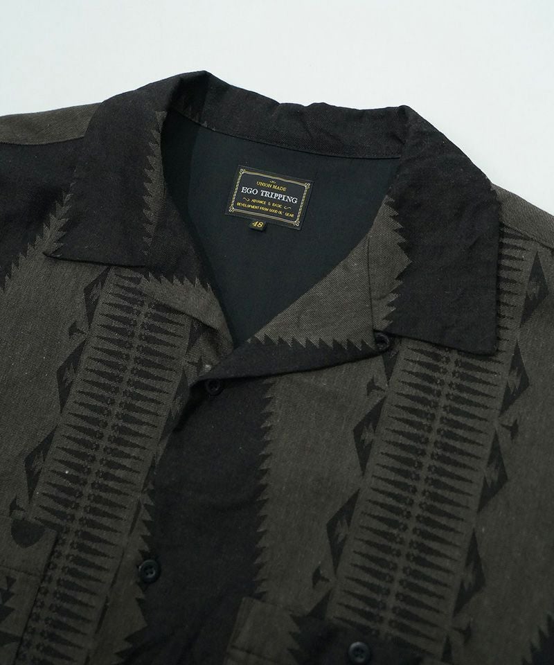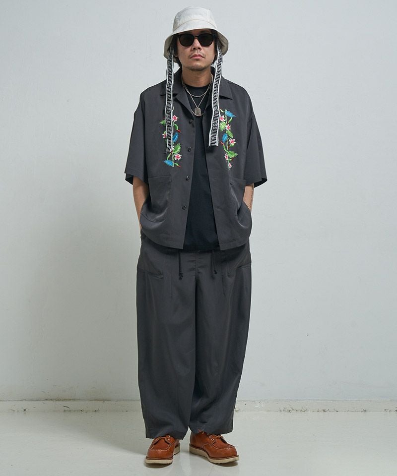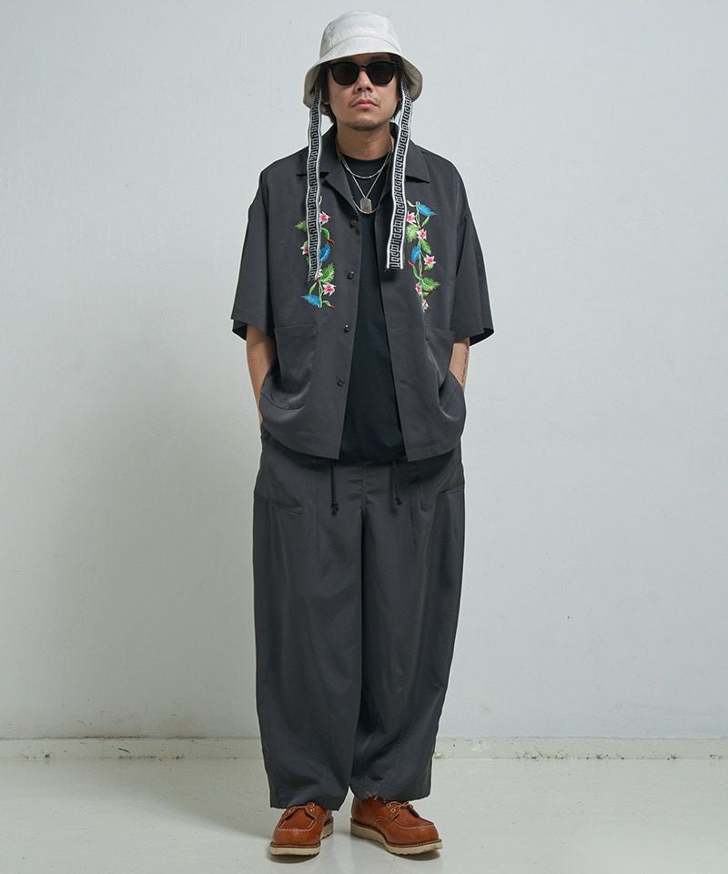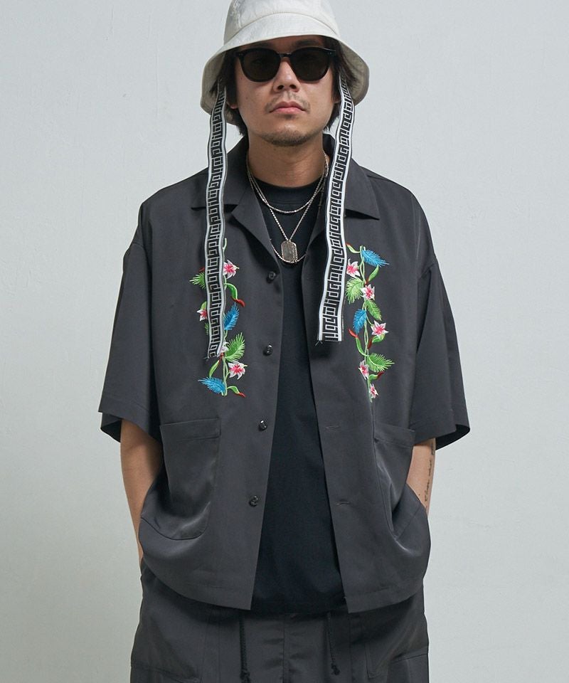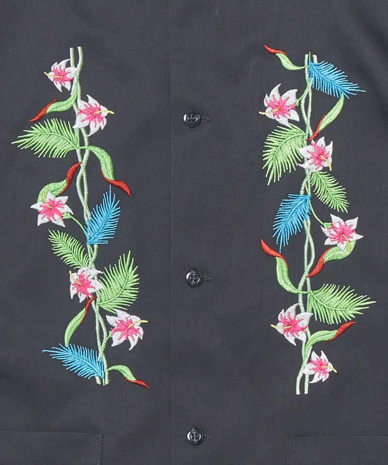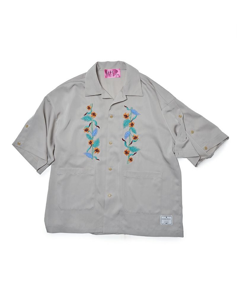 EFFECTEN 【EFFECTEN(エフェクテン)】【予約販売6月下旬~7月上旬入荷】 Hibiscus embroidery open collar s-s shirts 開襟シャツ(efite-07)