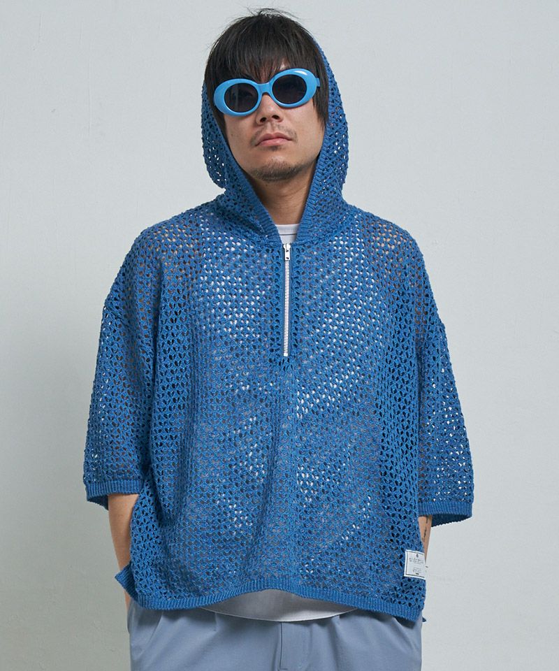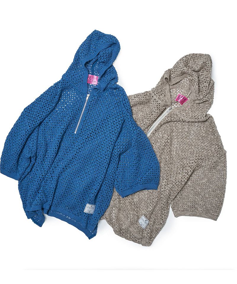 EFFECTEN 【EFFECTEN(エフェクテン)】Slab knit half zip hoodie ハーフジップニットフーディー(efite-19)