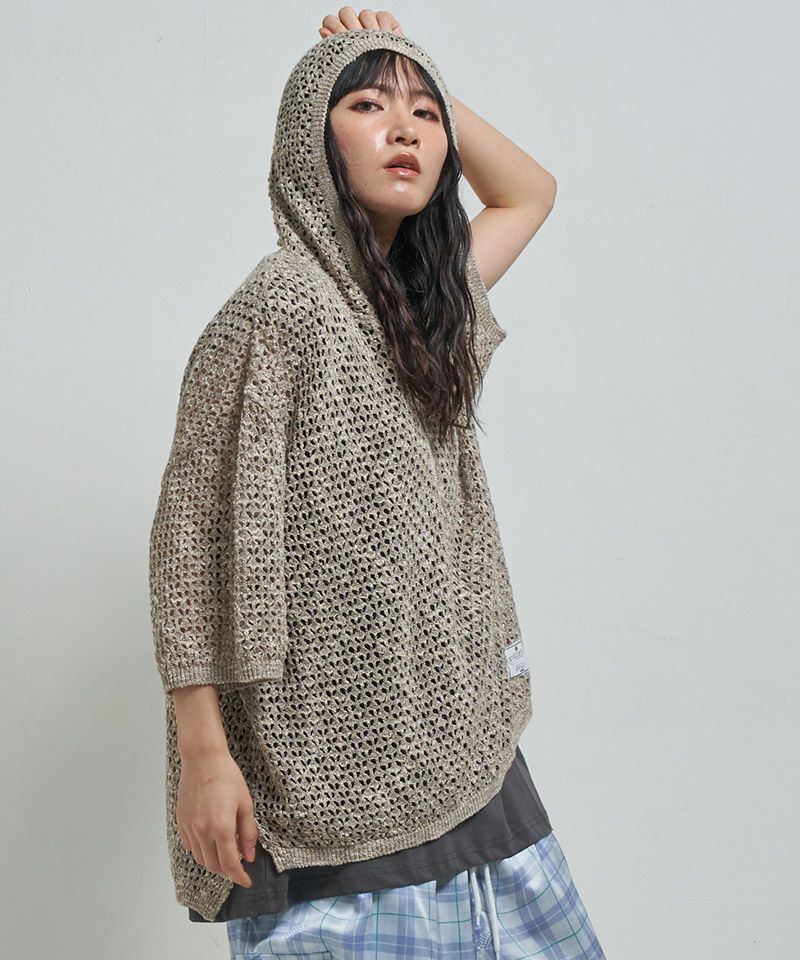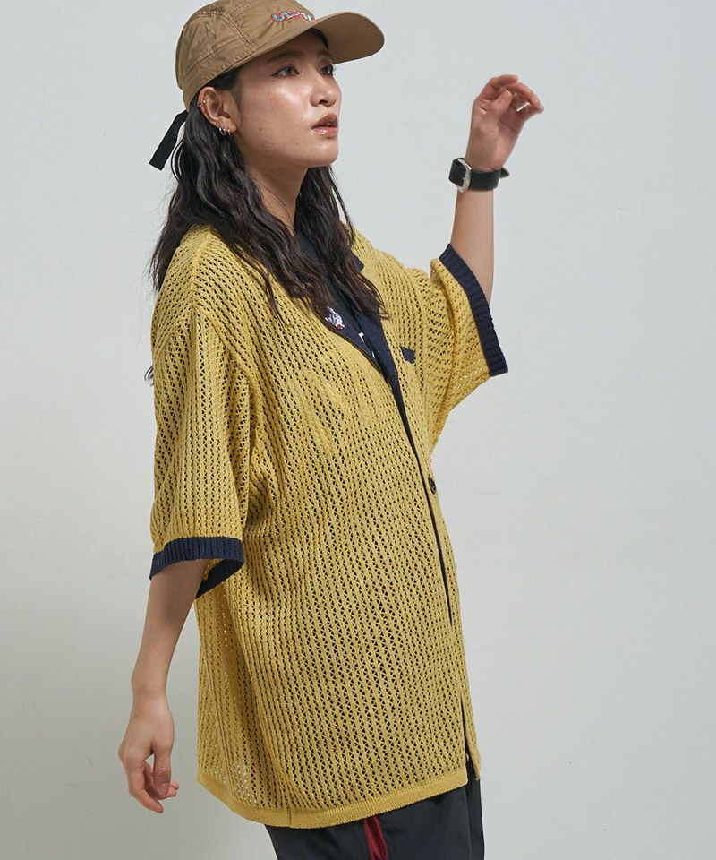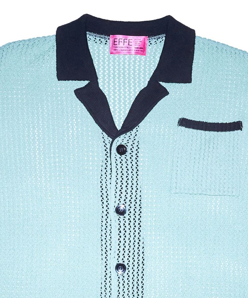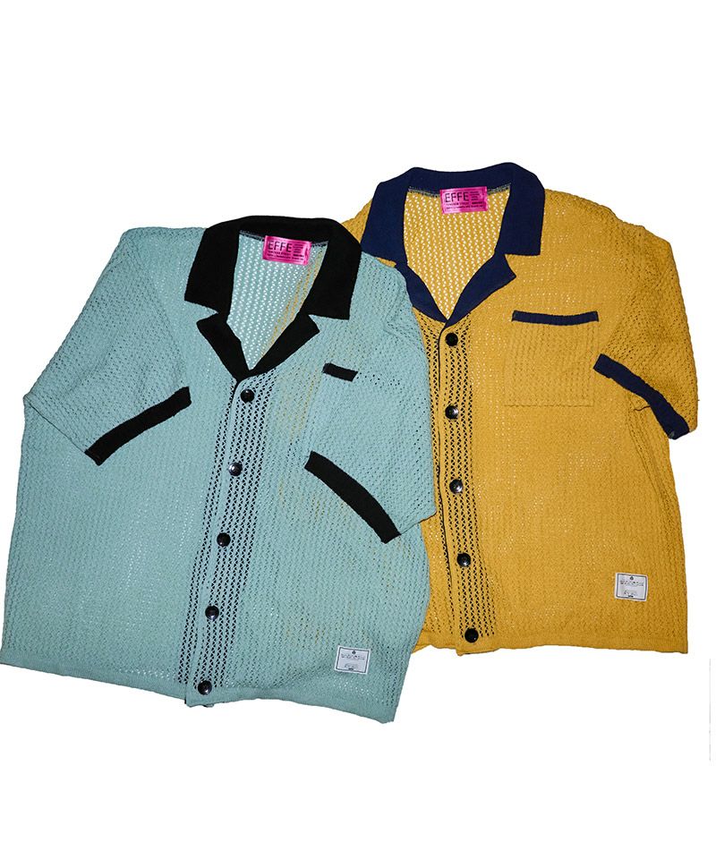 EFFECTEN 【EFFECTEN(エフェクテン)】Net knit s-s shirt ニットシャツ(efite-24)