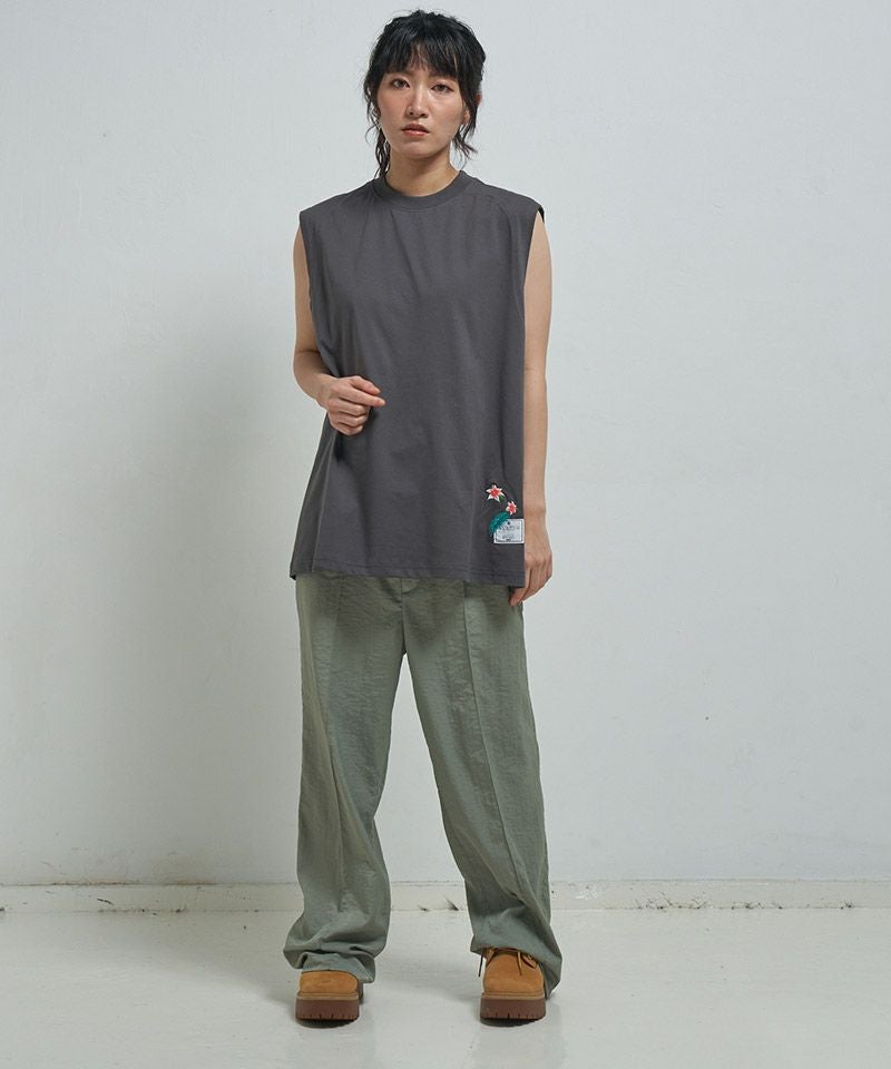EFFECTEN 【EFFECTEN(エフェクテン)】 Hibiscus embroidery sleeveless Tee ノースリーブTシャツ(efite-17)