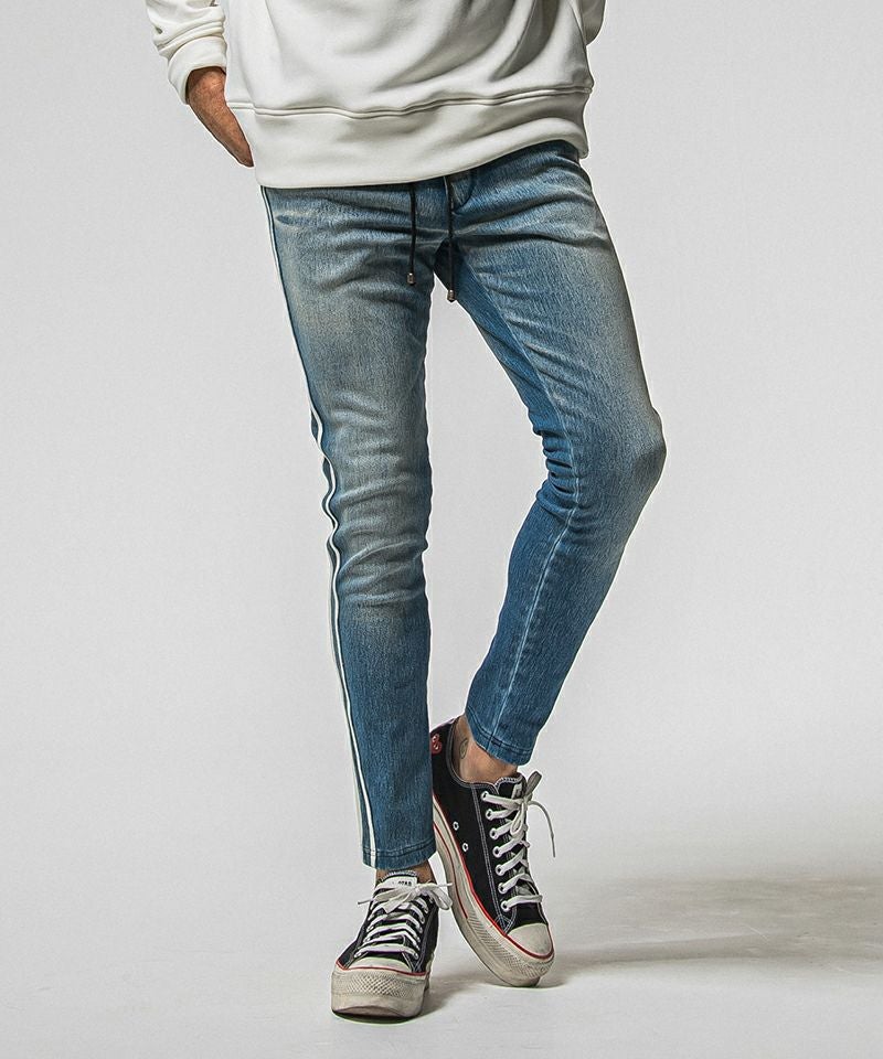 RESOUND CLOTHING 【RESOUND CLOTHING(リサウンドクロージング)】EX denim jersey BLINDLINE PT デニムジャージラインパンツ(RC38-ST-008D)