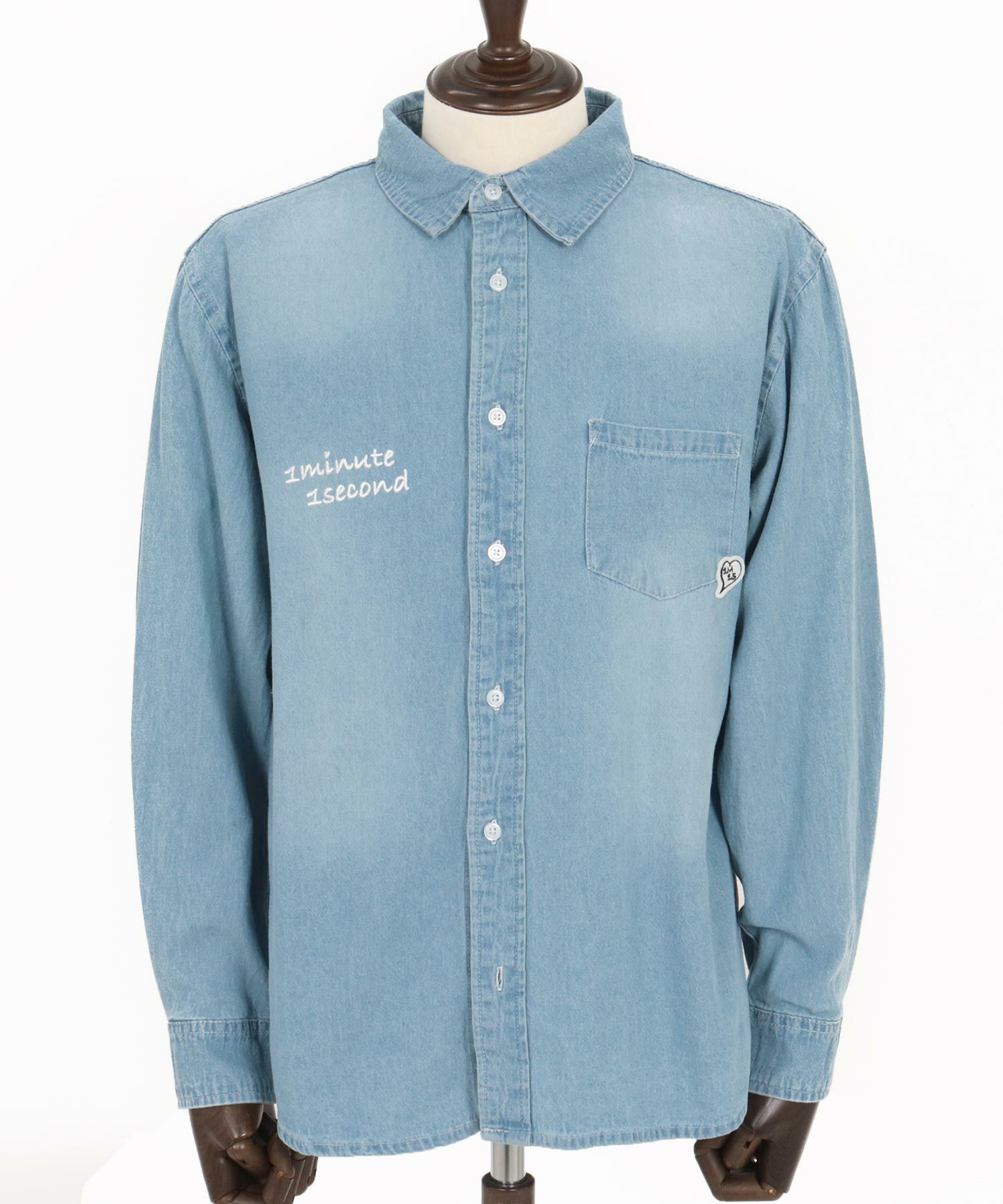 他の画像を見る 1minute 1second 【1minute 1second(ワンミニットワンセカンド)】long sleeve denim shirt with cursive embroidery デニムシャツ(1M25A260) ¥ 22,000 税込 お気に入りに登録する