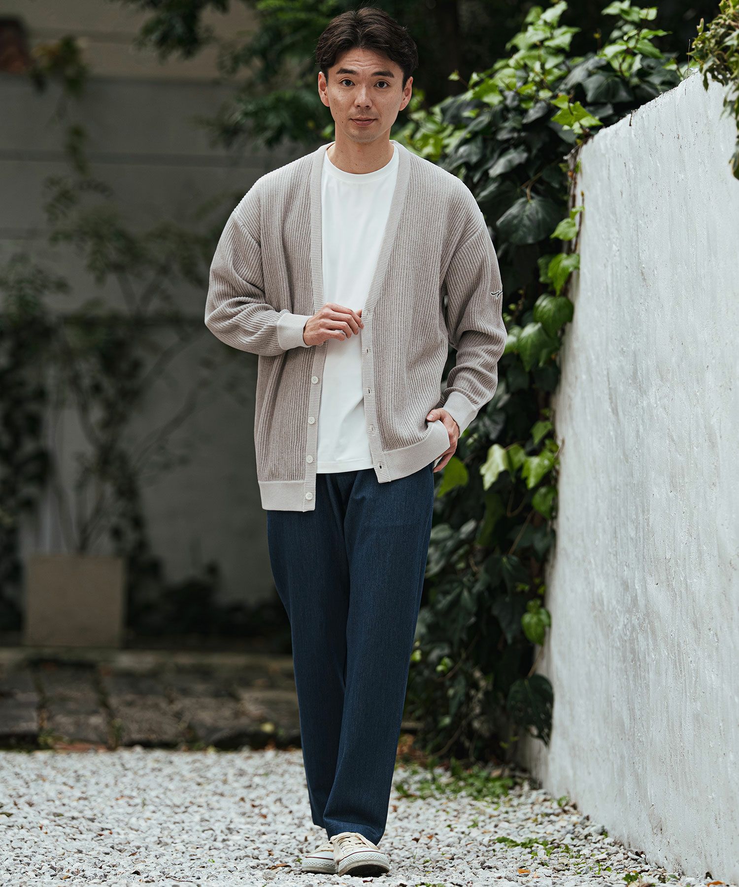 通気性もよく、シャリ感のある肌あたりは春夏の定番ニットに。