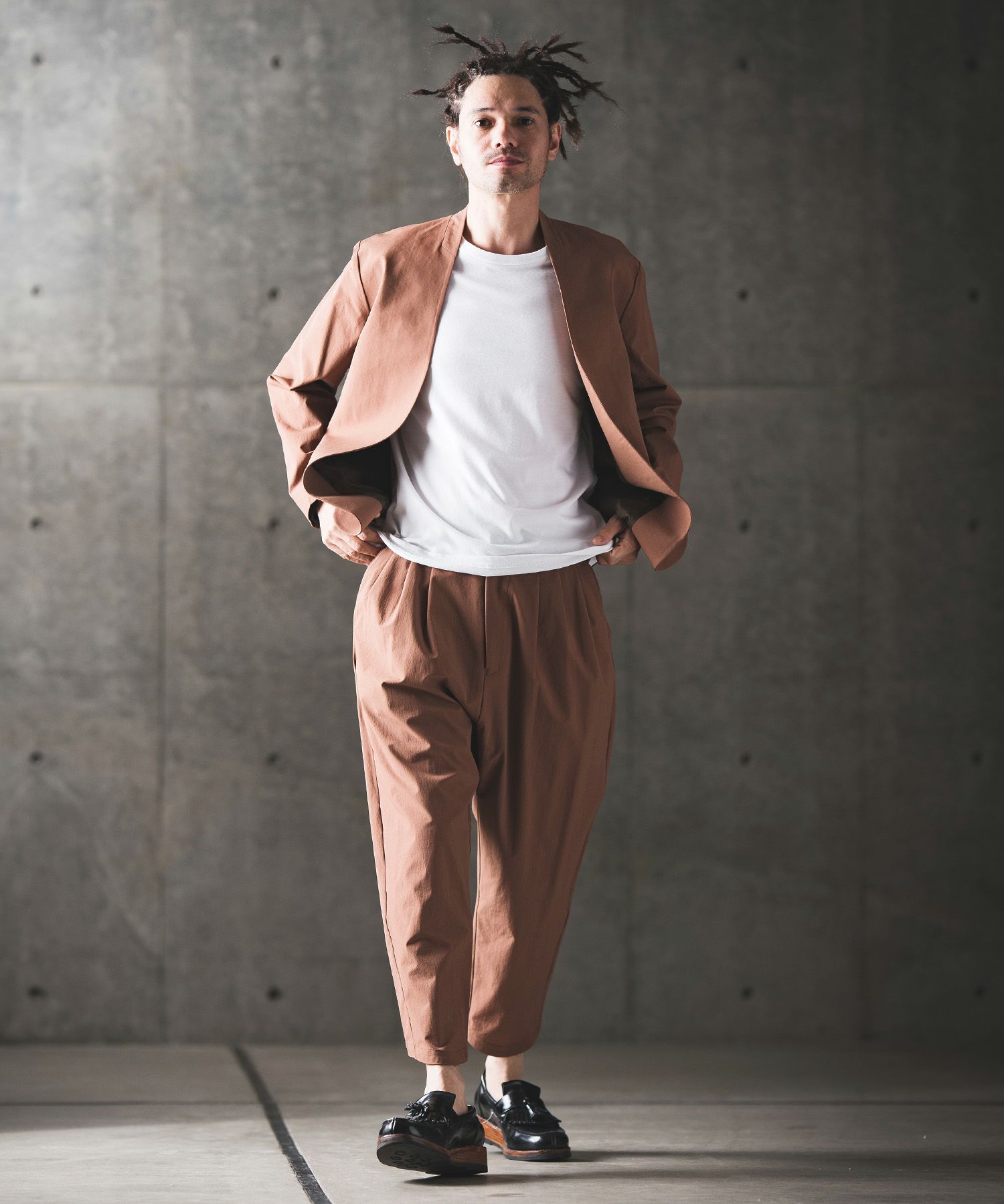他の画像を見る GLIMCLAP 【GLIMCLAP(グリムクラップ)】Tapered easy pants テーパードイージーパンツ(17-111-gla-ce) ¥ 18,700 税込 お気に入りに登録する
