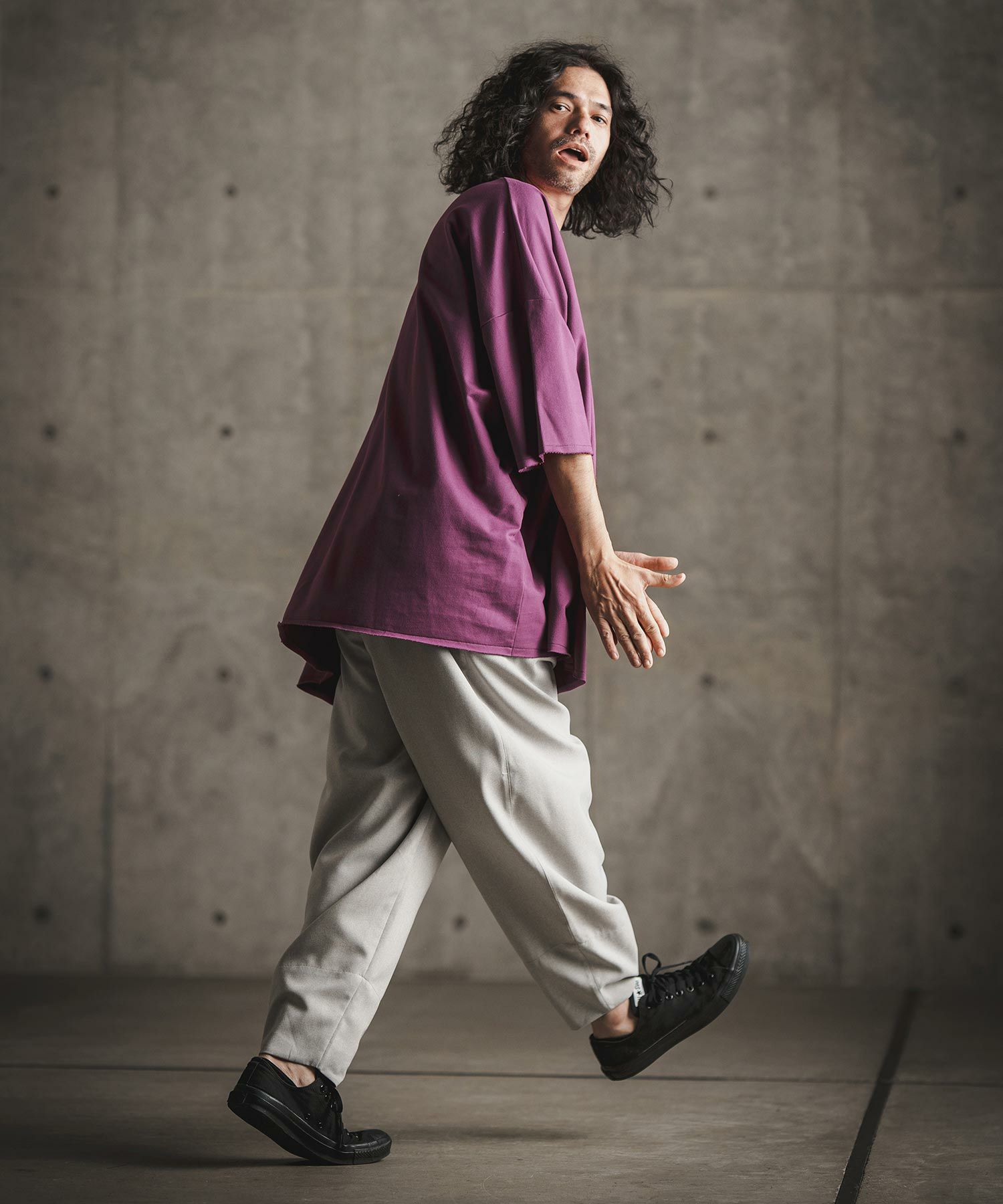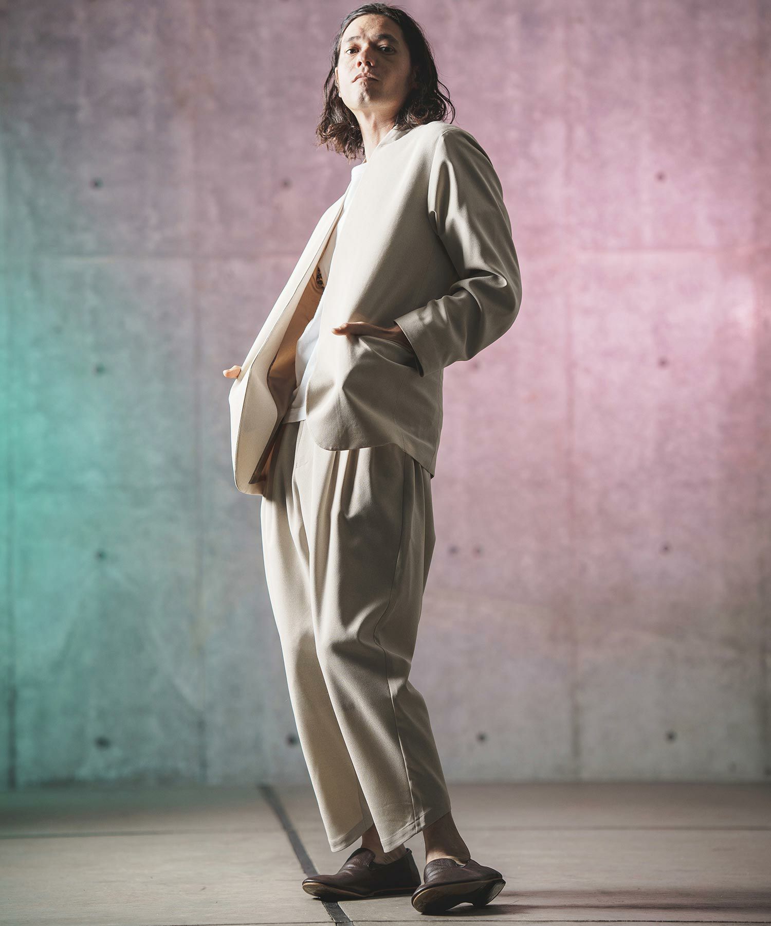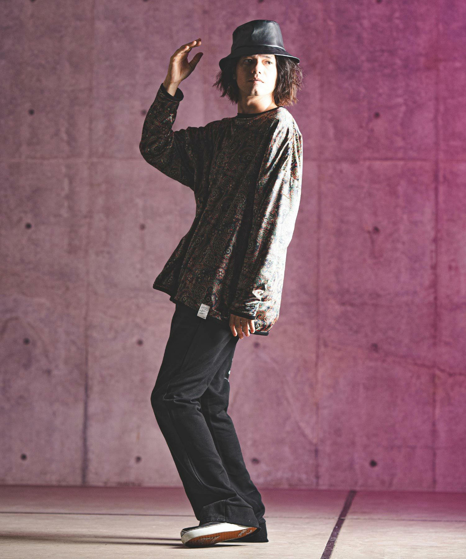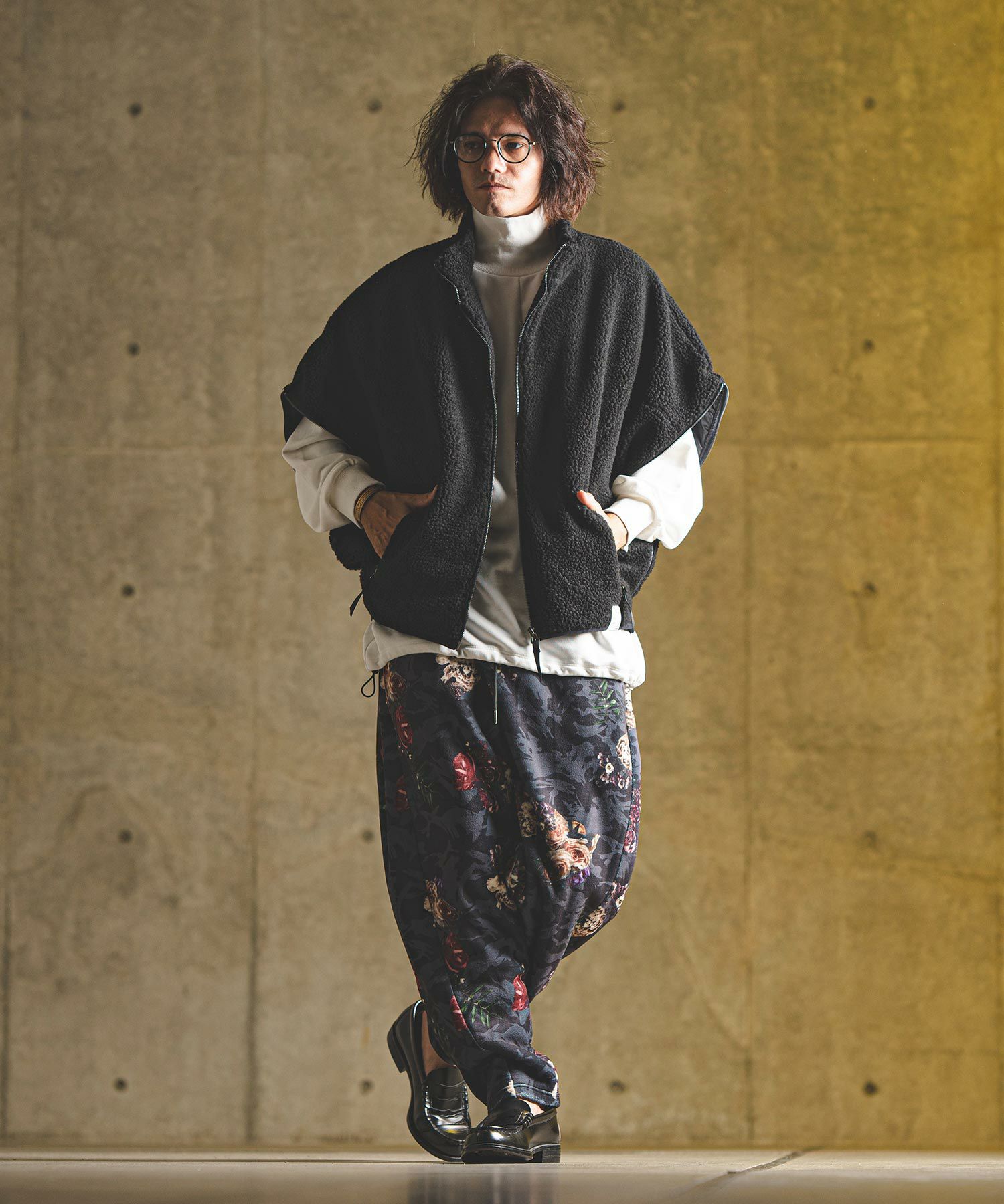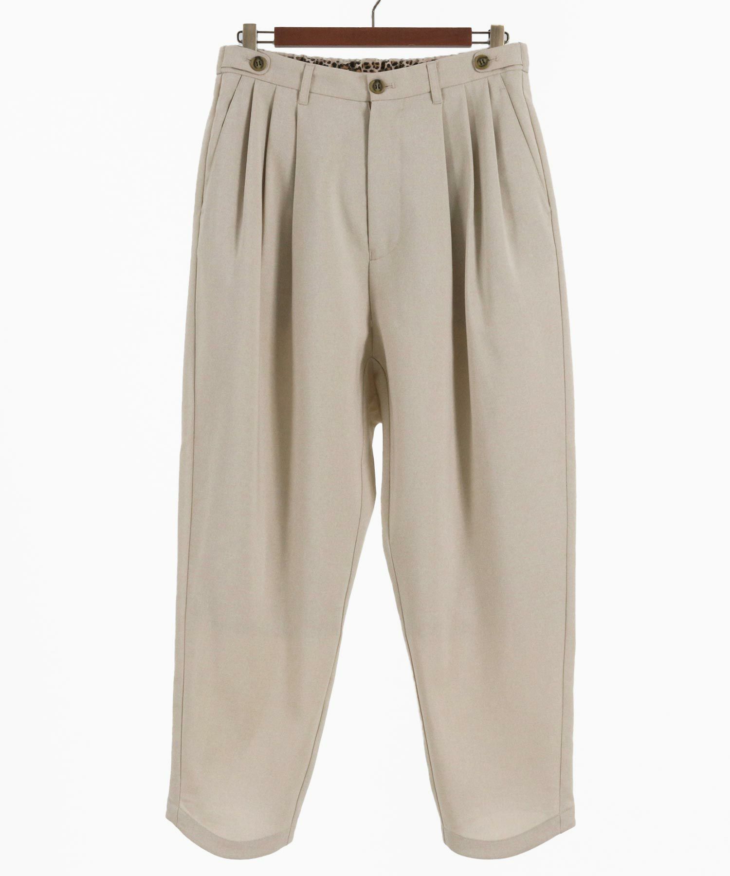 他の画像を見る GLIMCLAP 【GLIMCLAP(グリムクラップ)】Triple-pleated trousers-Brushed texture & Full patterned textile- ワイドストレートパンツ(19-029-gla-cf) ¥ 21,780 税込 お気に入りに登録する