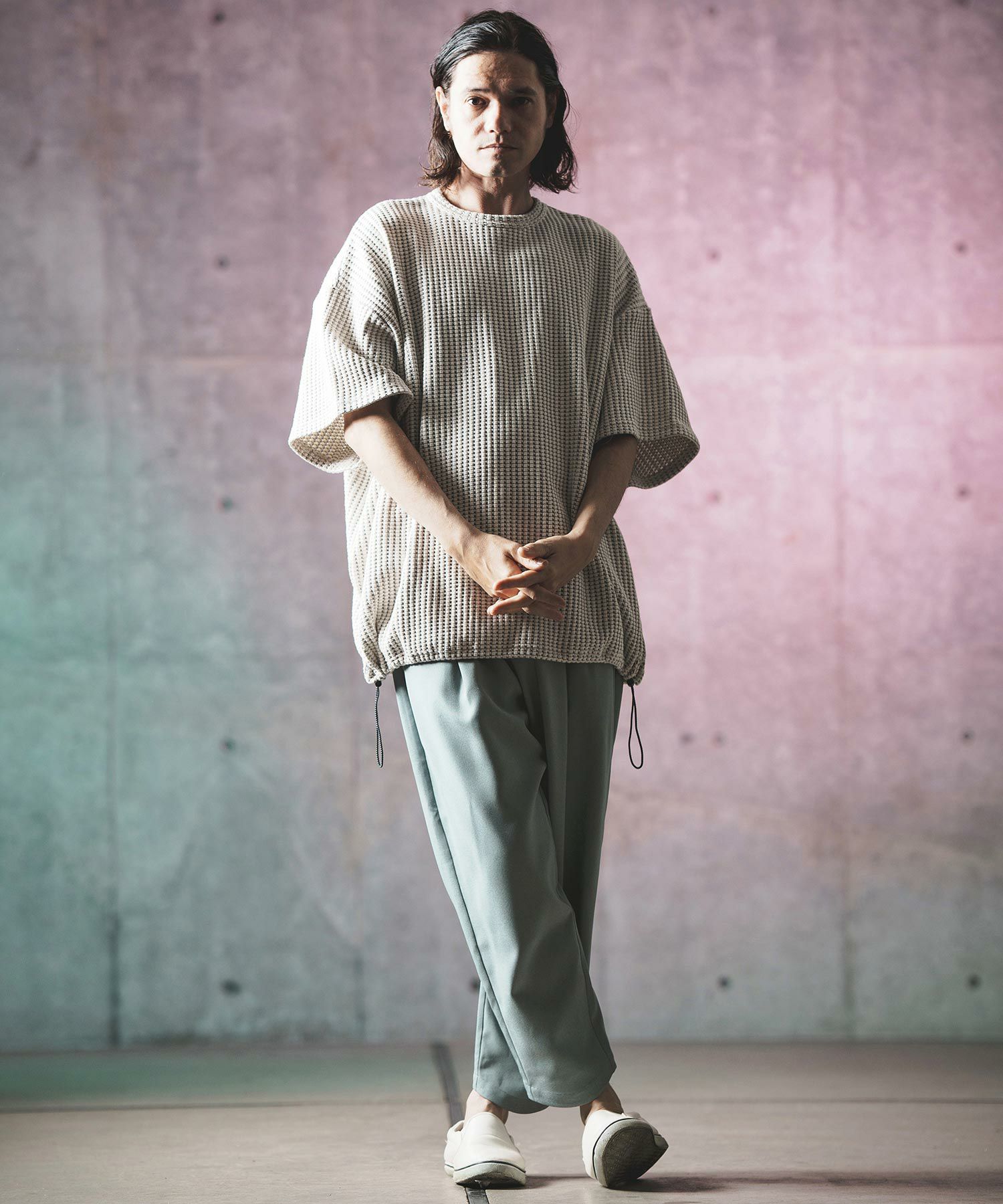 他の画像を見る GLIMCLAP 【GLIMCLAP(グリムクラップ)】 Waffle texture wide straight pants ワイドパンツ(18-047-gls-cf) ¥ 16,500 税込 在庫無し お気に入りに登録する