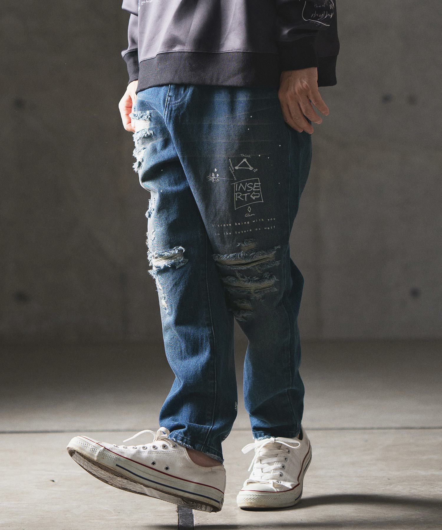 他の画像を見る GLIMCLAP 【GLIMCLAP(グリムクラップ)】Sprinkle scratch processing -stretch denim version- デニムパンツ(17-136-gla-ce) ¥ 16,500 税込 お気に入りに登録する