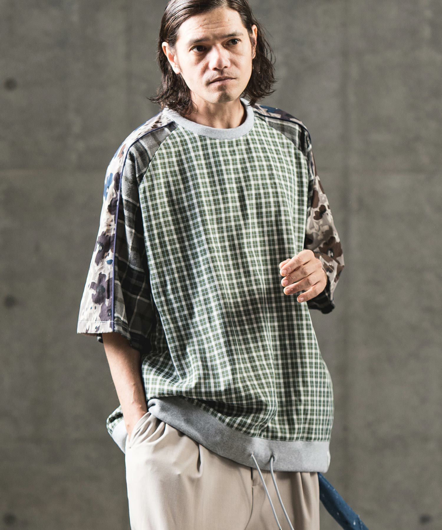 他の画像を見る GLIMCLAP 【GLIMCLAP(グリムクラップ)】Mini-ripstop nylon fabric short-sleeve pullover Tシャツ(18-043-gls-cf) ¥ 16,500 税込 お気に入りに登録する
