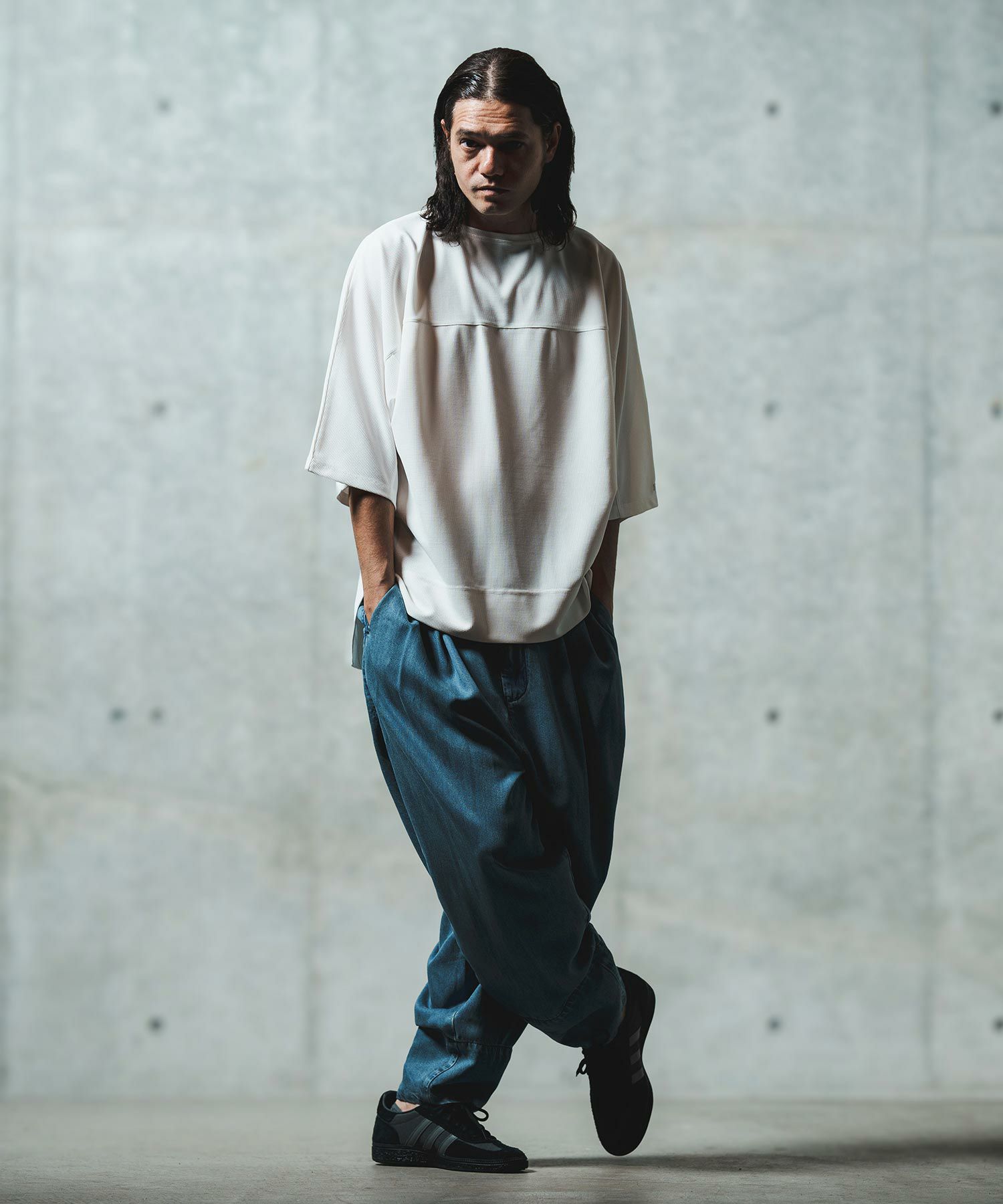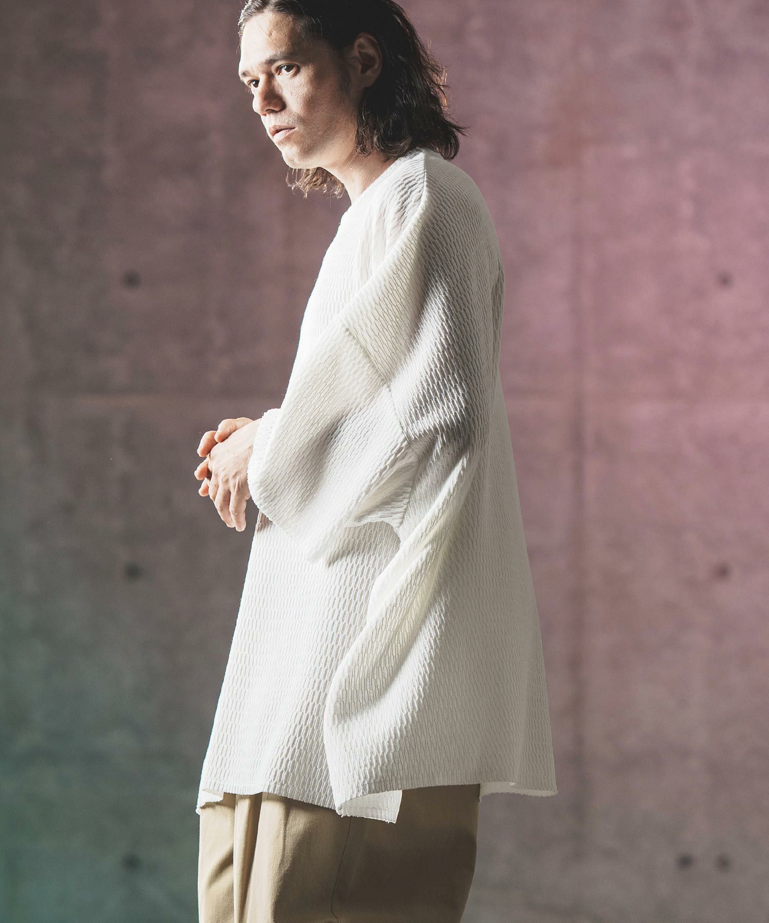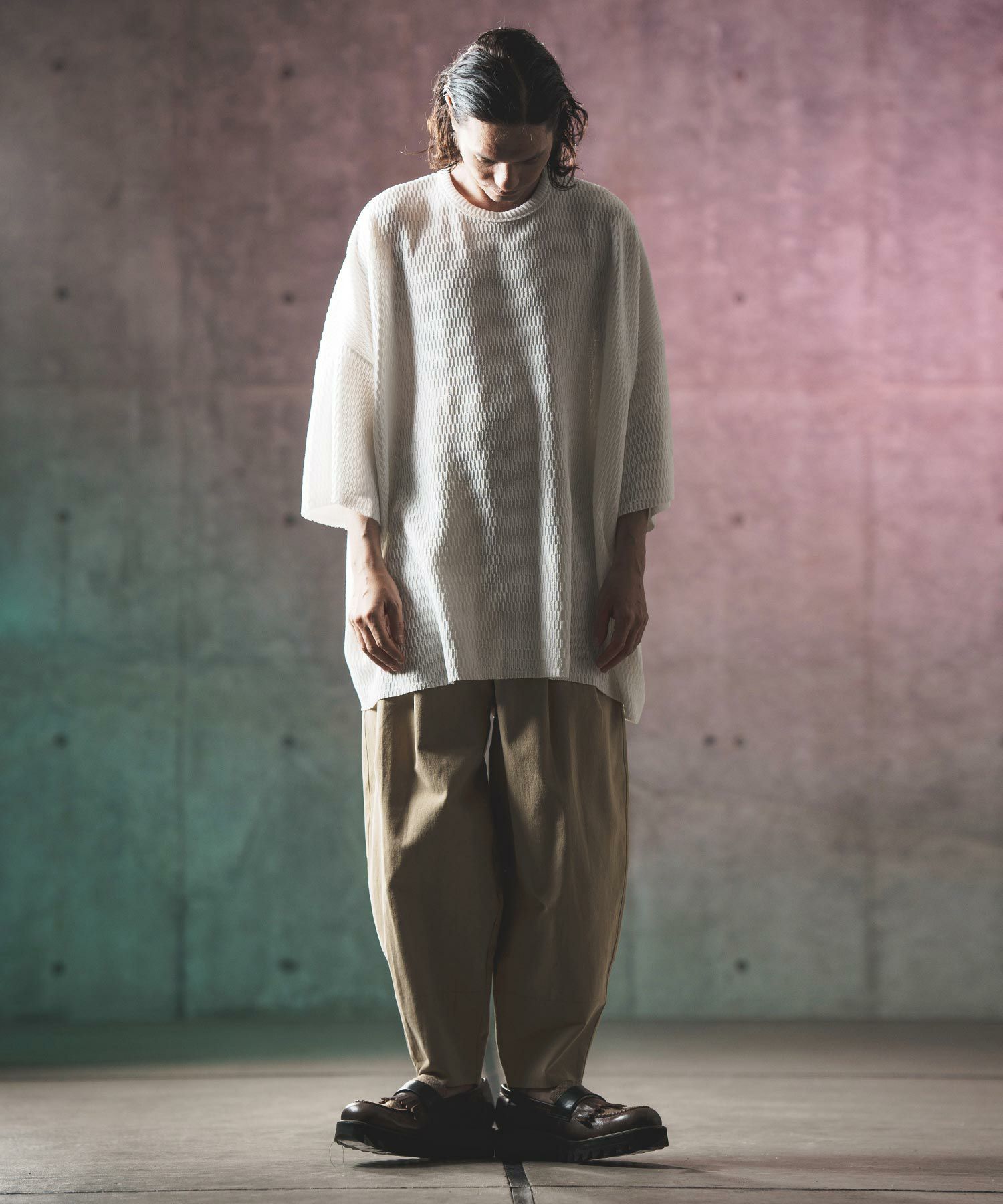 他の画像を見る SALE GLIMCLAP 30%OFF【GLIMCLAP(グリムクラップ)】 Mesh fabric oversized T-shirt Tシャツ(16-070-gls-ce) ¥ 11,000 ¥ 7,700 税込 お気に入りに登録する