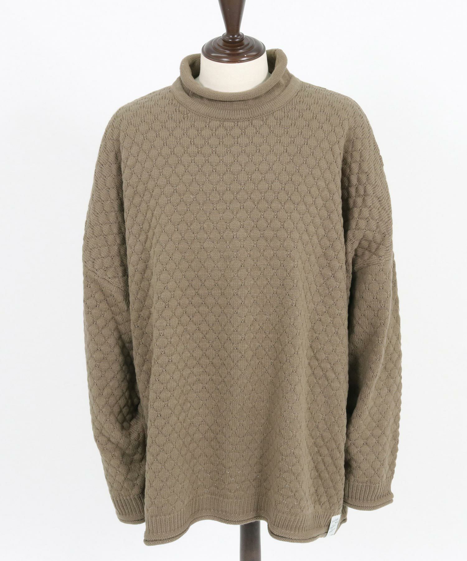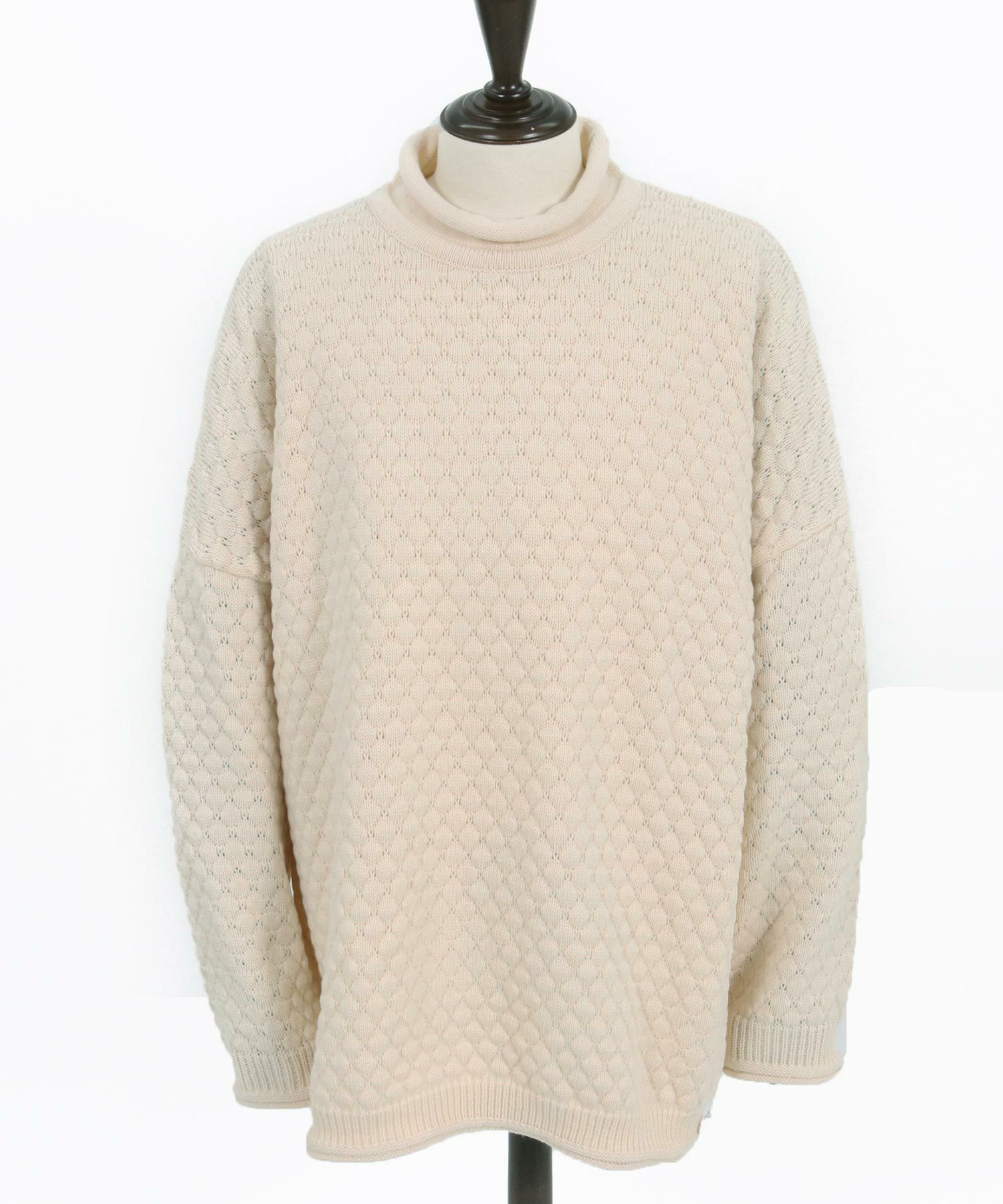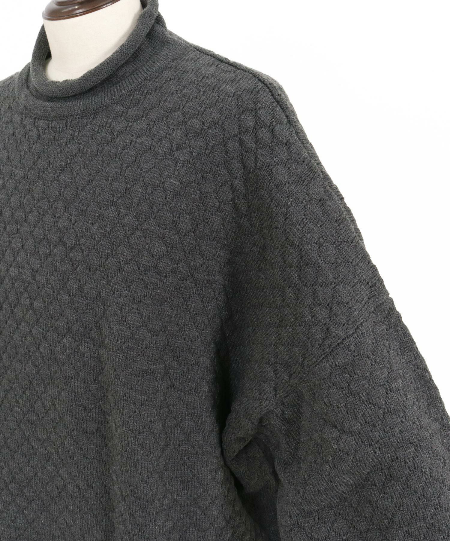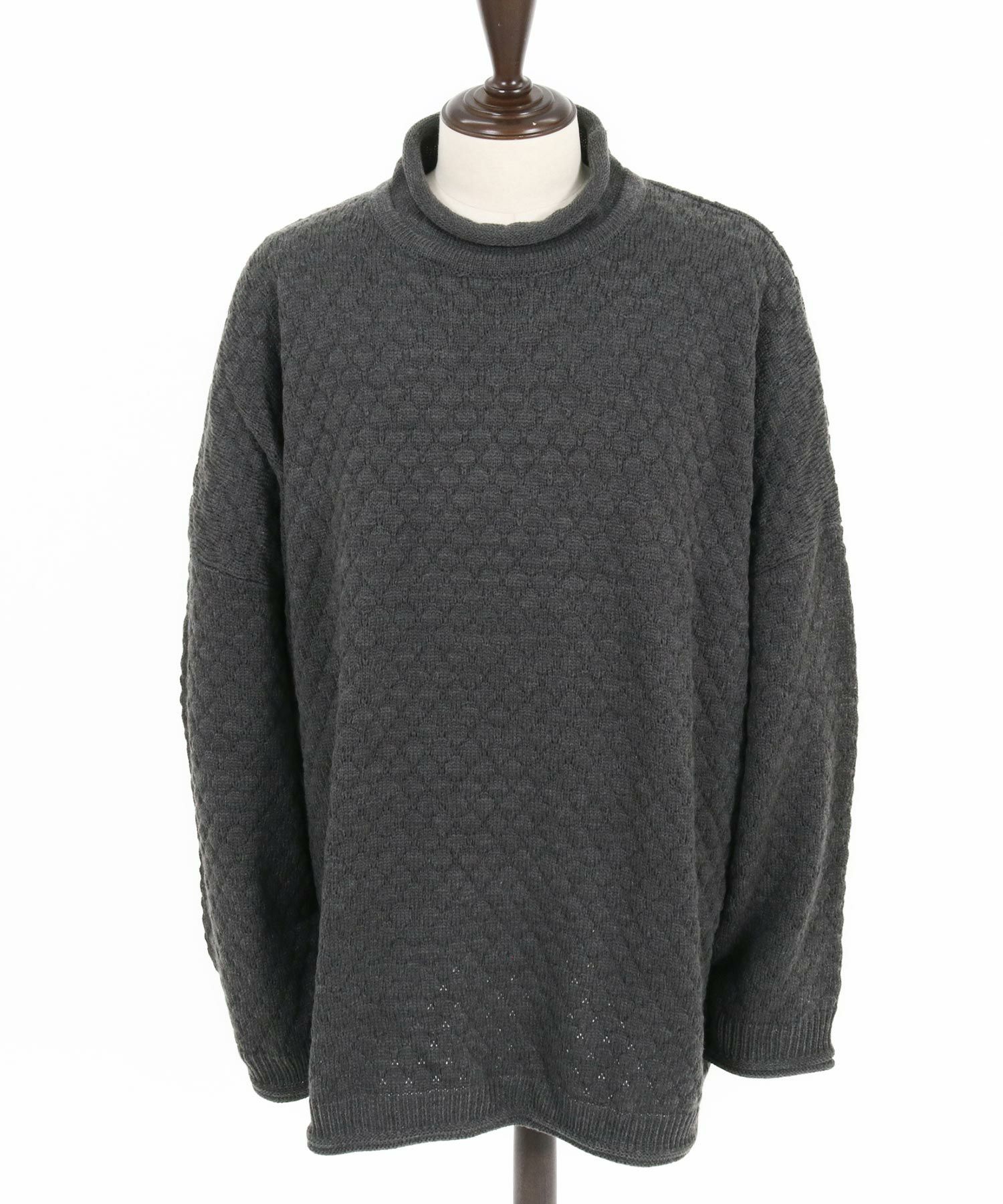 ポップコーン編みのルーズネックニットです。