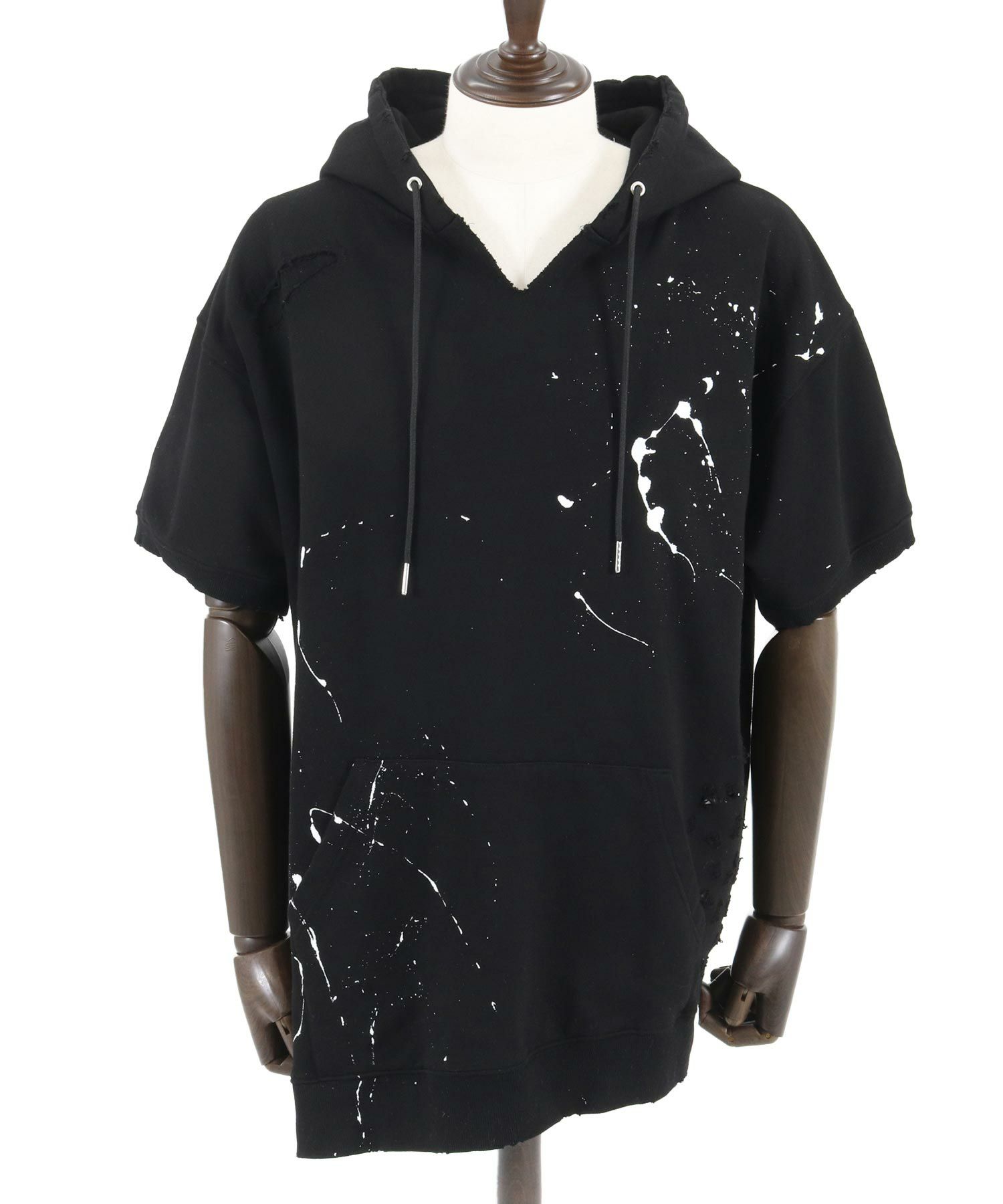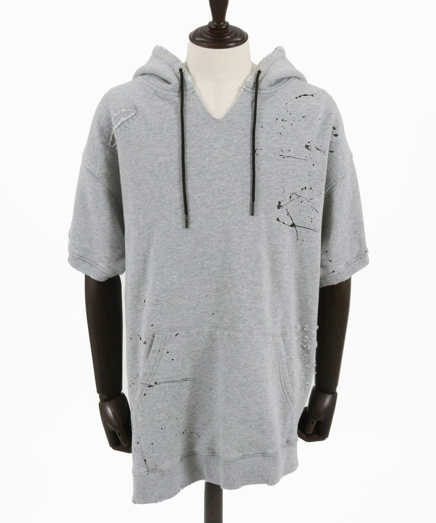 30%OFF【GLIMCLAP(グリムクラップ)】 Distressed short-sleeve hooded sweatshirt パーカー(16-048-gls-ce)