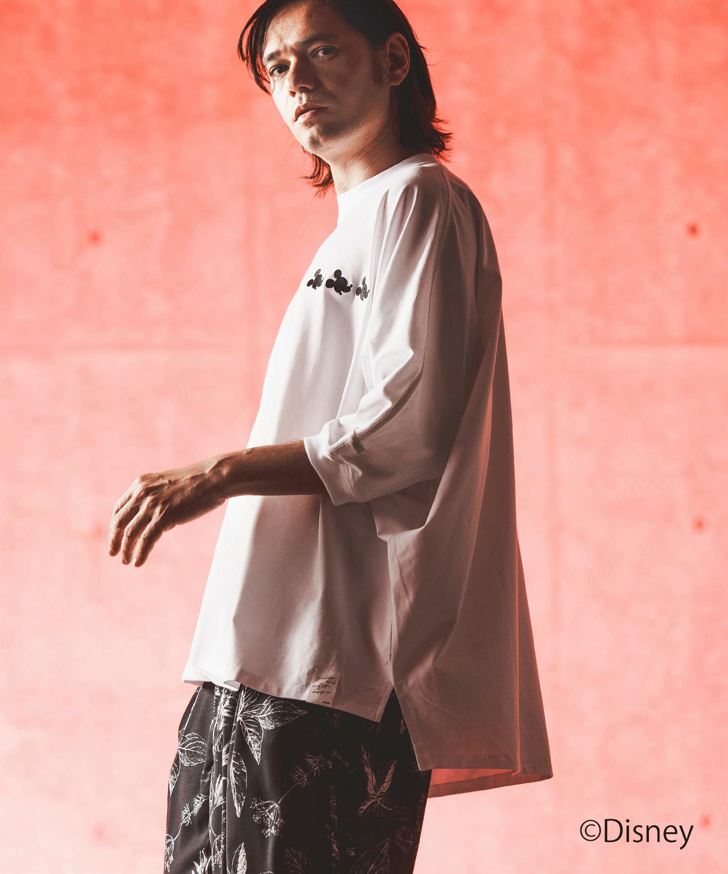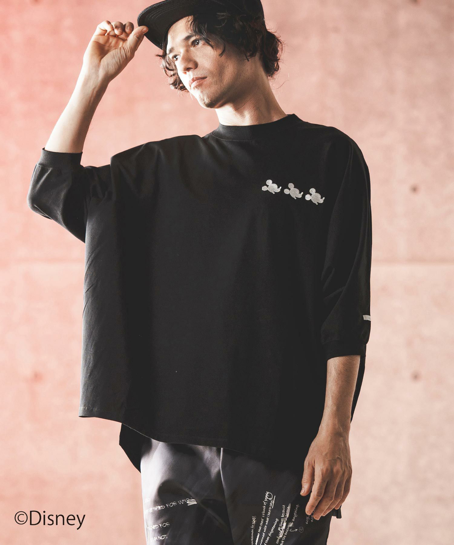 胸元にシャドーミッキーのミニマル刺繍を施したドルマンスリーブT-shirtです。