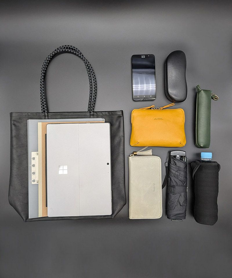 A4サイズの雑誌も余裕で収納できる縦型の軽量バッグで、サイズ感は大きすぎず小さすぎず、スッキリとしたバランスの良いサイズ感です。
