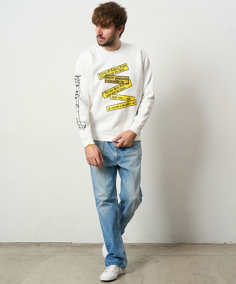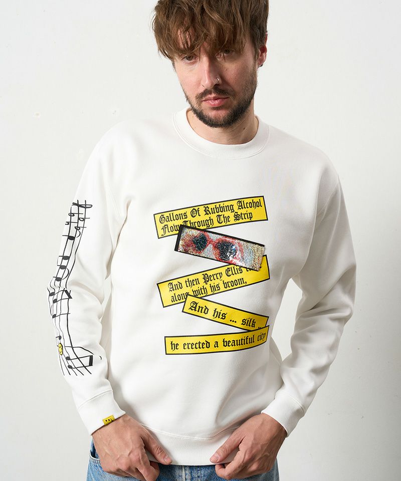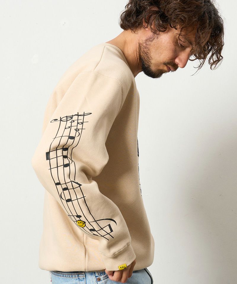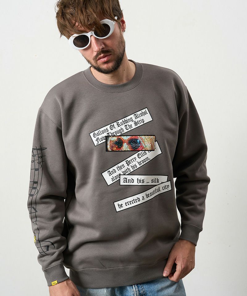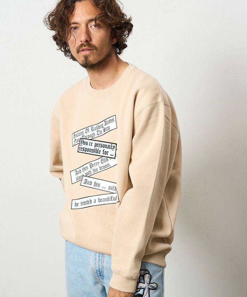 【STUD MUFFIN(スタッドマフィン)】TC裏毛起毛 リリック リボン シークインMUSICプリント スエットシャツ(524-02834)