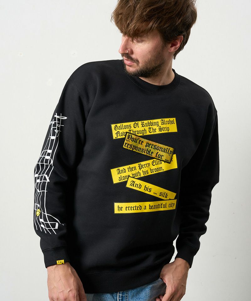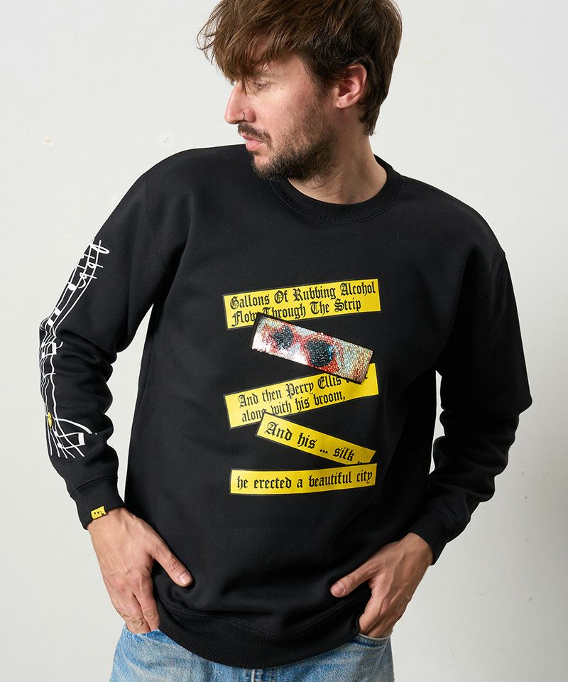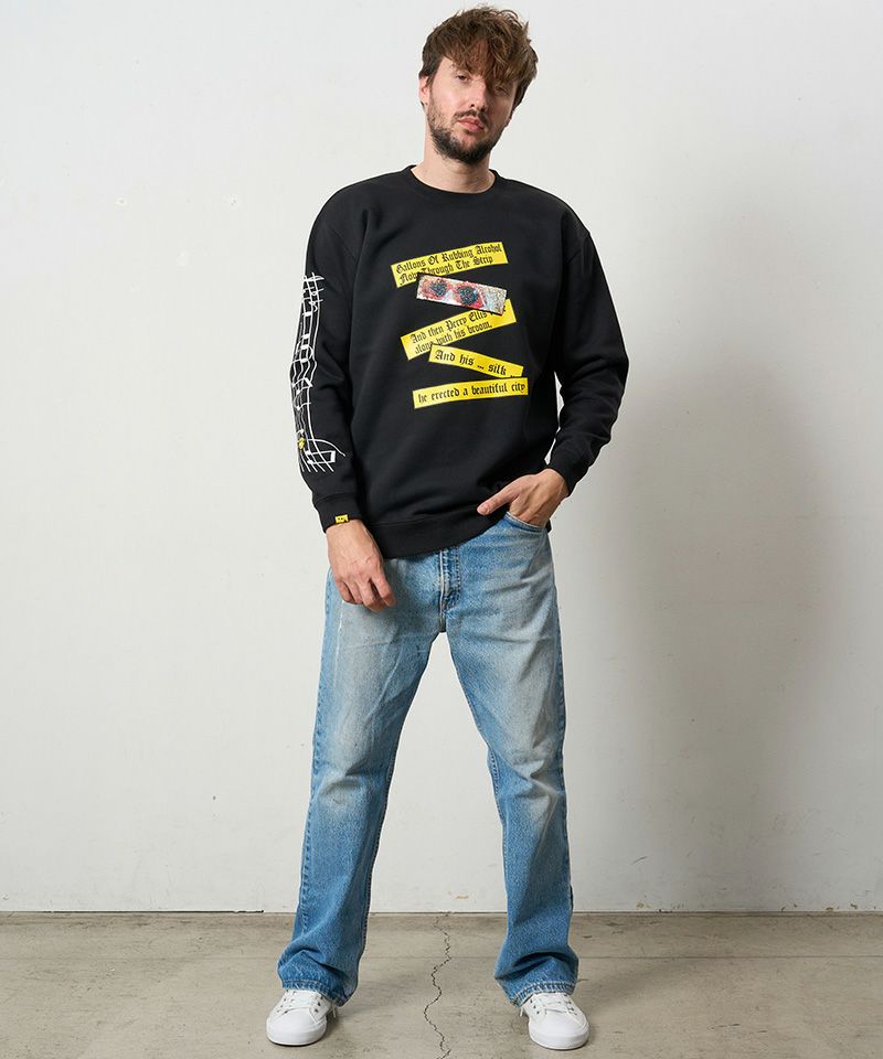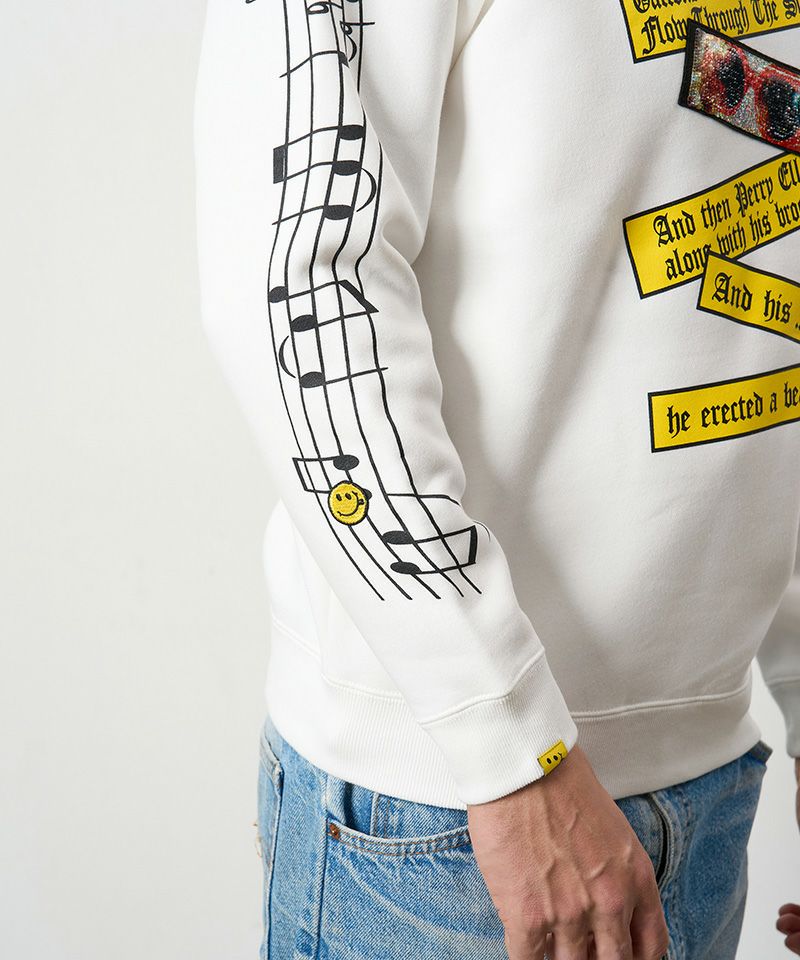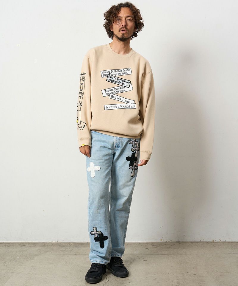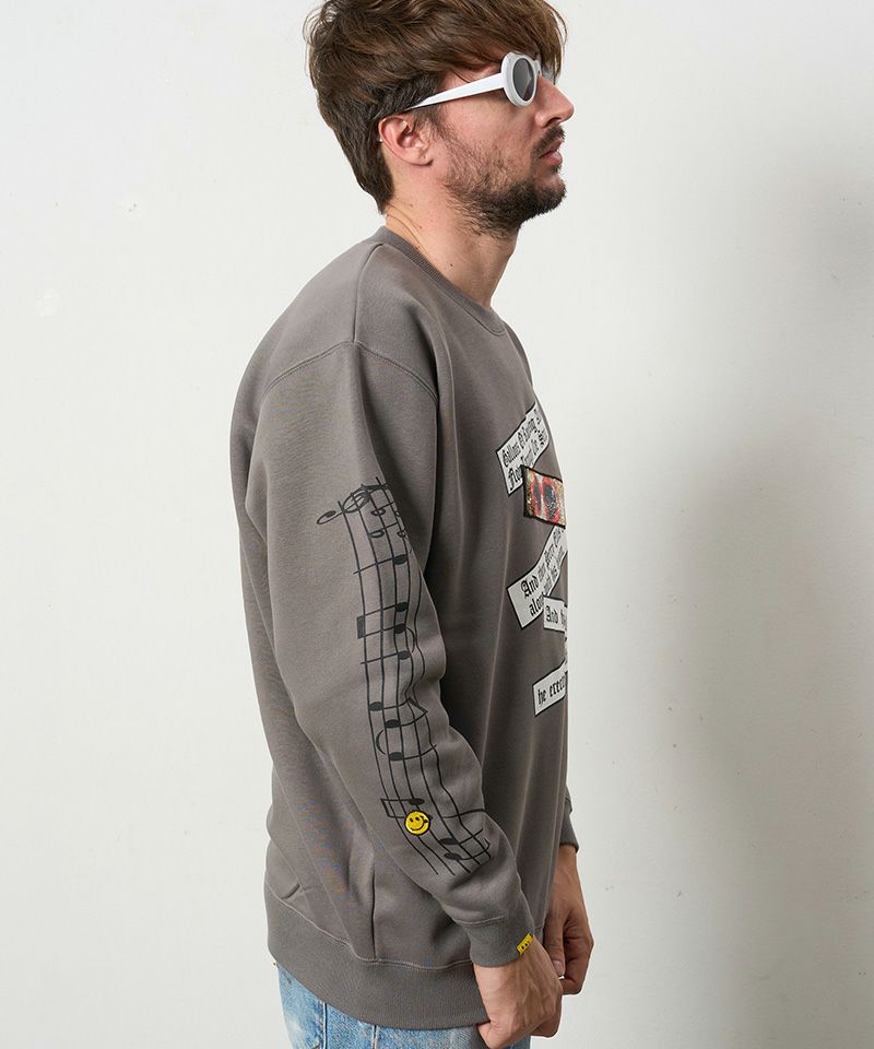 【STUD MUFFIN(スタッドマフィン)】TC裏毛起毛 リリック リボン シークインMUSICプリント スエットシャツ(524-02834)