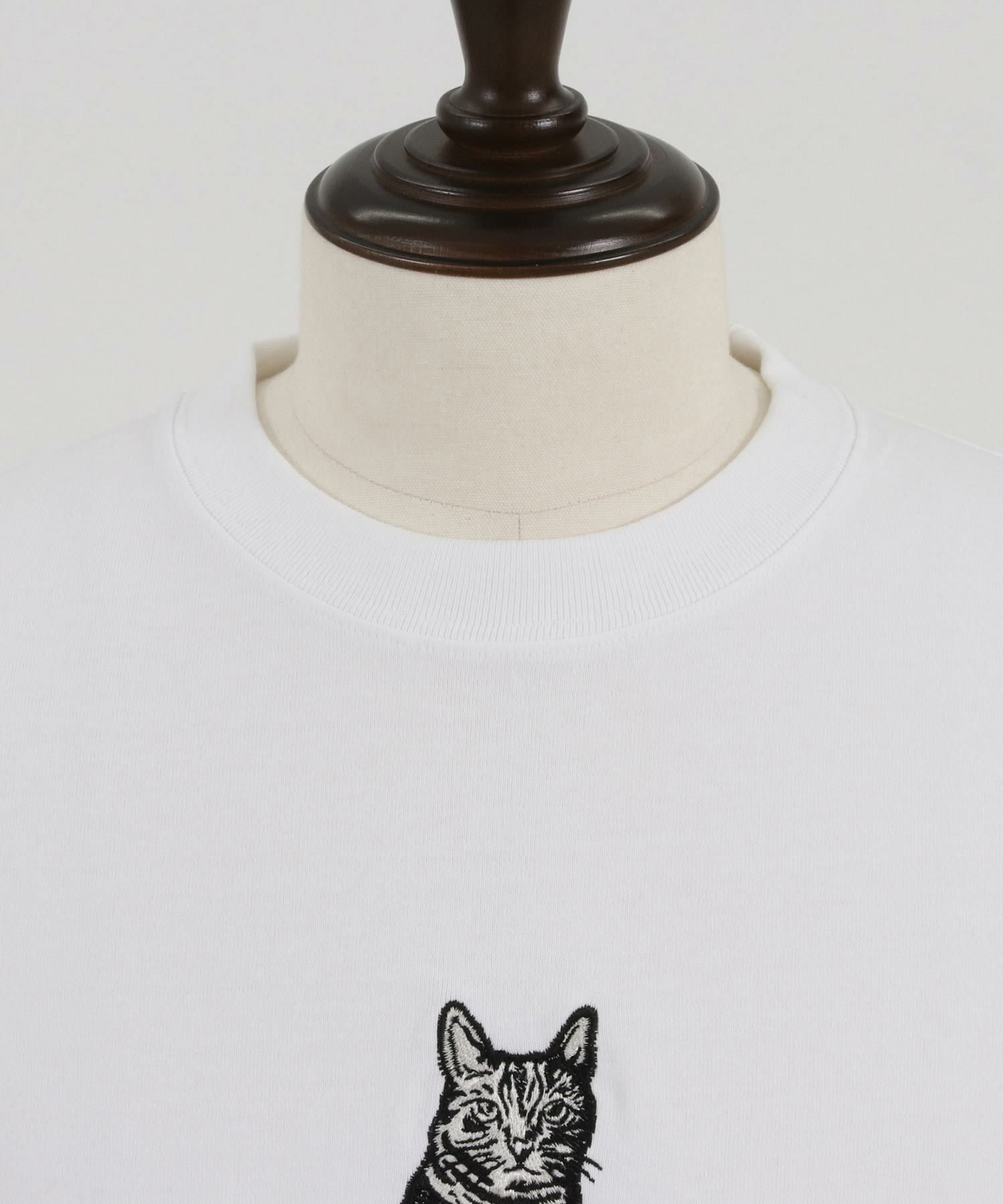 POPでキャッチーなイラスト化したボックスデザインの刺繍アメリカンショートヘアTシャツ。