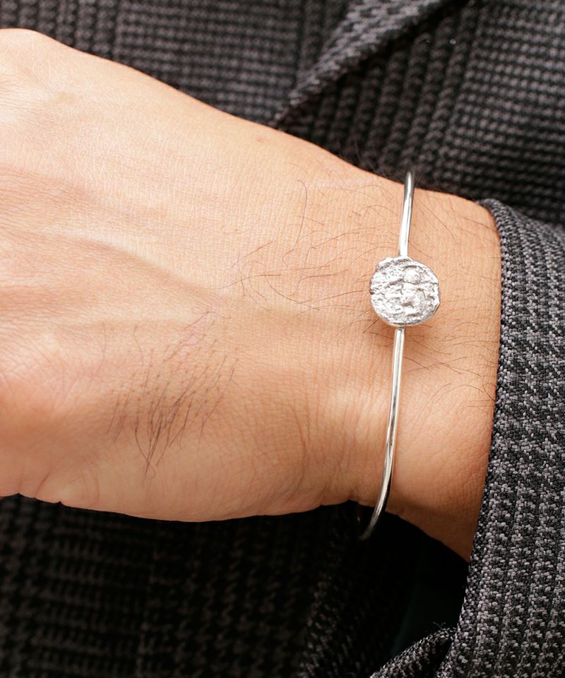 海外古物商から入手した紀元前~1600年前くらいまでの希少なオールドコインを型取り、細身のシルバーバングルにセットしたバングルです。