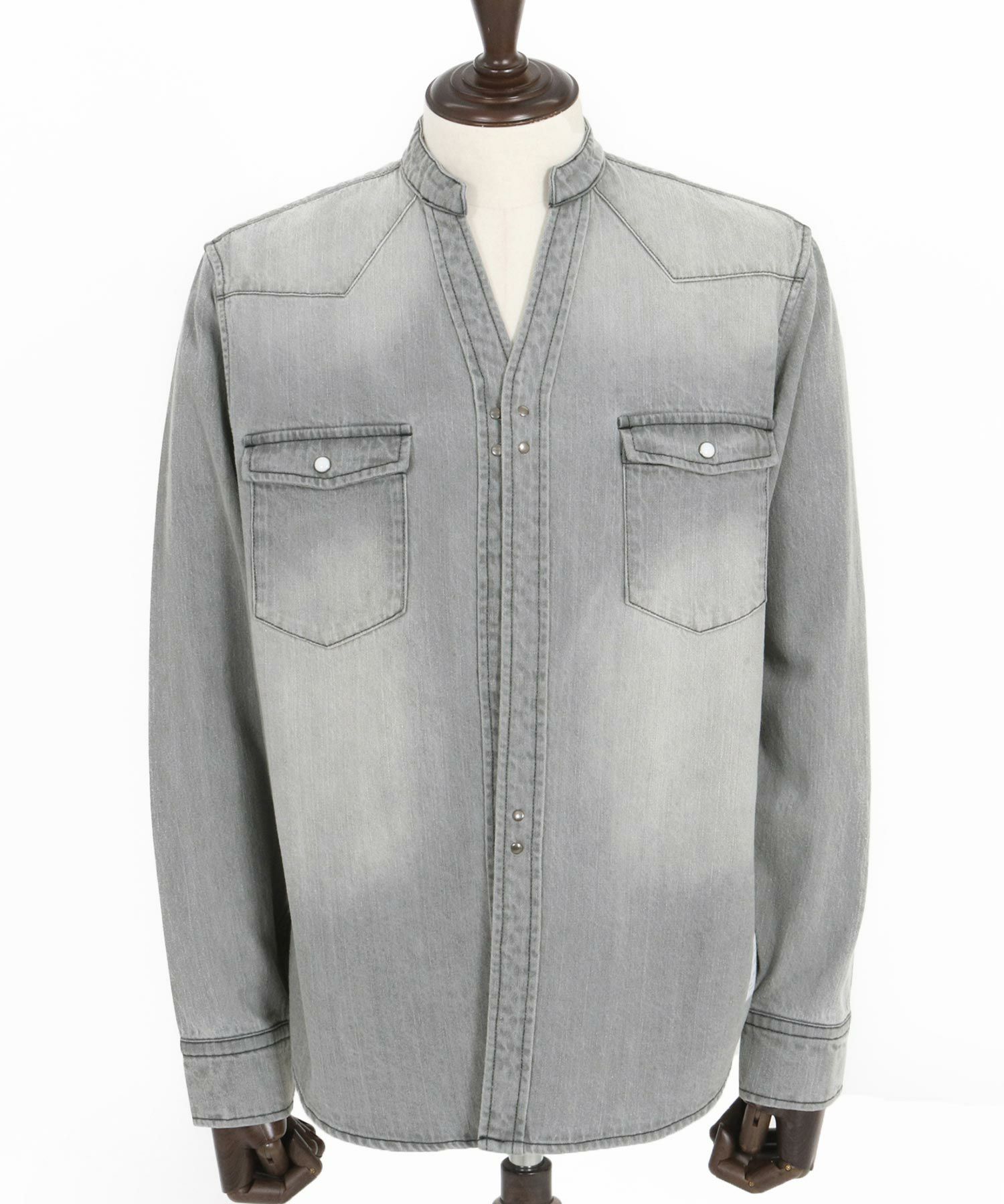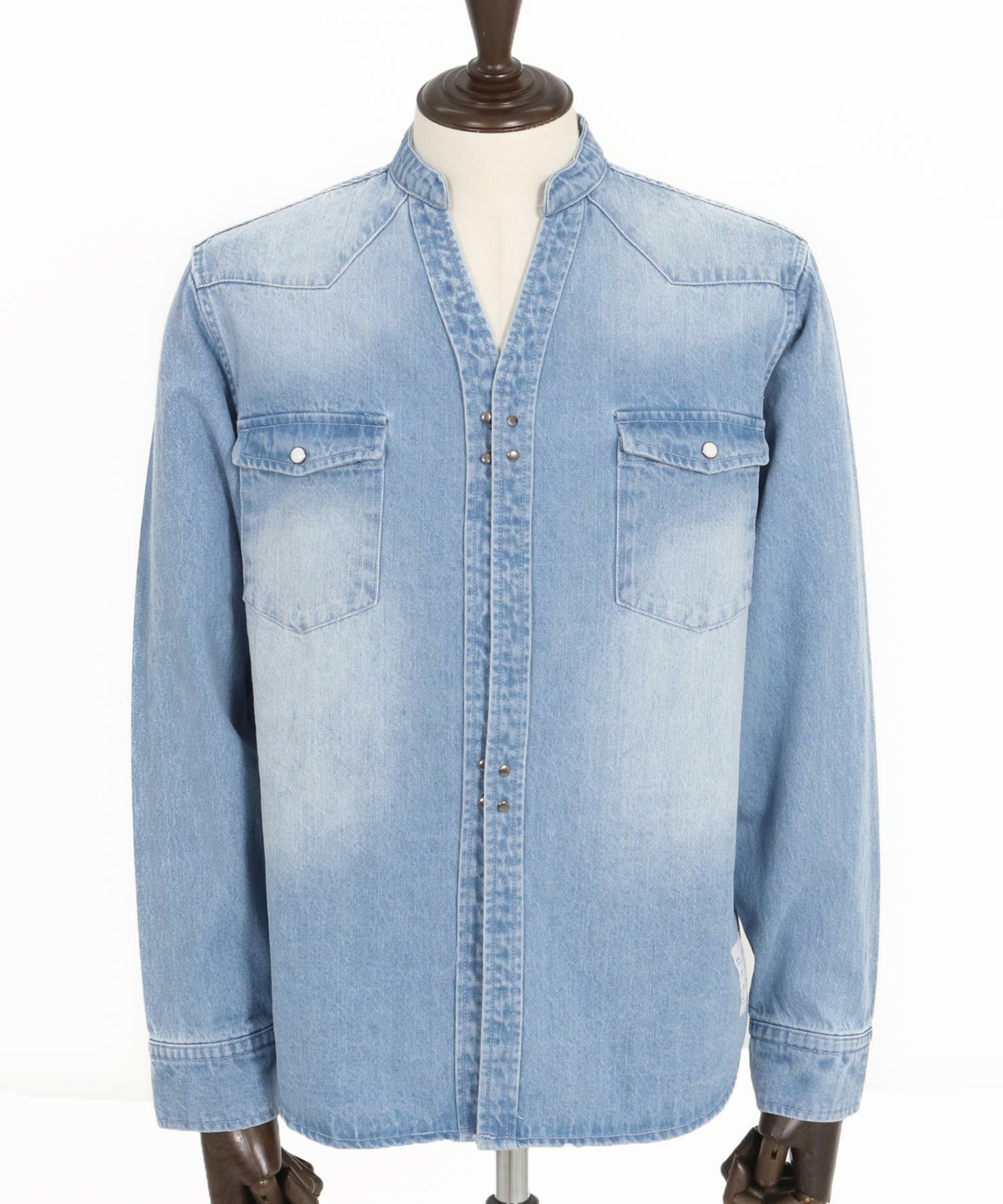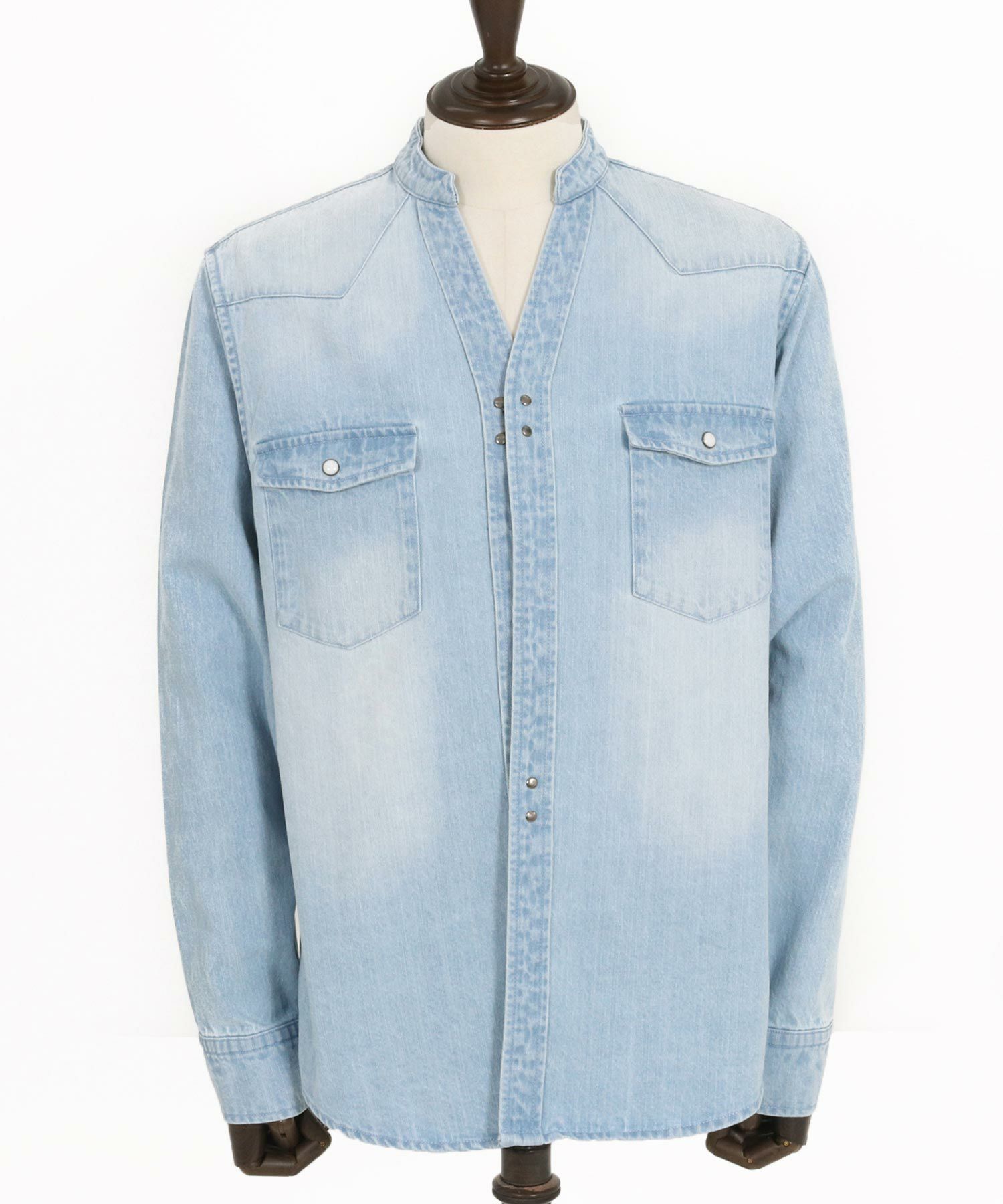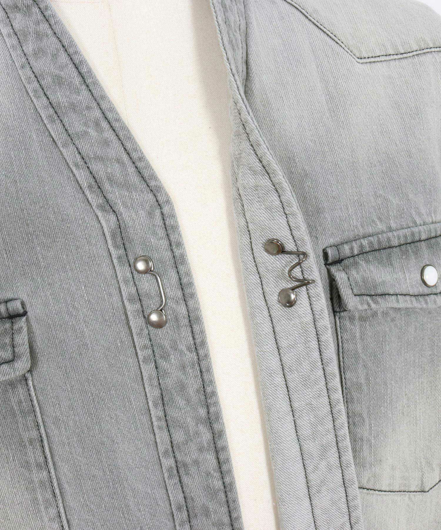 他の画像を見る wjk reluxe 【wjk reluxe】tight knit denim no collar western shirt ノーカラーウェスタンシャツ(WR25S-04) ¥ 29,700 税込 お気に入りに登録する