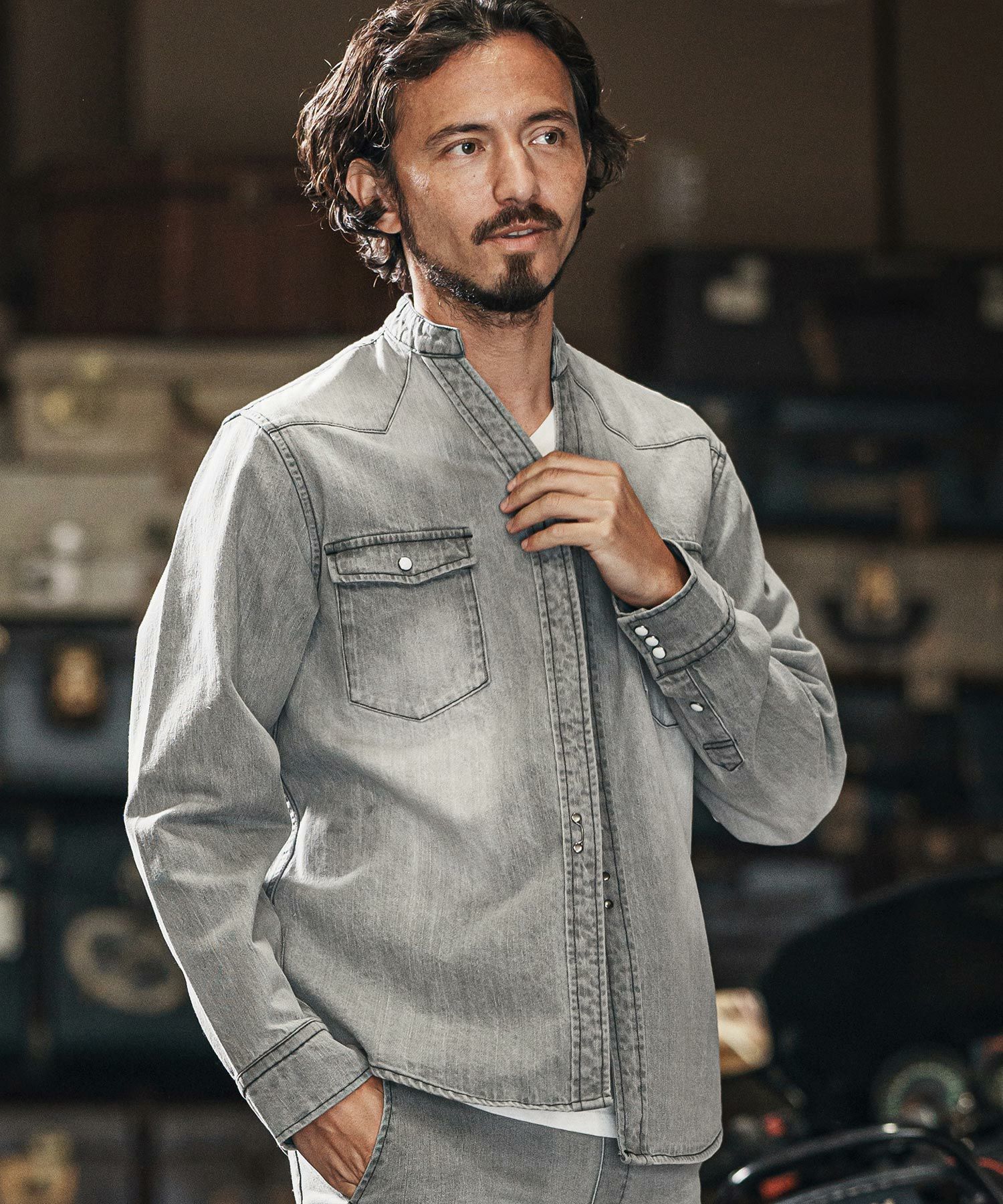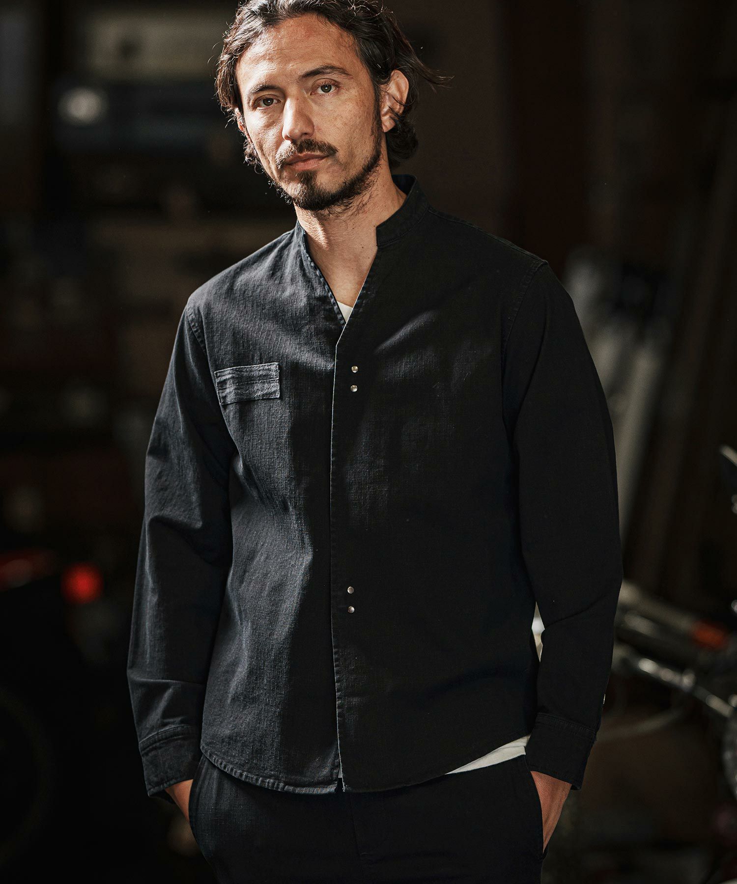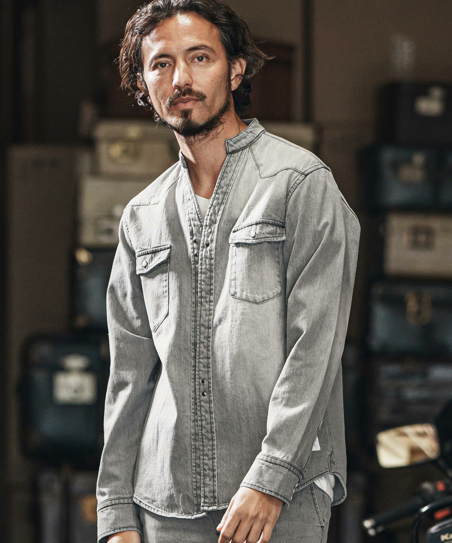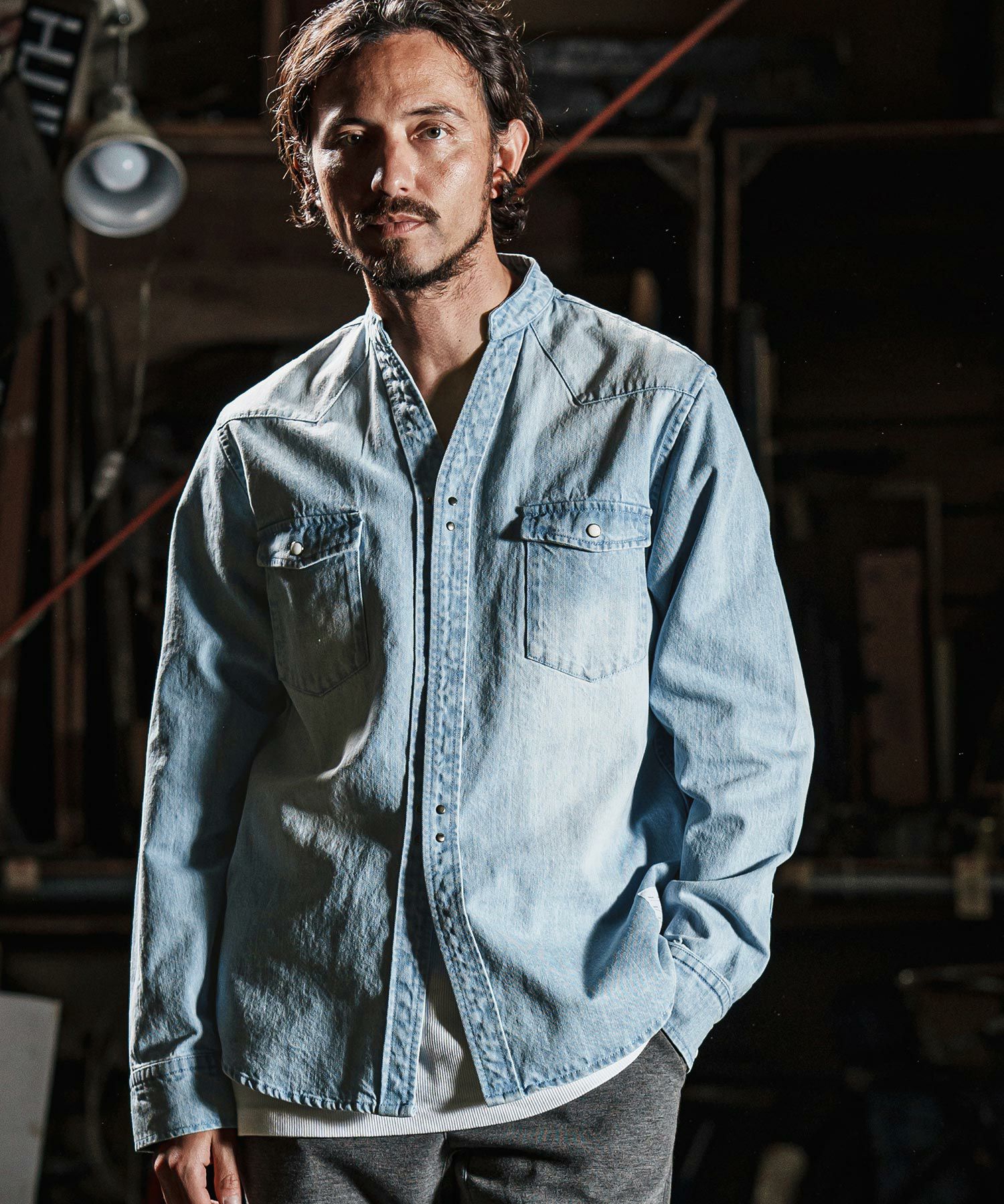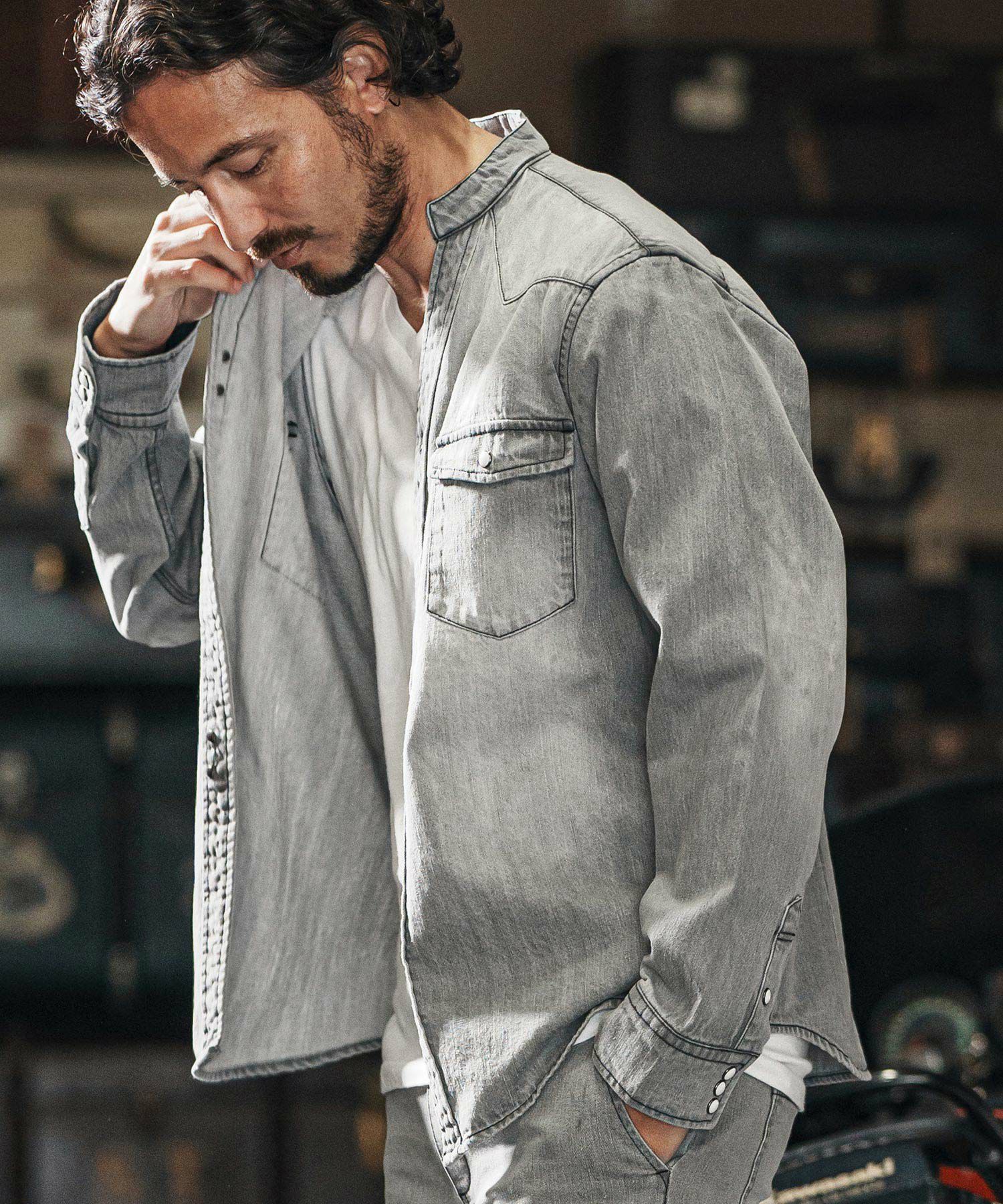 他の画像を見る wjk reluxe 【wjk reluxe】tight knit denim no collar western shirt ノーカラーウェスタンシャツ(WR25S-04) ¥ 29,700 税込 お気に入りに登録する