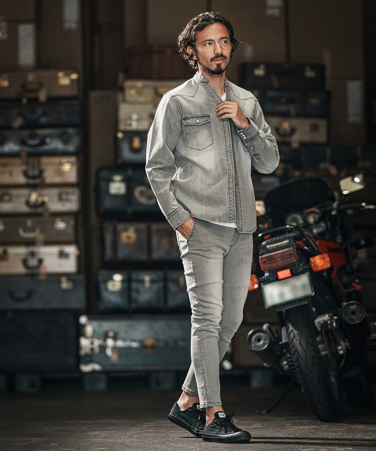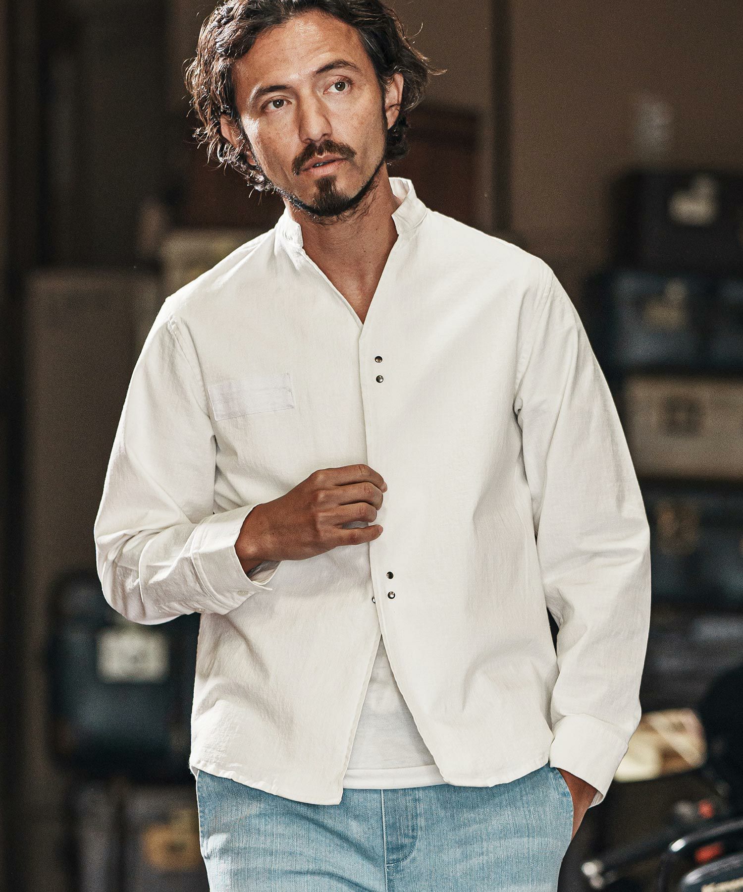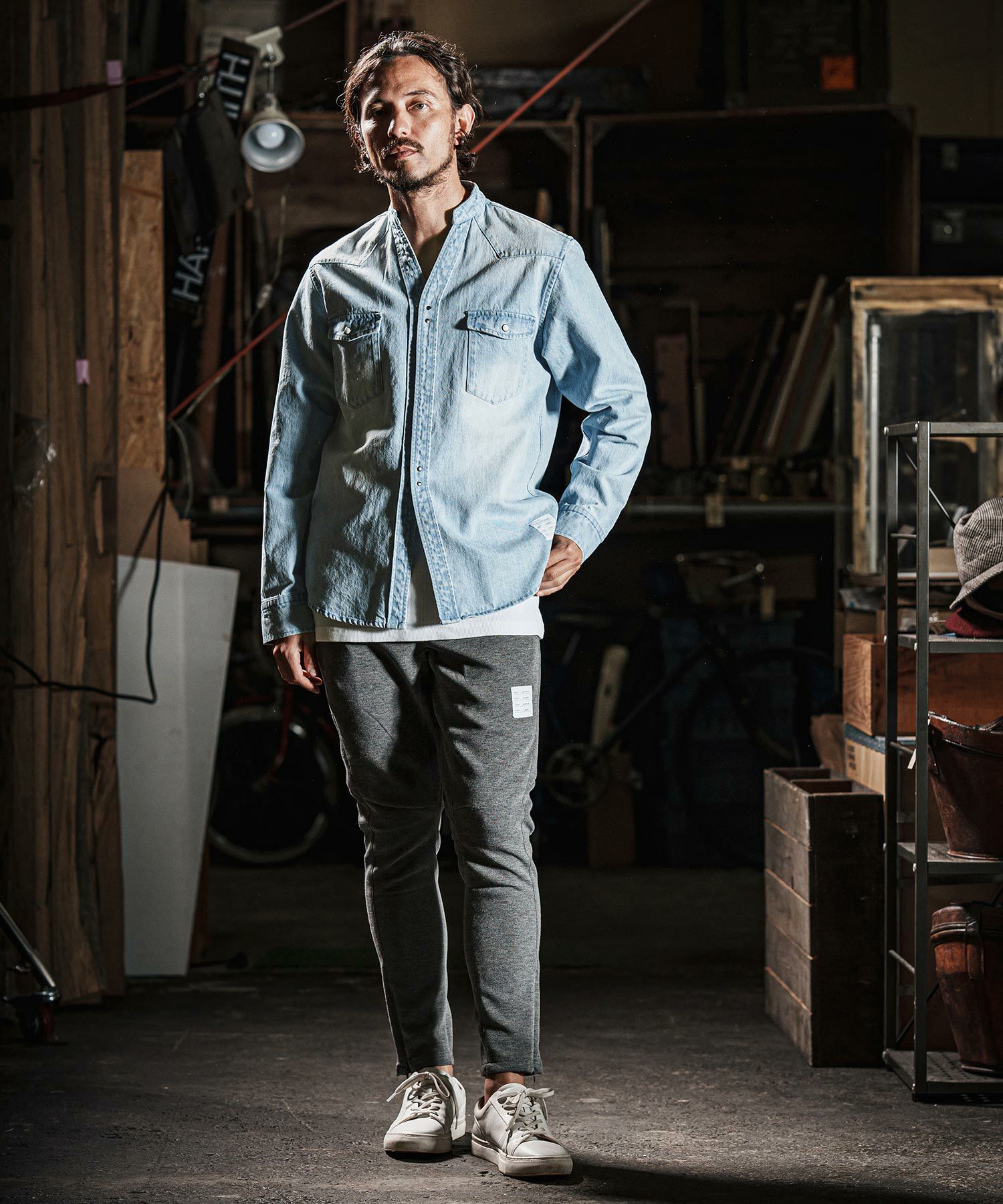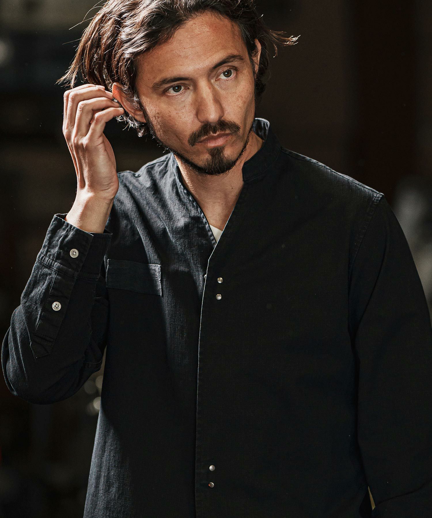他の画像を見る wjk reluxe 【wjk reluxe】tight knit denim no collar western shirt ノーカラーウェスタンシャツ(WR25S-04) ¥ 29,700 税込 お気に入りに登録する