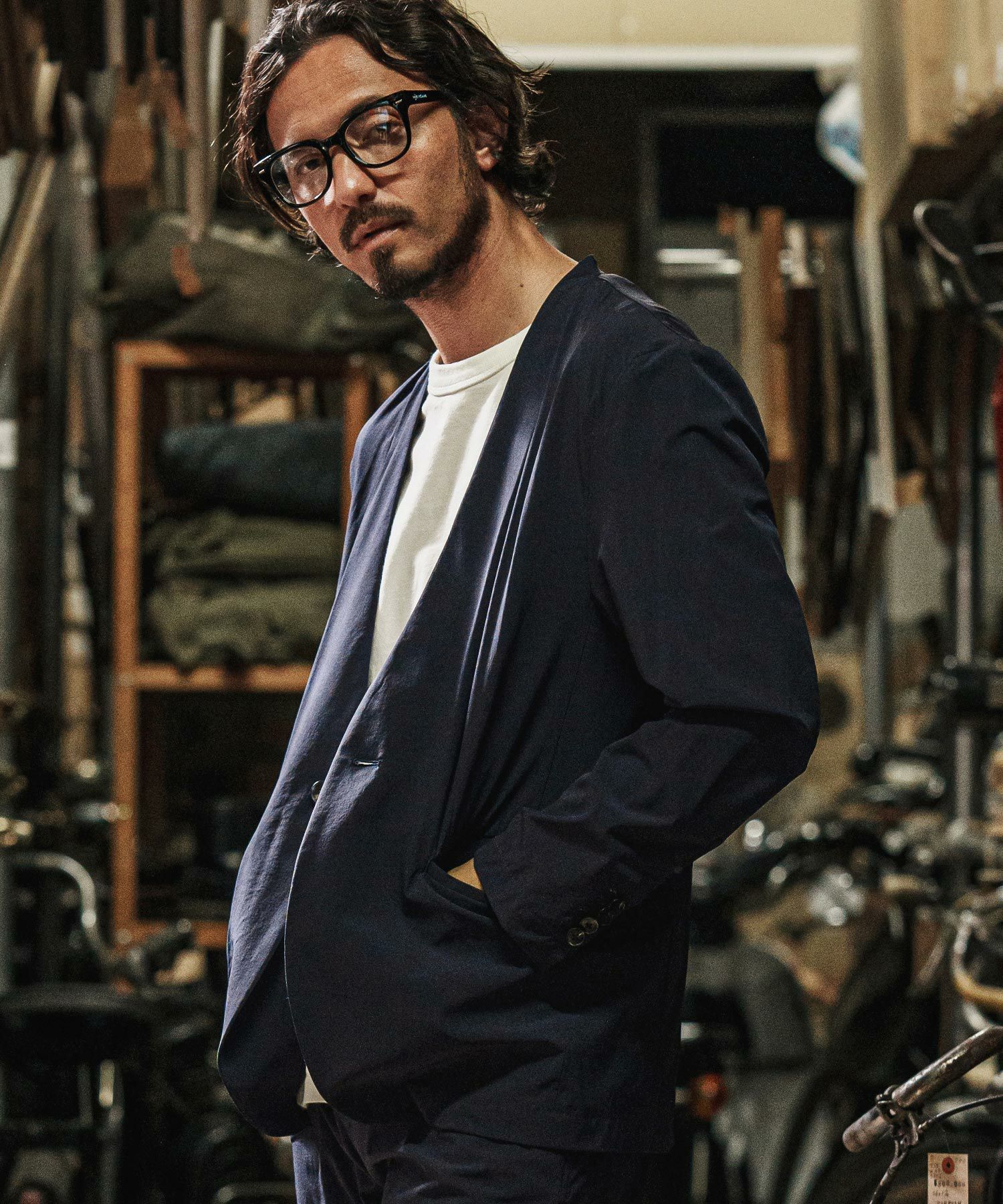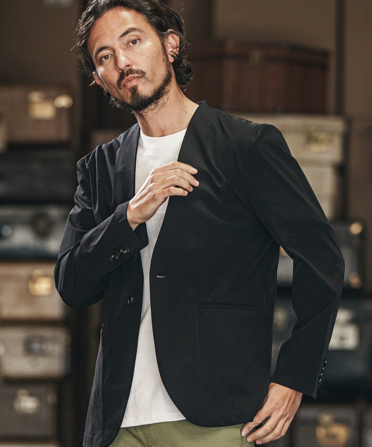 他の画像を見る wjk reluxe 【wjk reluxe】cool stretch collarless jacket ノーカラージャケット(WR25S-07) ¥ 34,650 税込 お気に入りに登録する