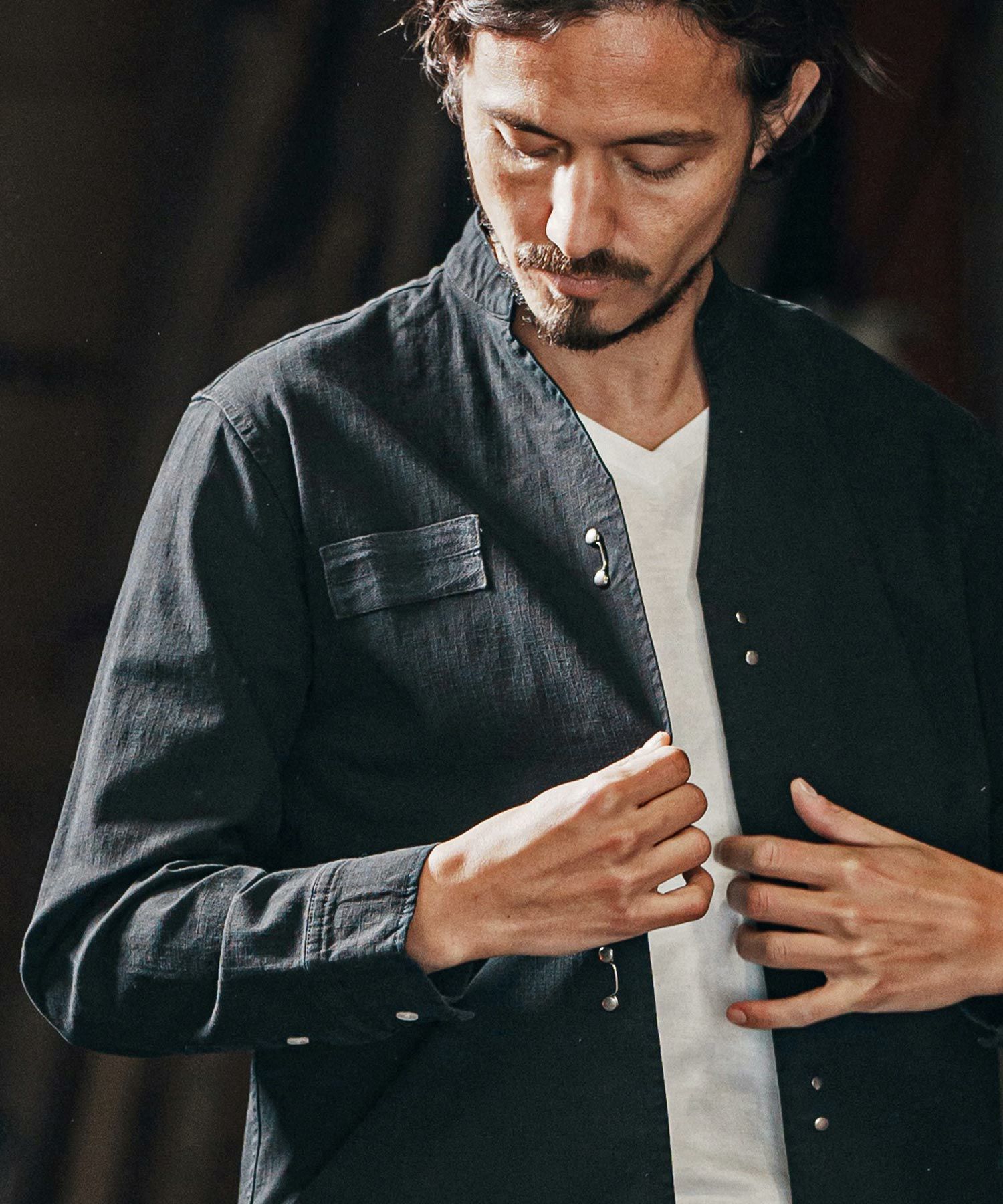 他の画像を見る wjk reluxe 【wjk reluxe】ripstop no collar hook shirts ノーカラーフックシャツ(WR25S-01) ¥ 29,700 税込 お気に入りに登録する
