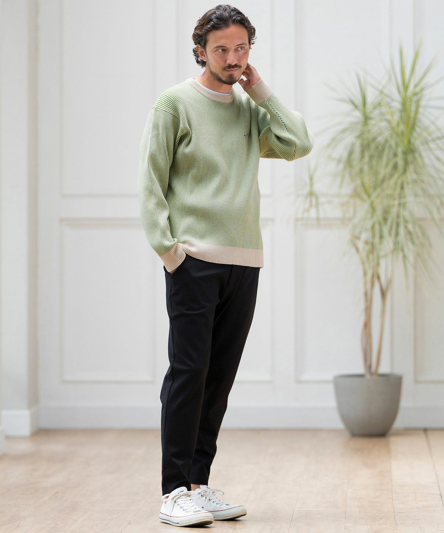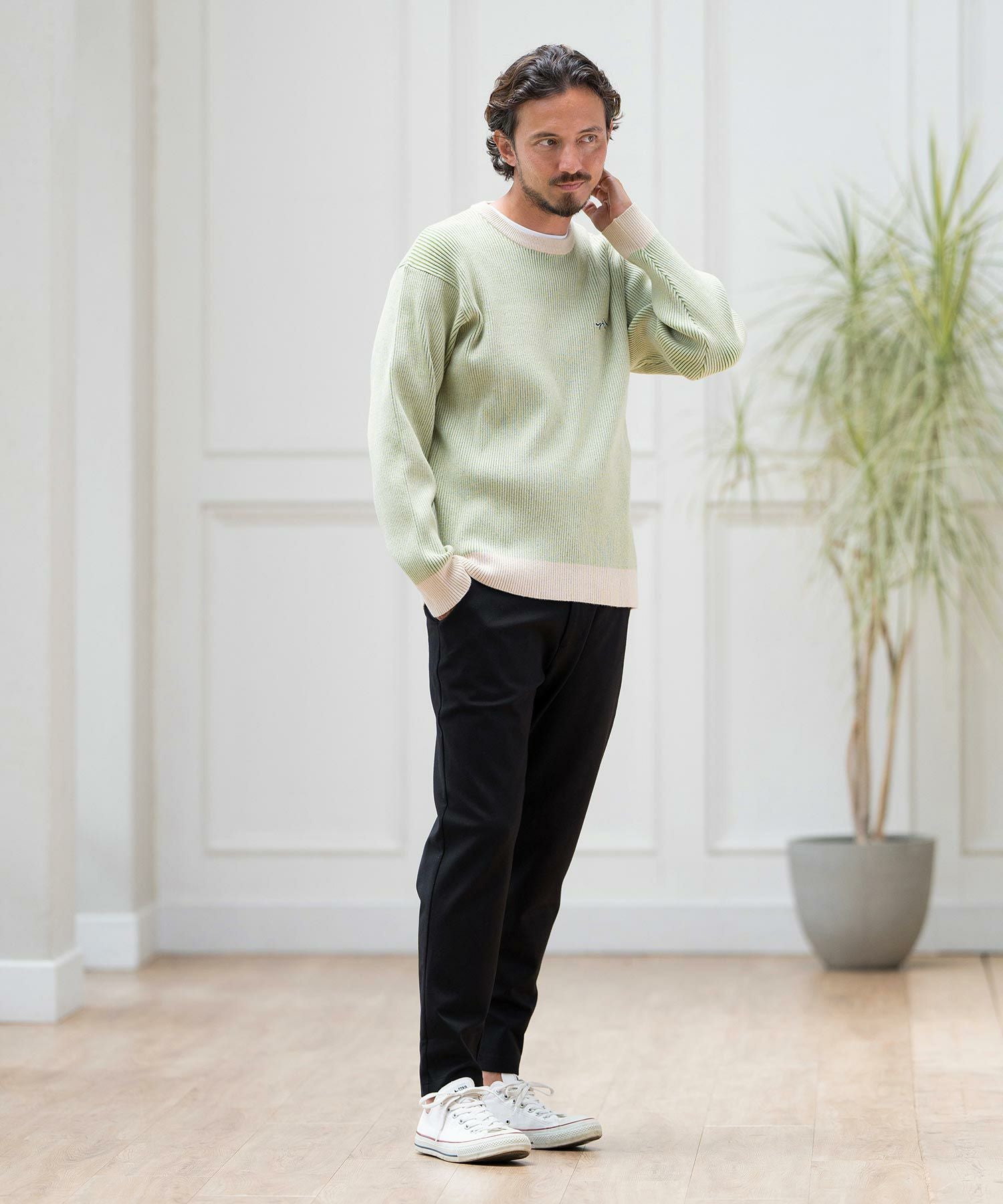 CALL&RESPONSE 50%OFF【CALL&RESPONSE(コールアンドレスポンス)】スムースニット-配色リブ編みPO プルオーバー(244-1441-06)