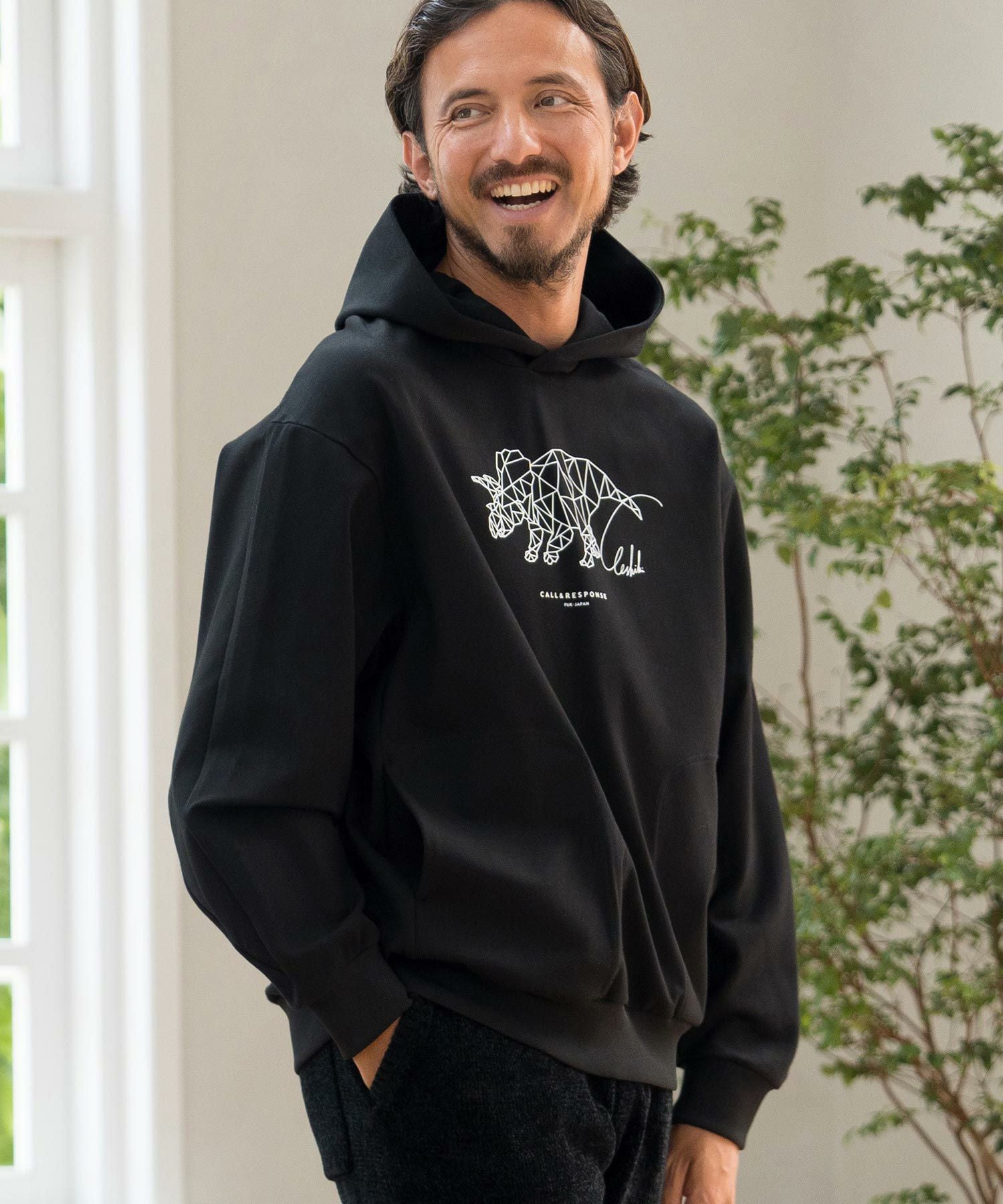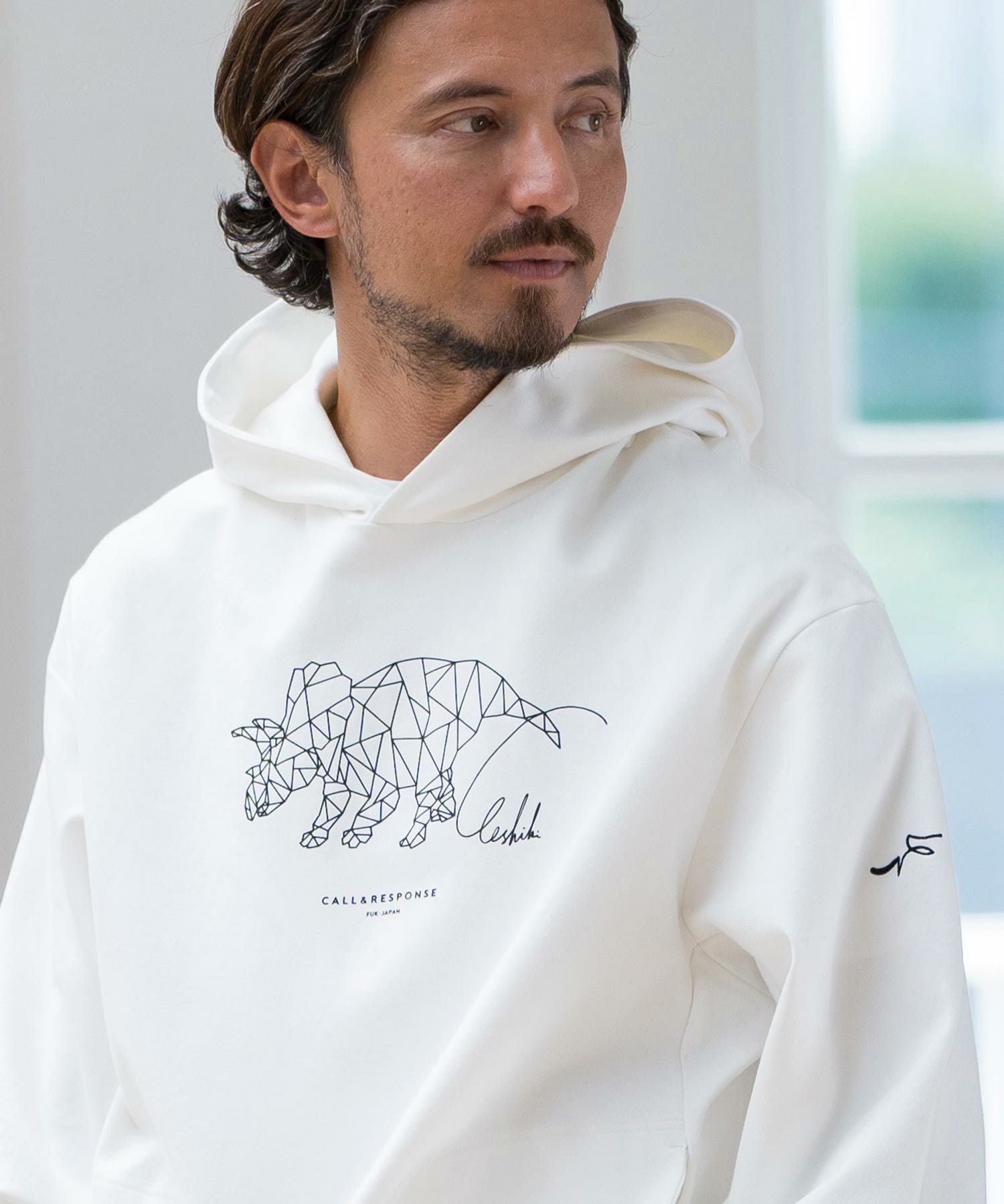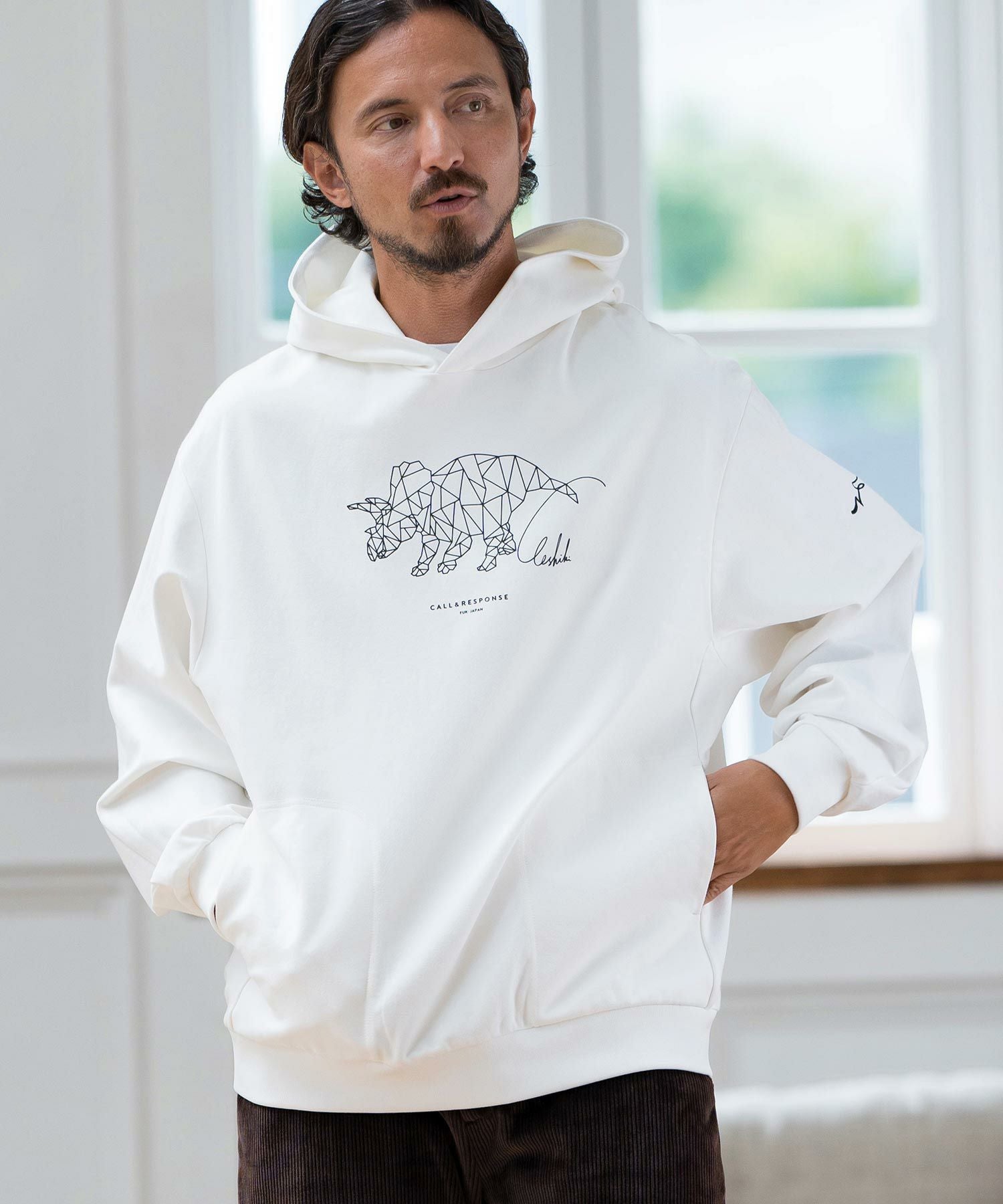 CALL&RESPONSE 30%OFF【CALL&RESPONSE(コールアンドレスポンス)】トリケラトプス-プリントパーカー-ダンボールニット(243-1325-04)