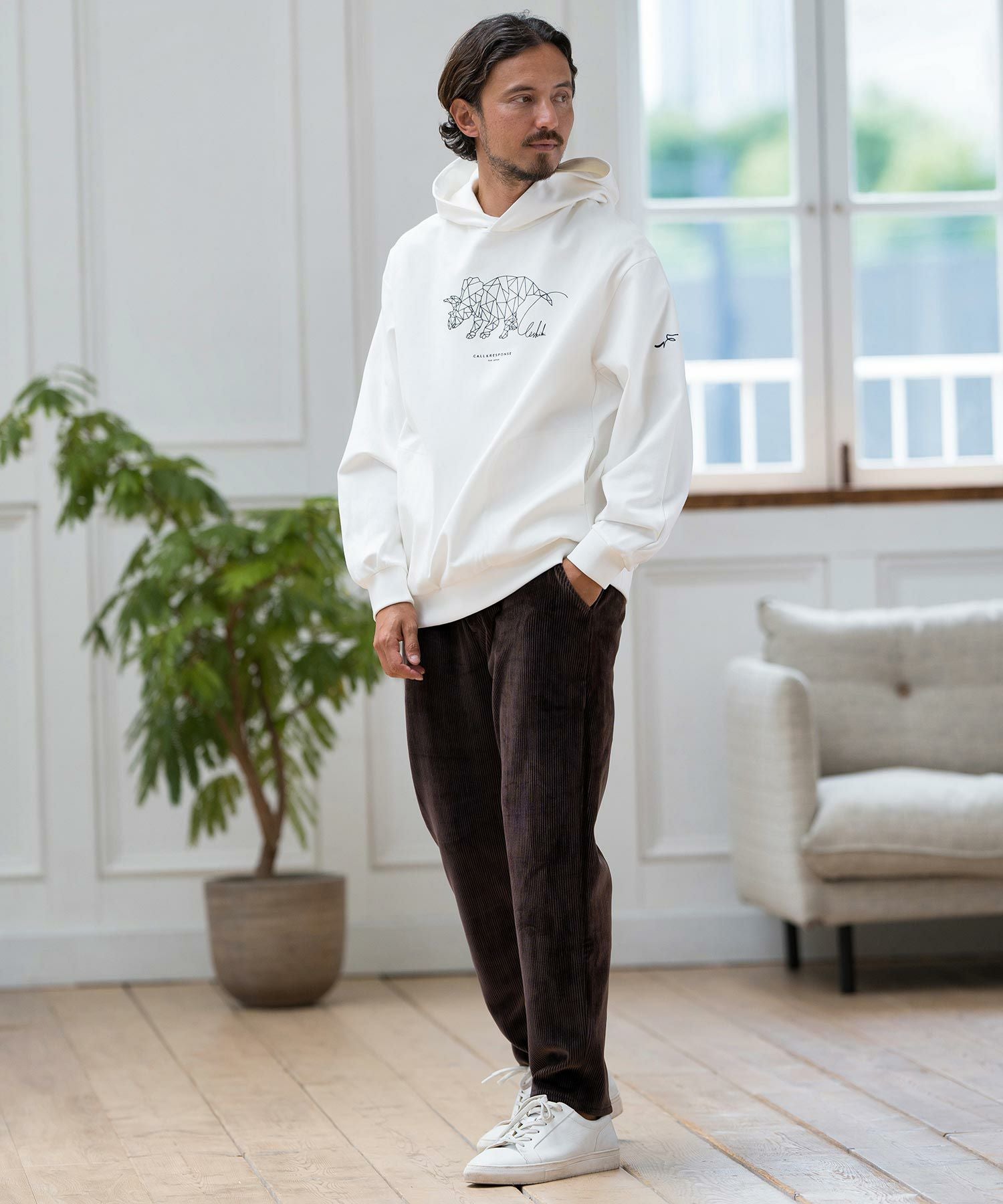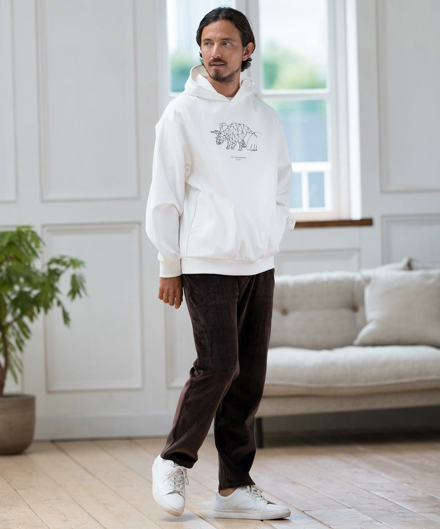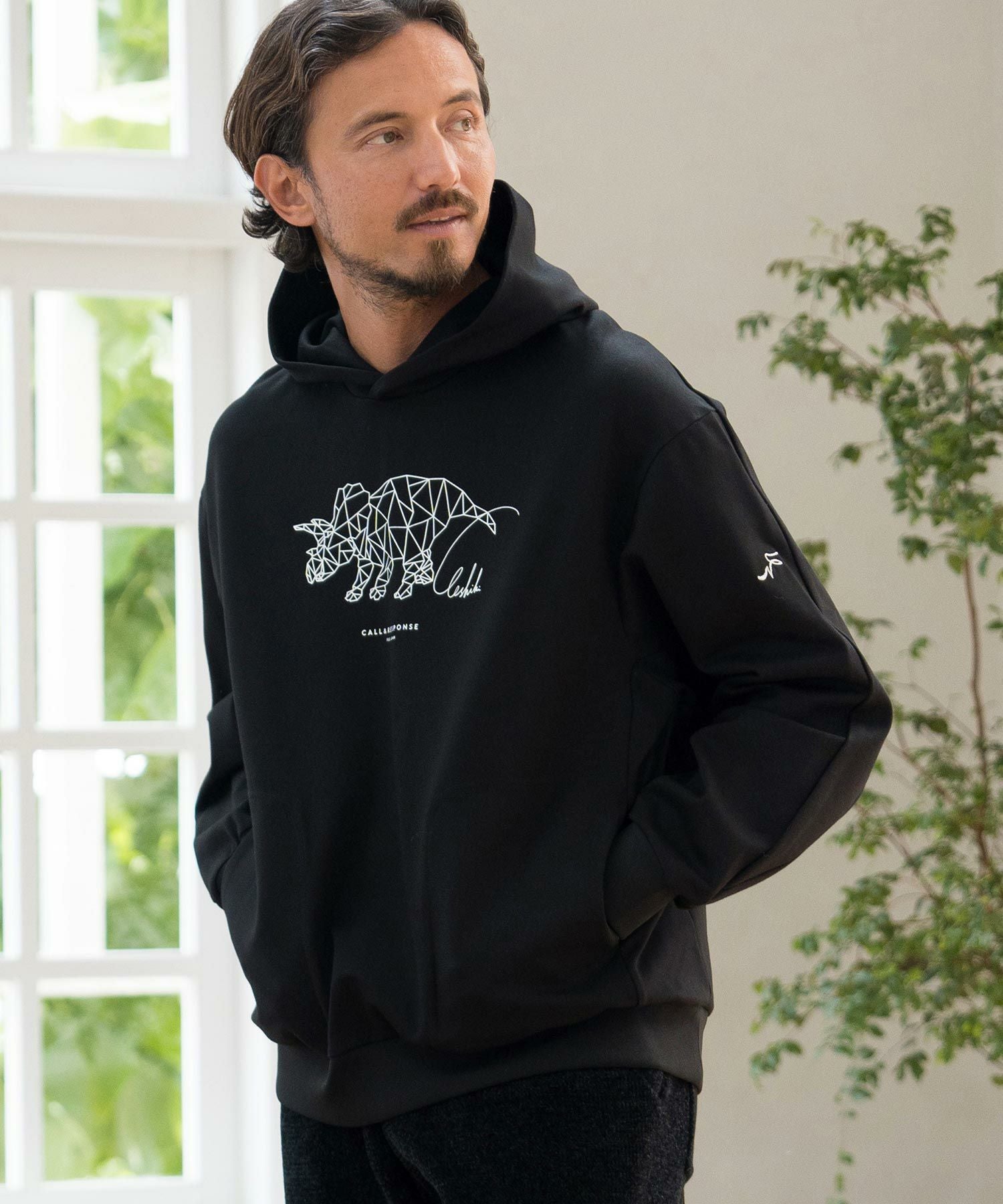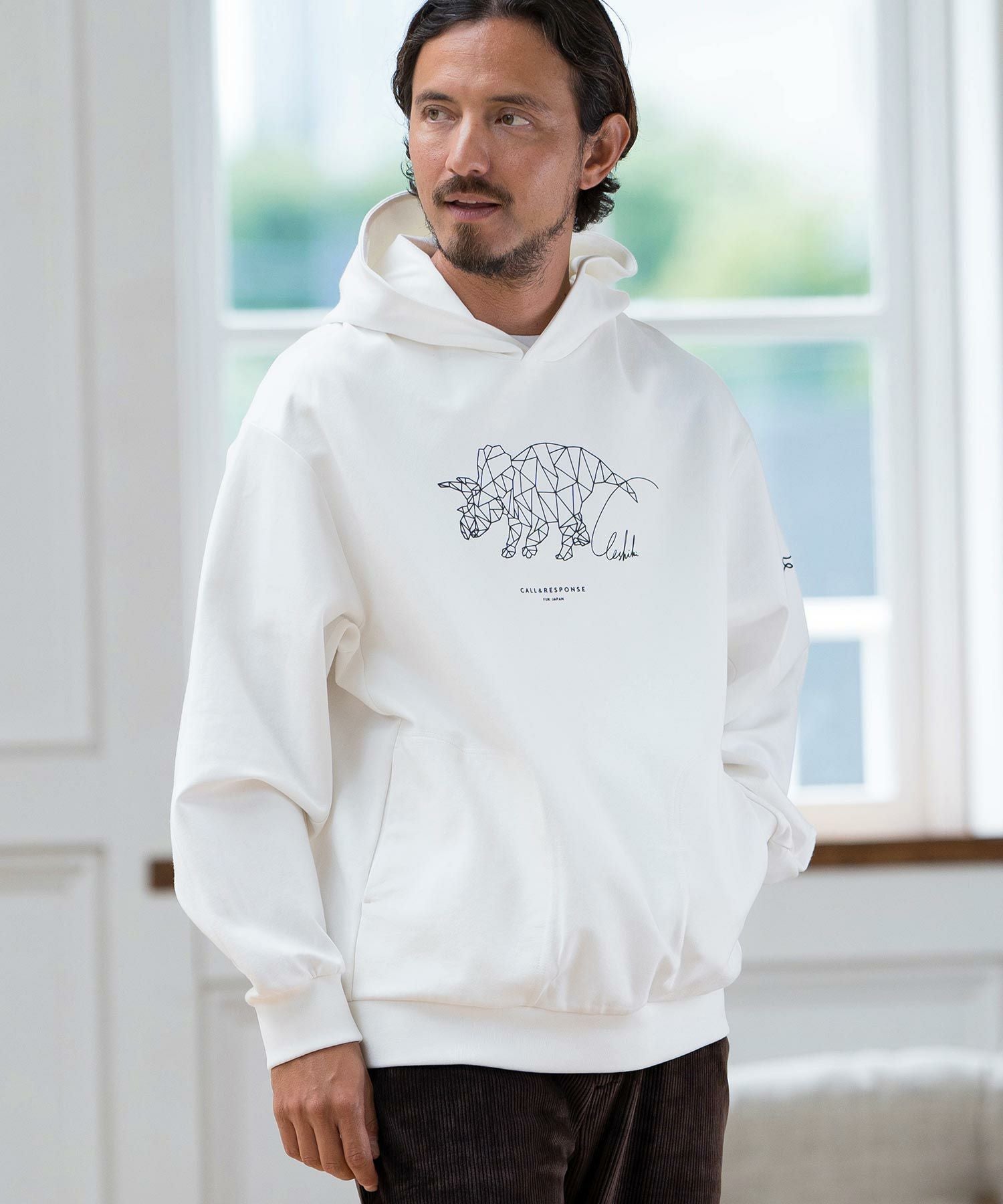 CALL&RESPONSE 30%OFF【CALL&RESPONSE(コールアンドレスポンス)】トリケラトプス-プリントパーカー-ダンボールニット(243-1325-04)