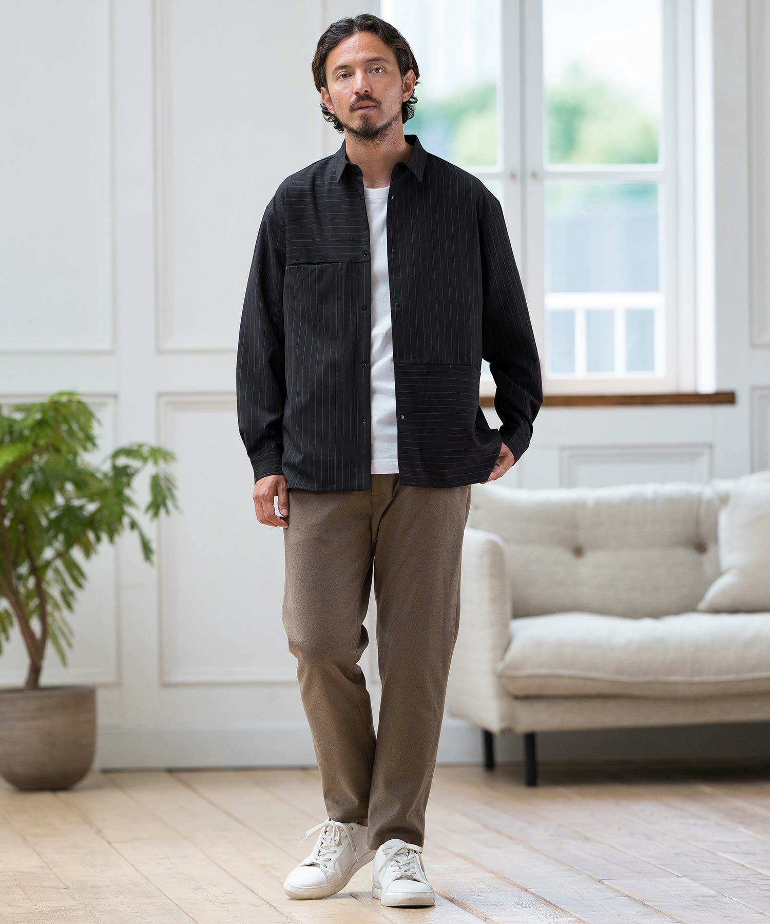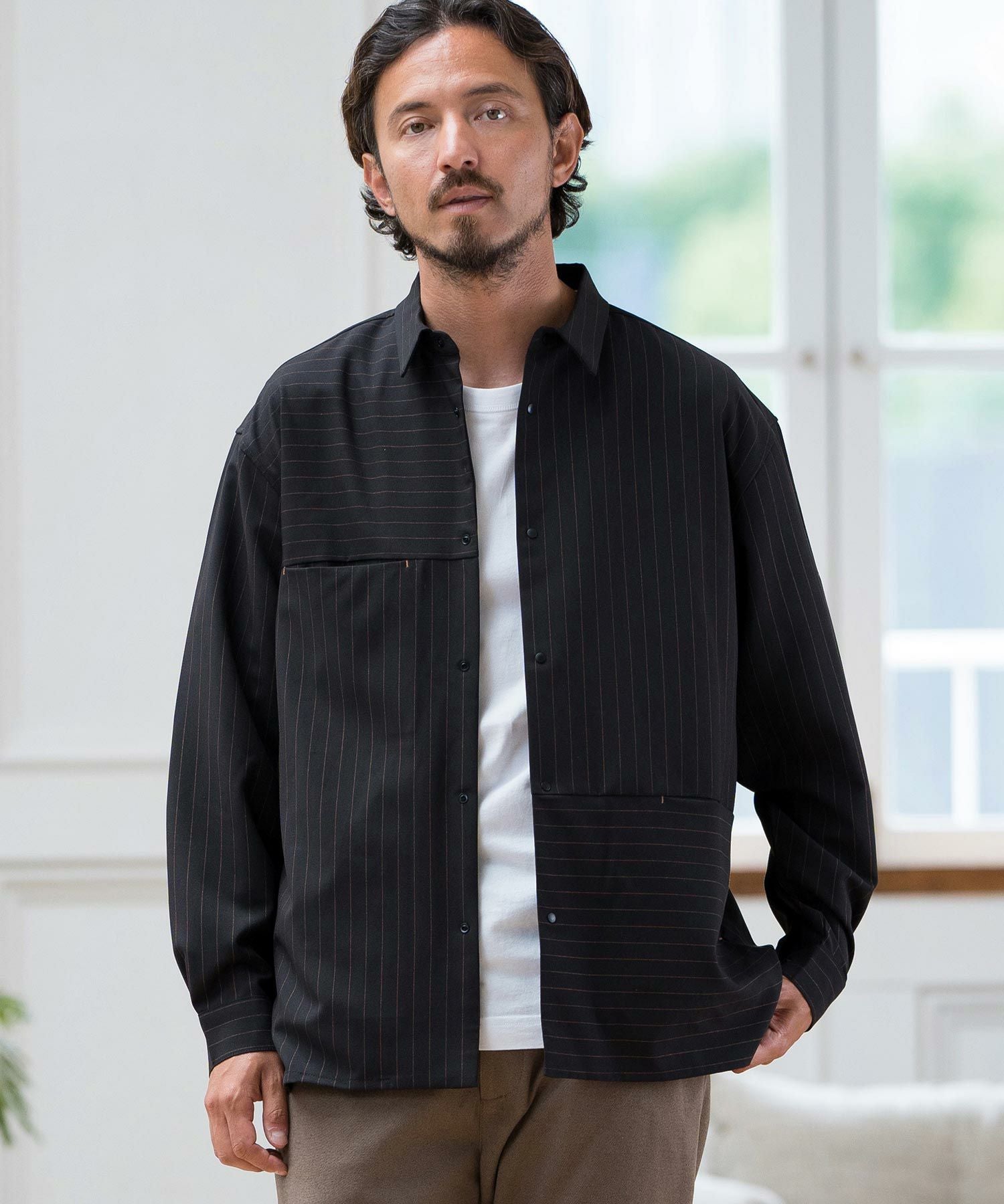 CALL&RESPONSE 30%OFF【CALL&RESPONSE(コールアンドレスポンス)】ストライプ-切り替え長袖シャツ(243-1211-03)