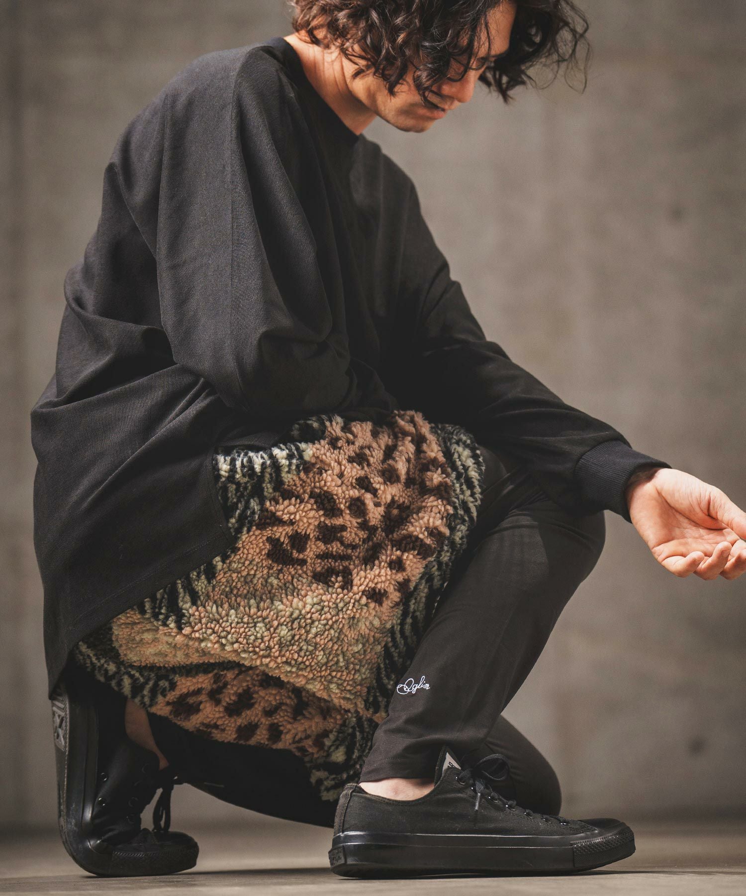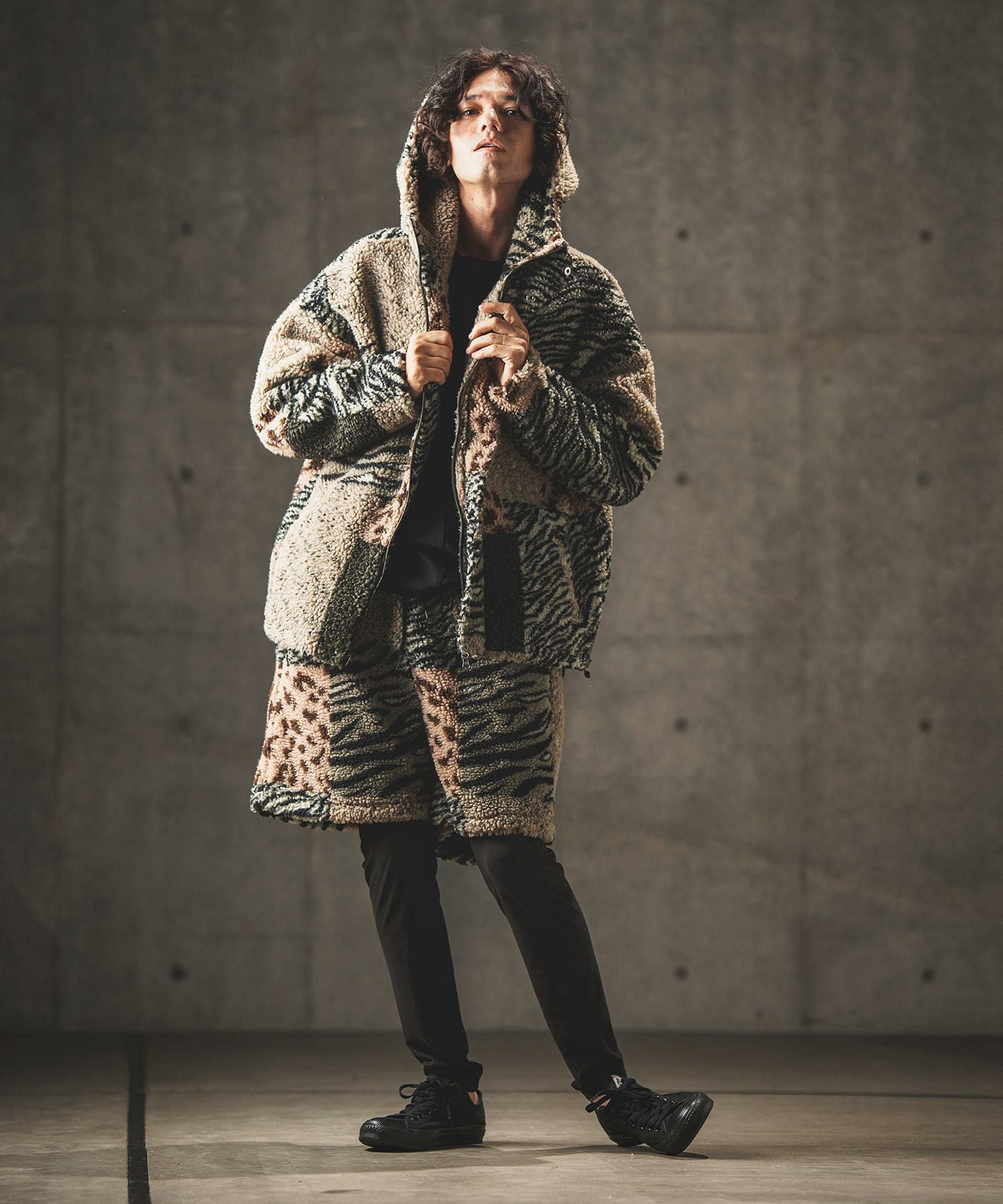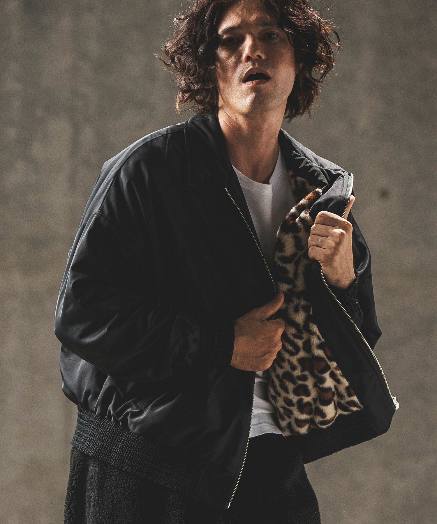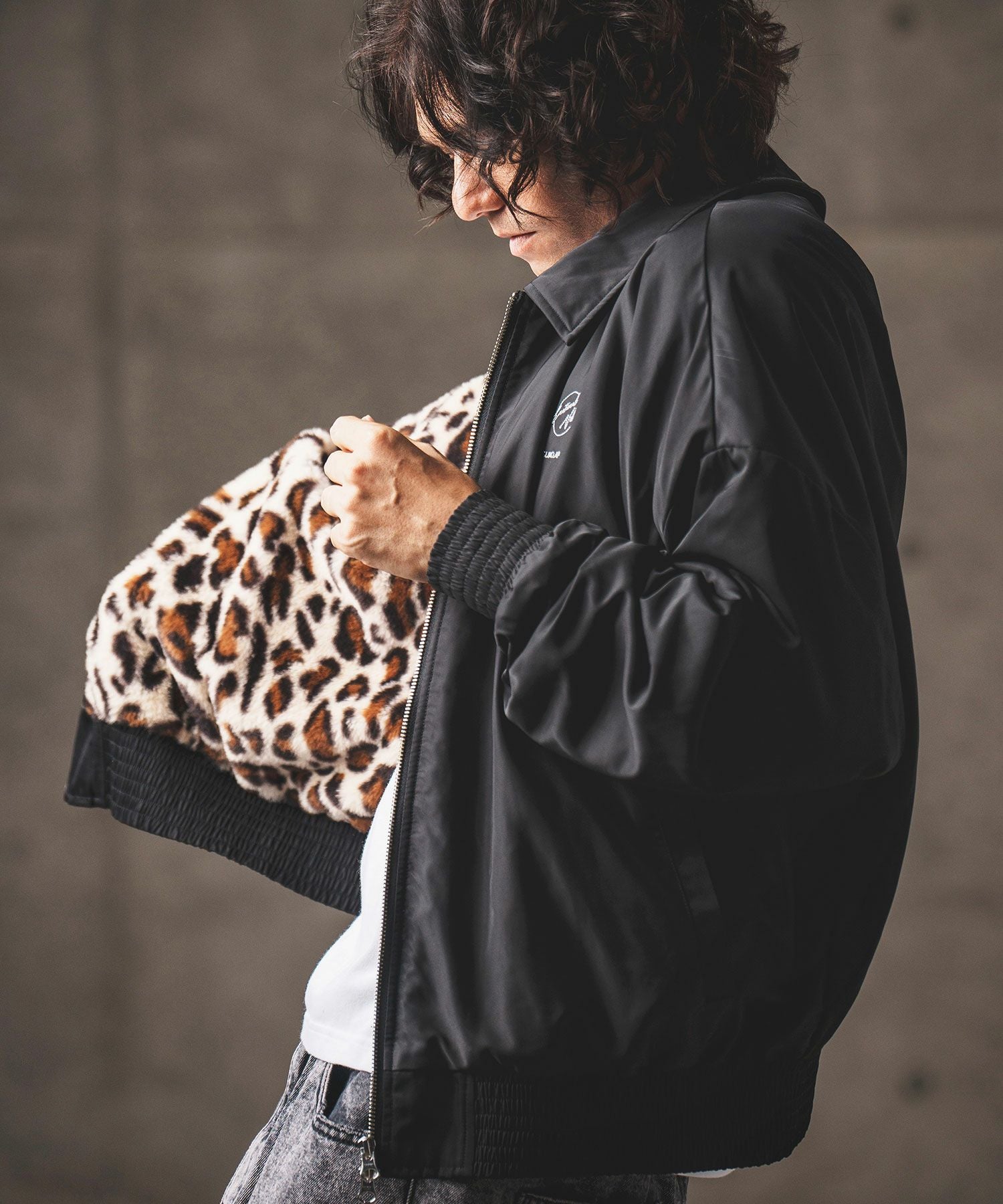 GLIMCLAP 30%OFF【GLIMCLAP(グリムクラップ)】 Ripstop nylon × shaggy leopard zip up jacket レオパードジャケット(17-141-gla-ce)