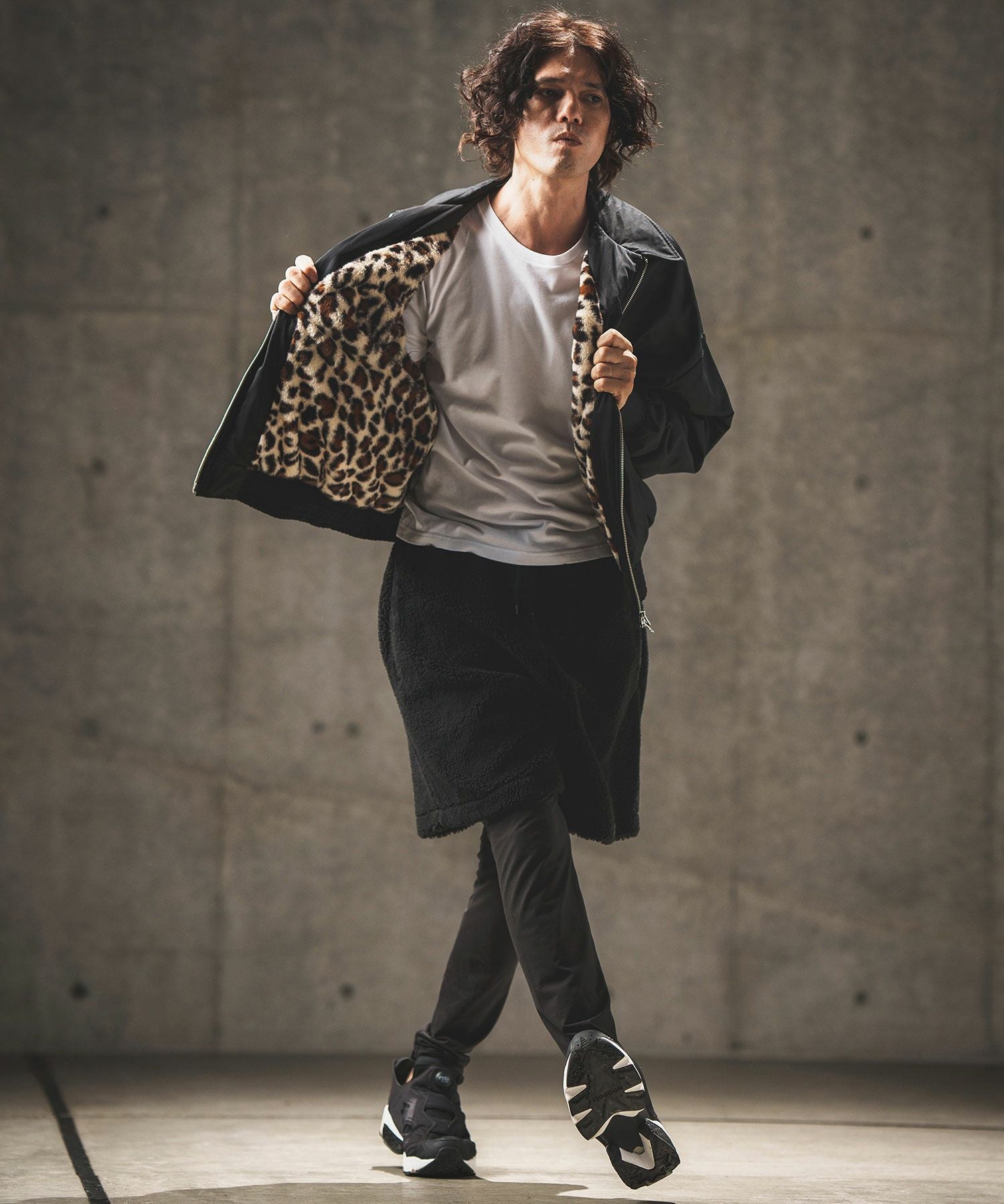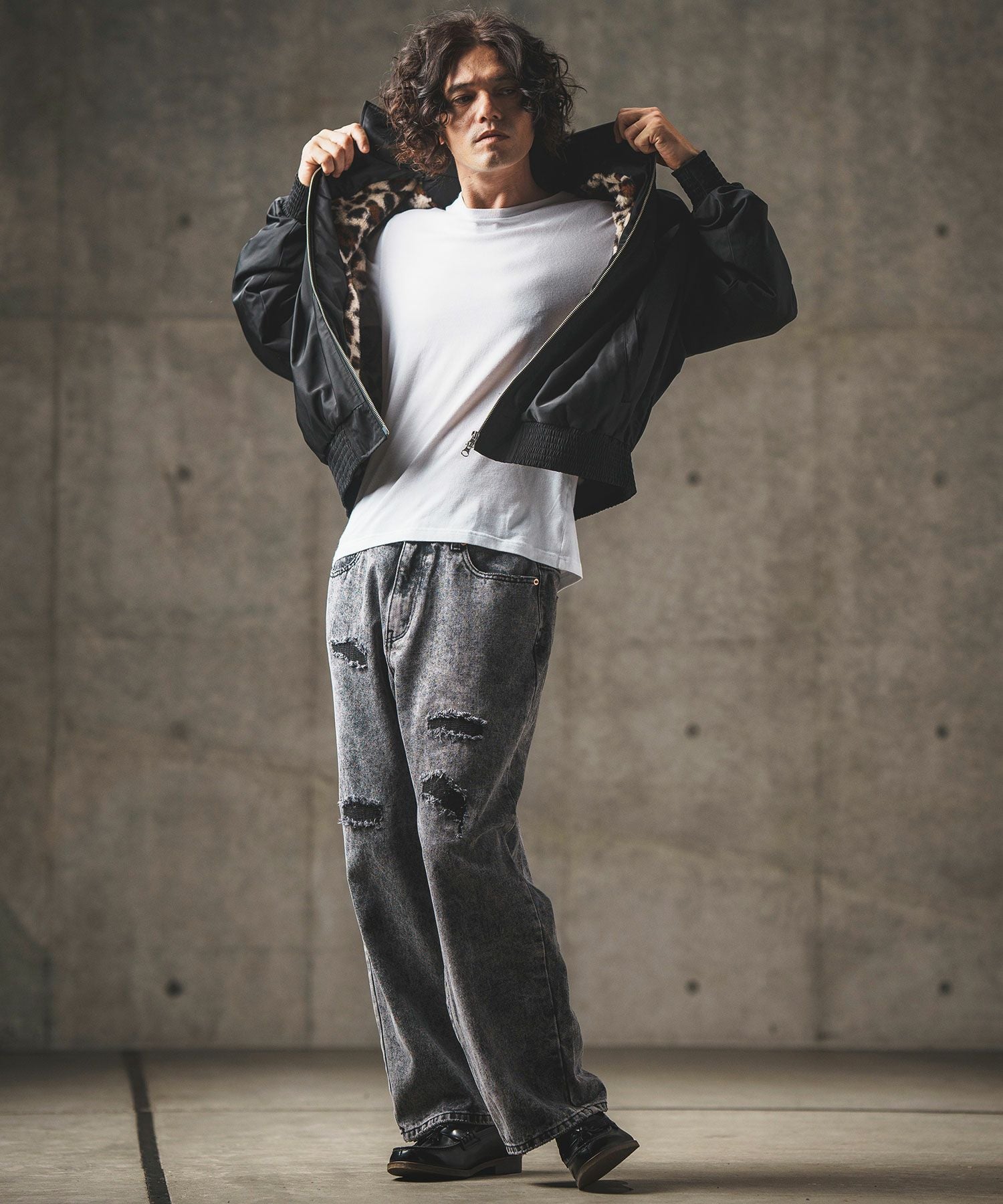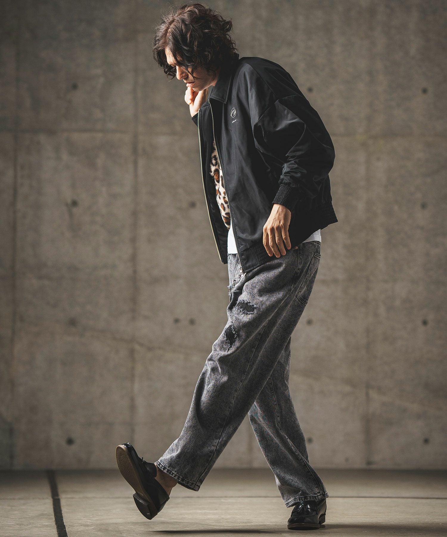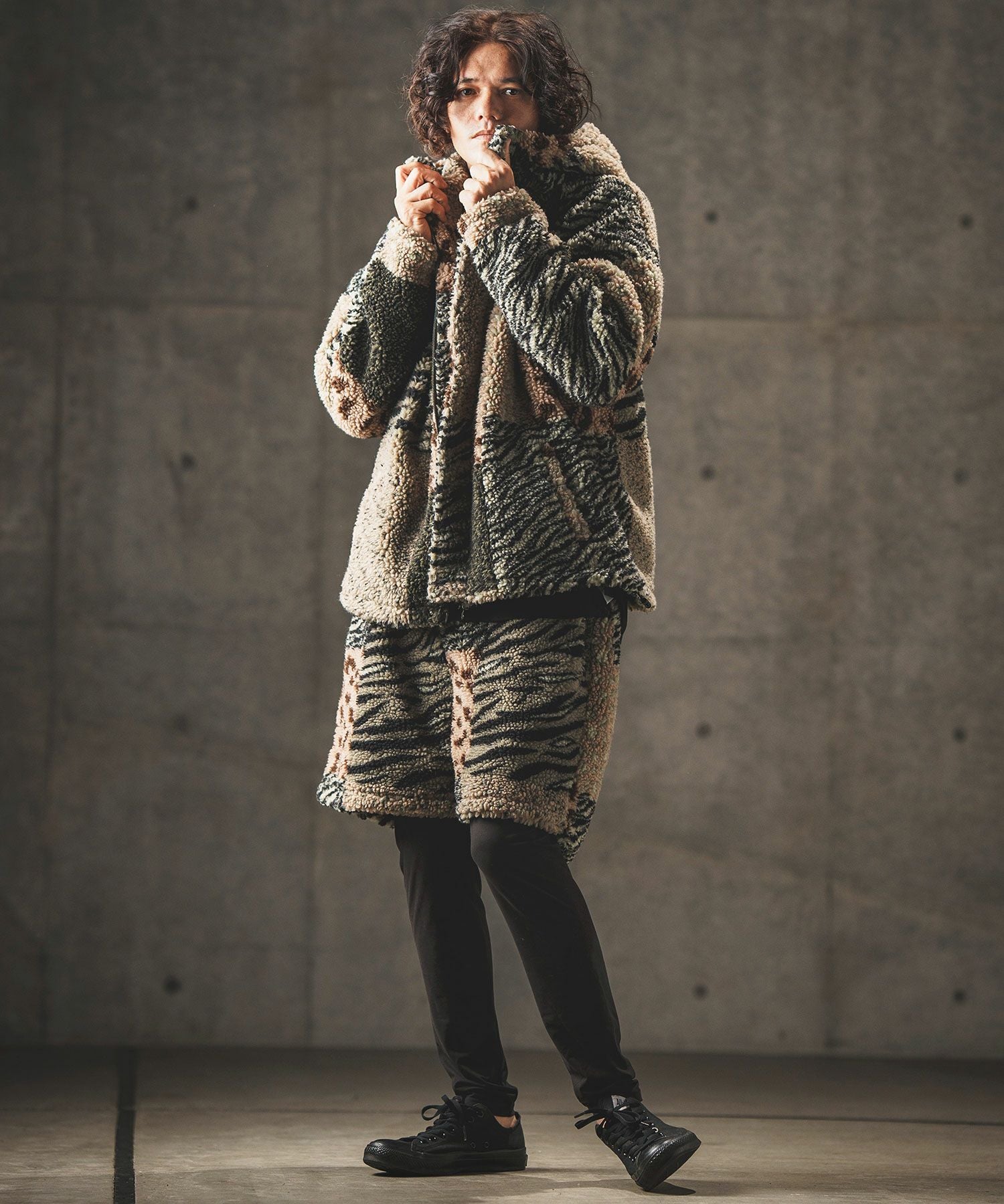GLIMCLAP 30%OFF【GLIMCLAP(グリムクラップ)】 Ripstop nylon × shaggy leopard zip up jacket レオパードジャケット(17-141-gla-ce)