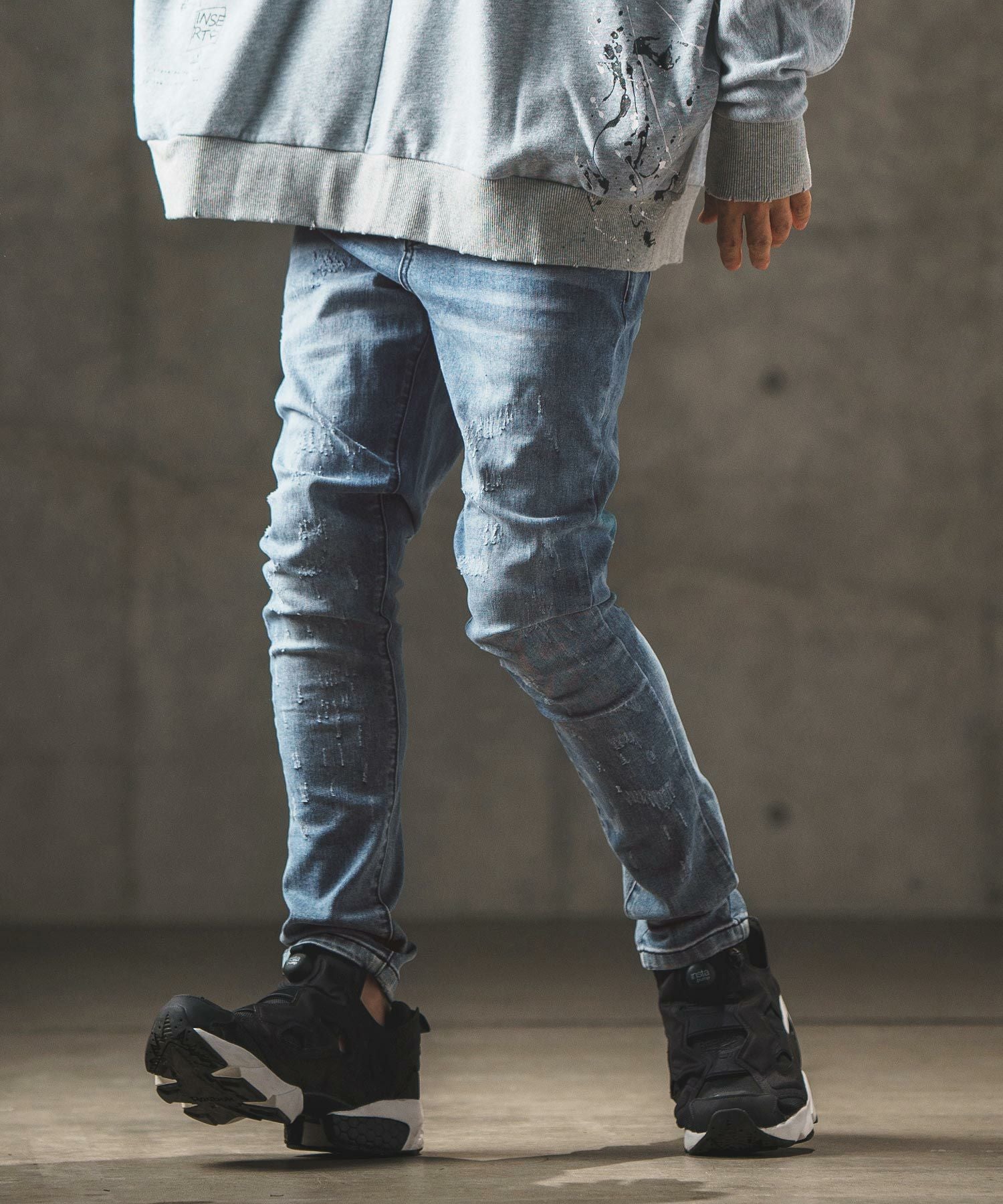 GLIMCLAP 【GLIMCLAP(グリムクラップ)】Sprinkle scratch processing -black stretch version- デニムパンツ(17-135-gla-ce)