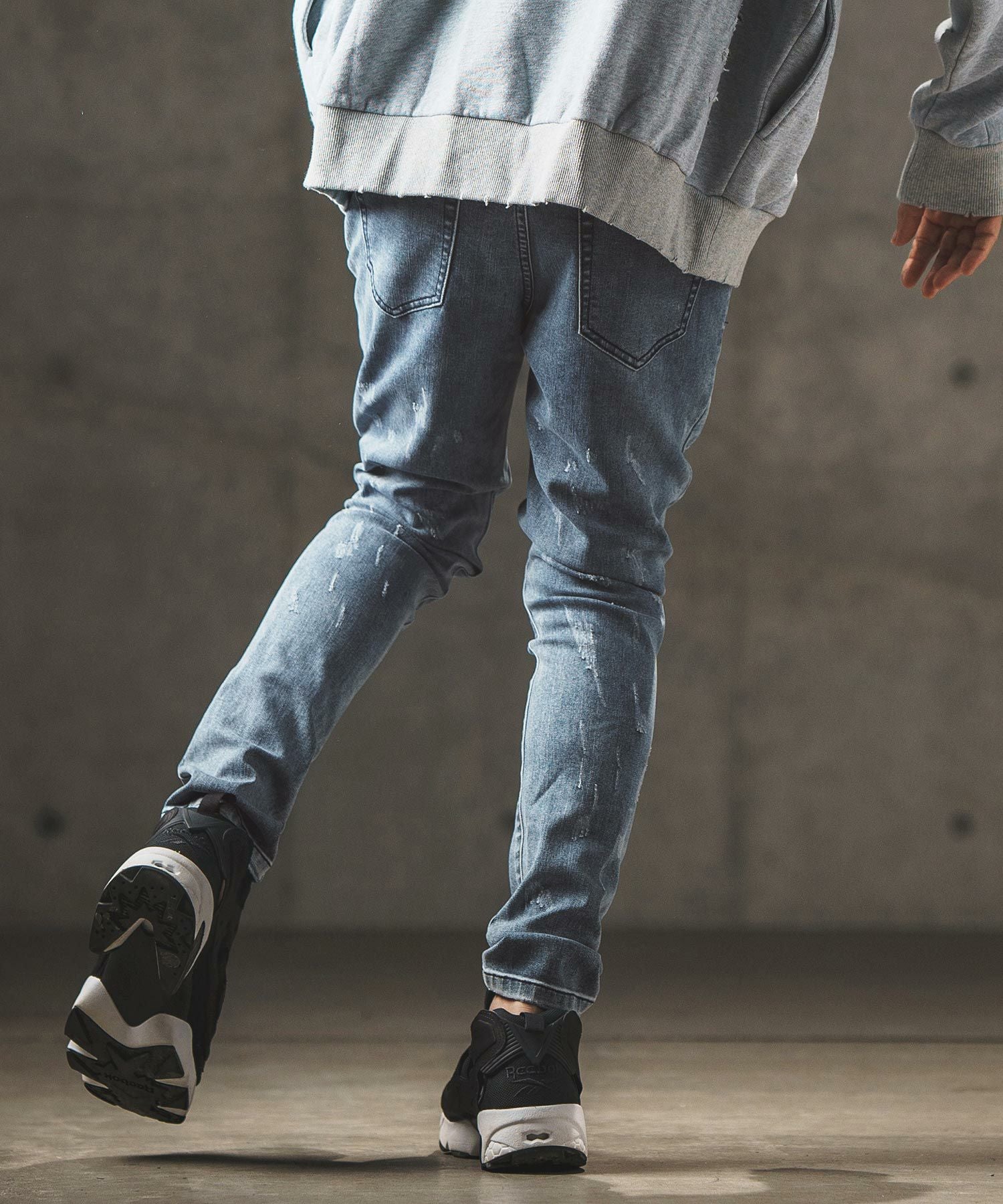 GLIMCLAP 30%OFF【GLIMCLAP(グリムクラップ)】Sprinkle scratch processing -stretch denim version- デニムパンツ(17-136-gla-ce)