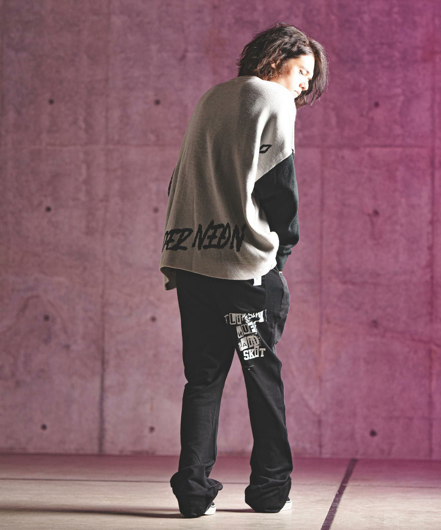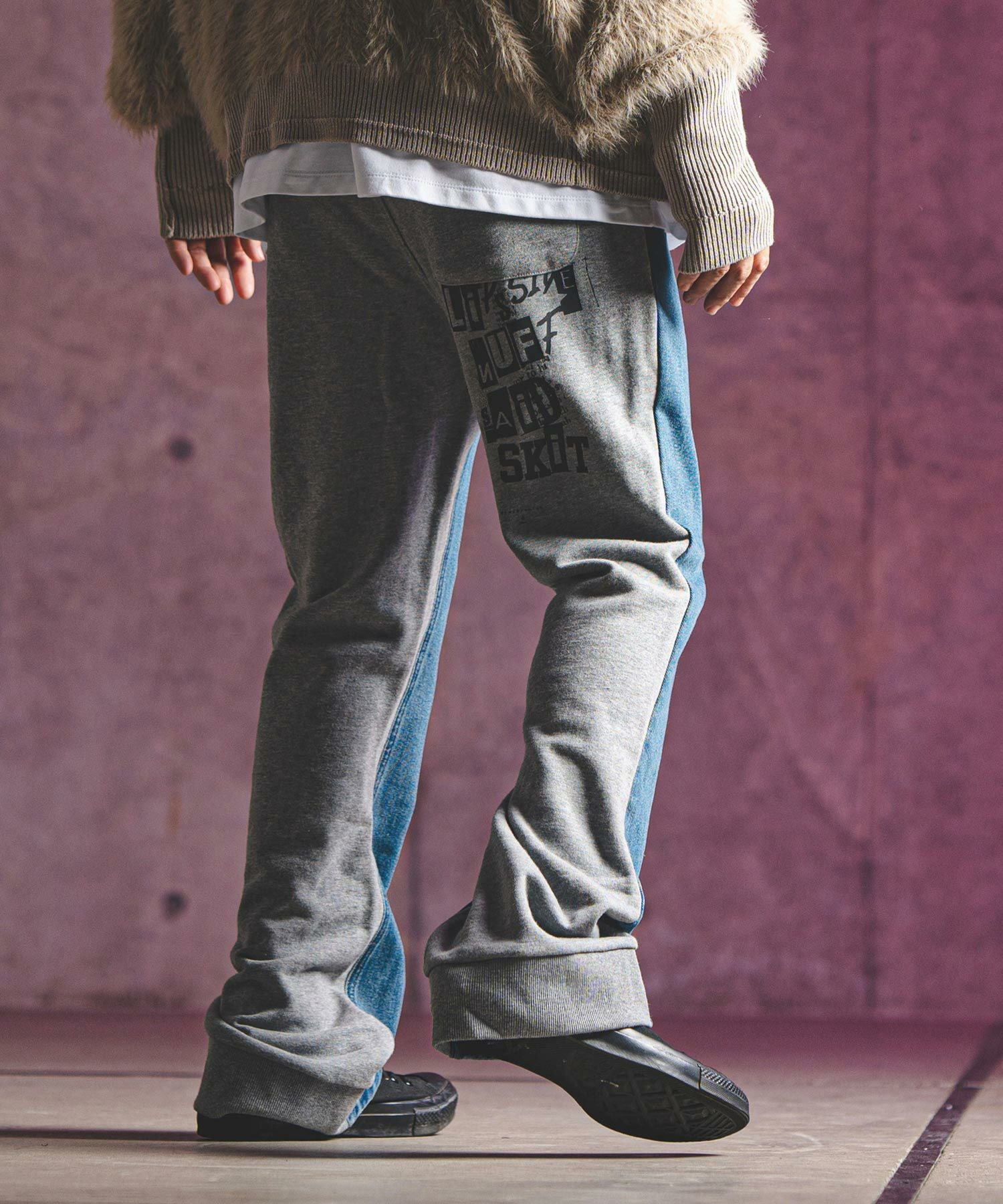 GLIMCLAP 30%OFF【GLIMCLAP(グリムクラップ)】Back shaggy double knit color scheme design tight fit pants タイトフィットパンツ(17-140-gla-ce)