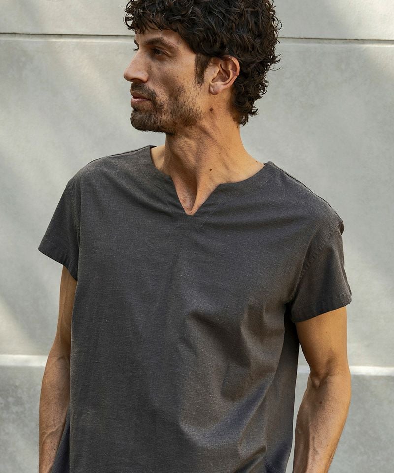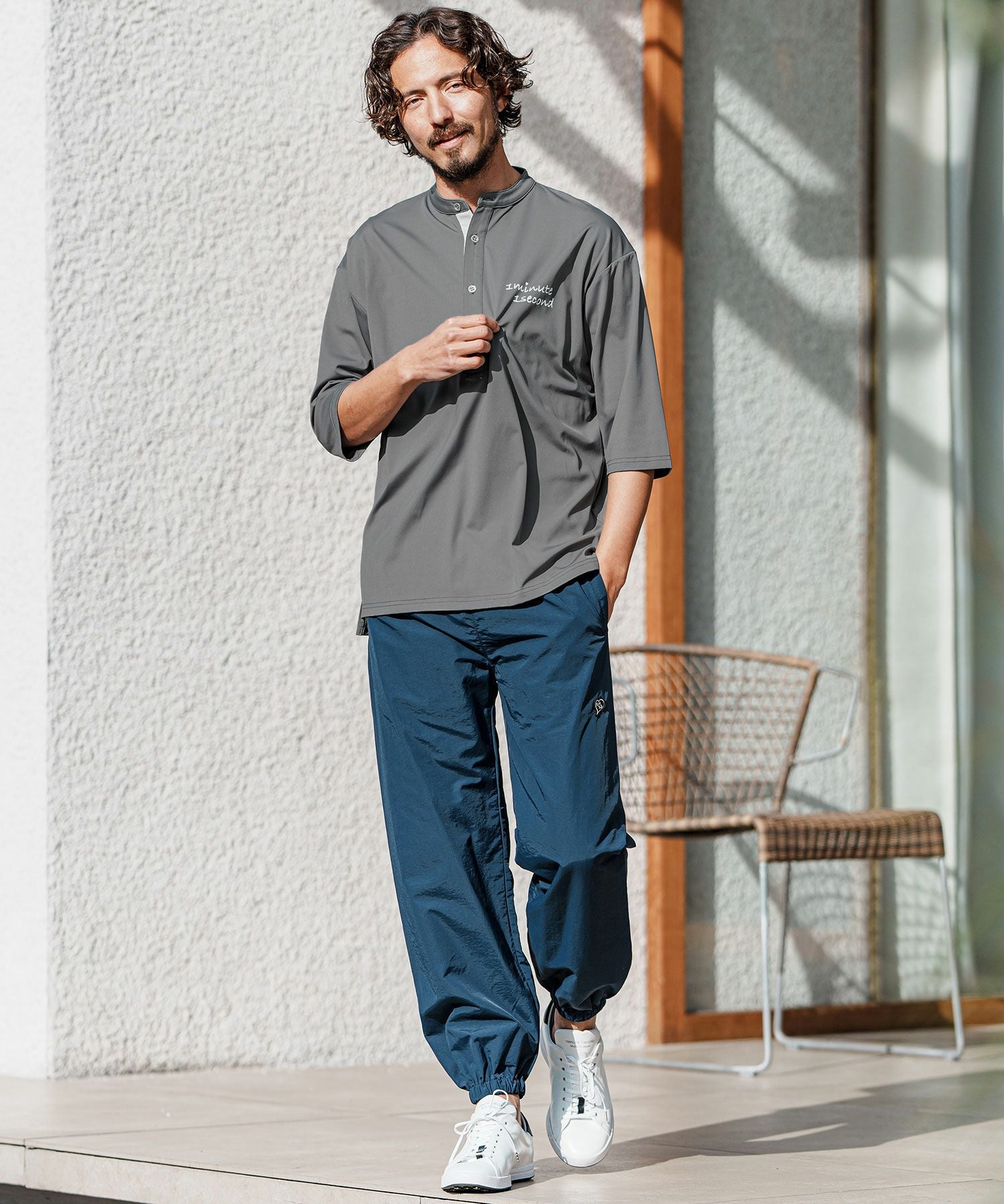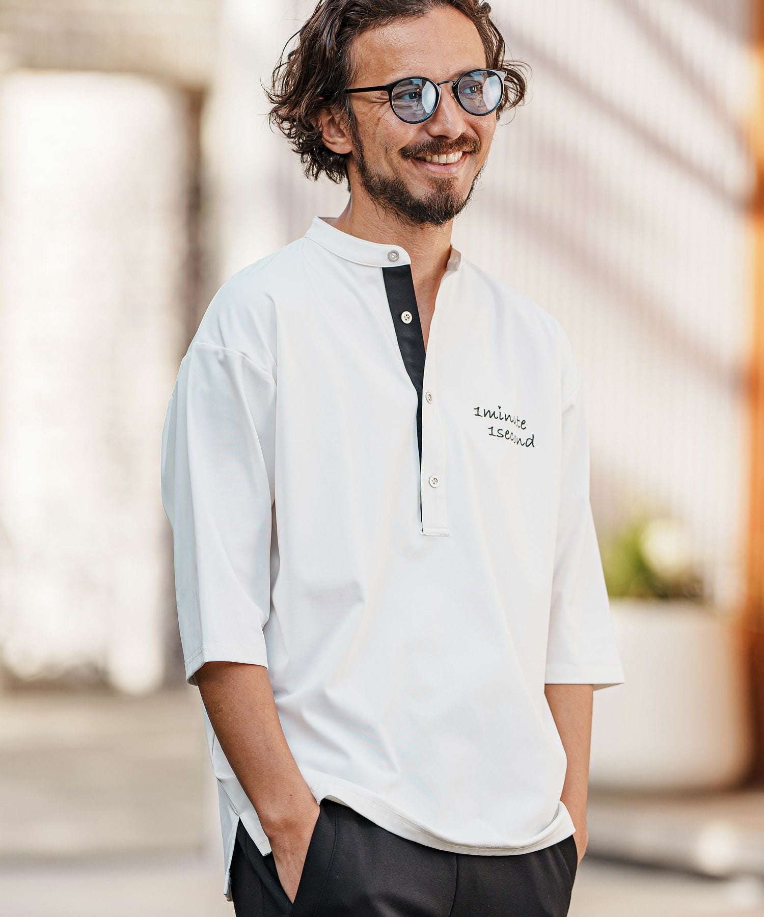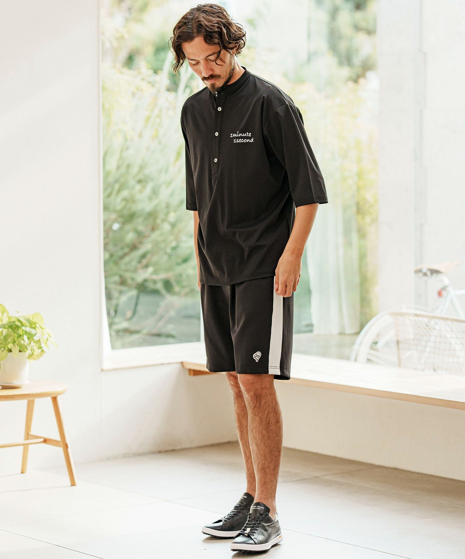1minute 1second 【1minute 1second(ワンミニットワンセカンド)】bicolor placket no-collar polo ポロシャツ(1M25H140)