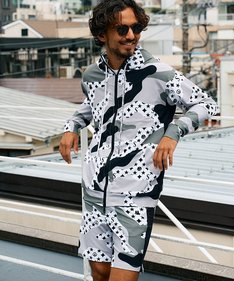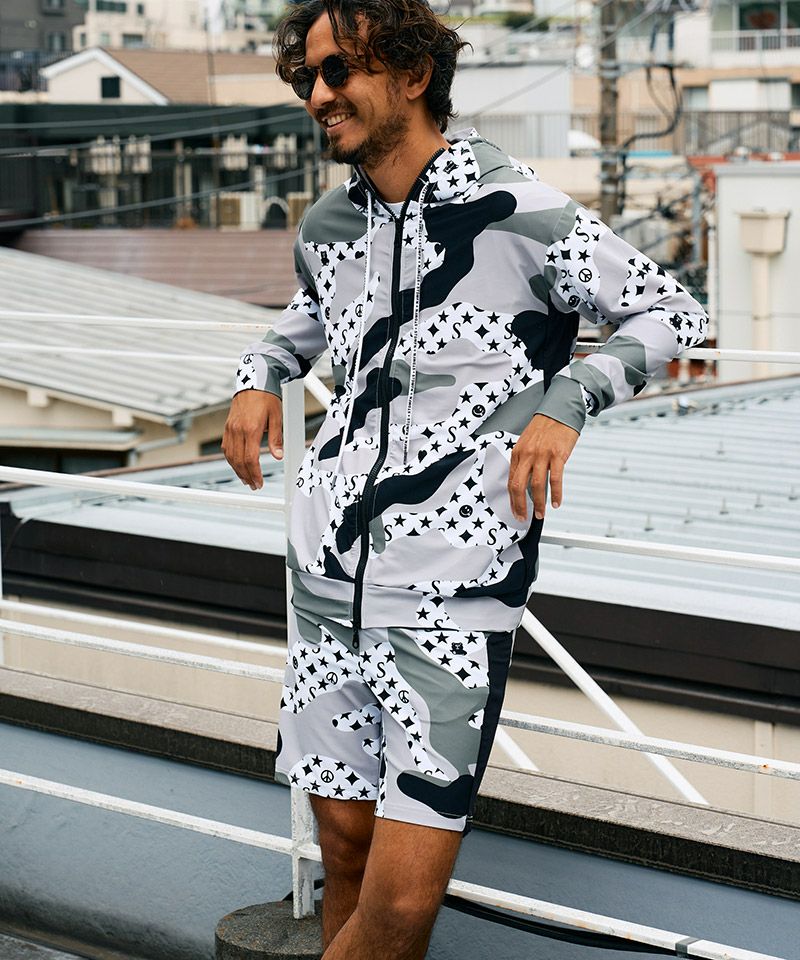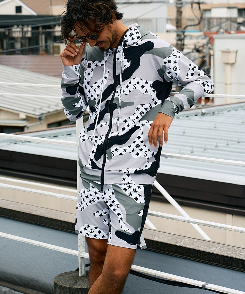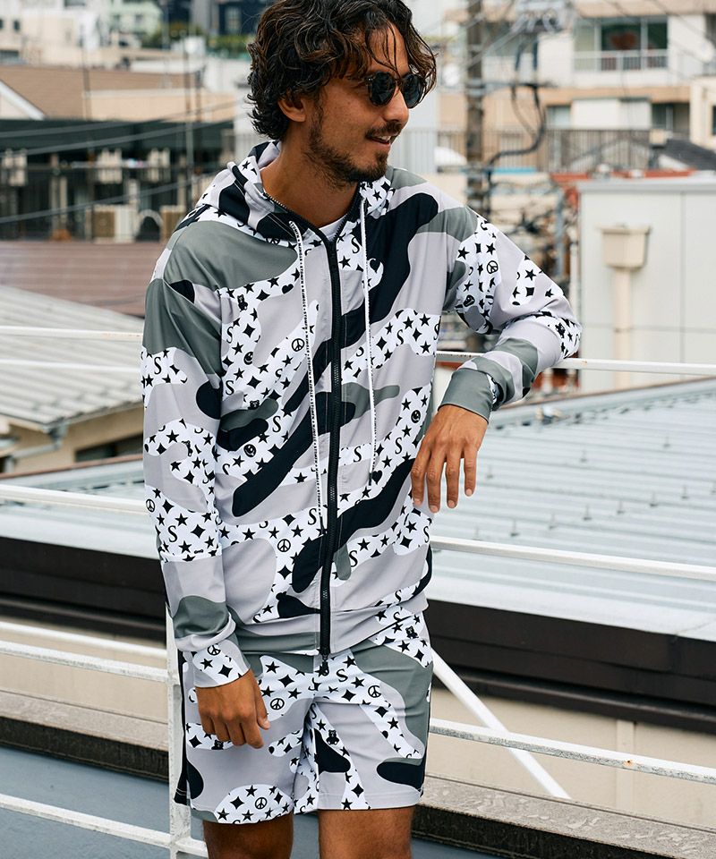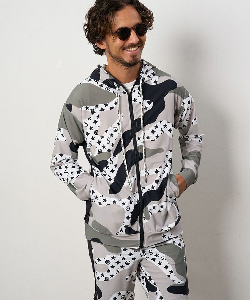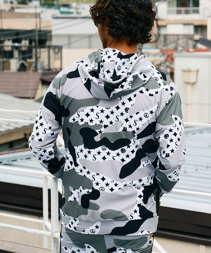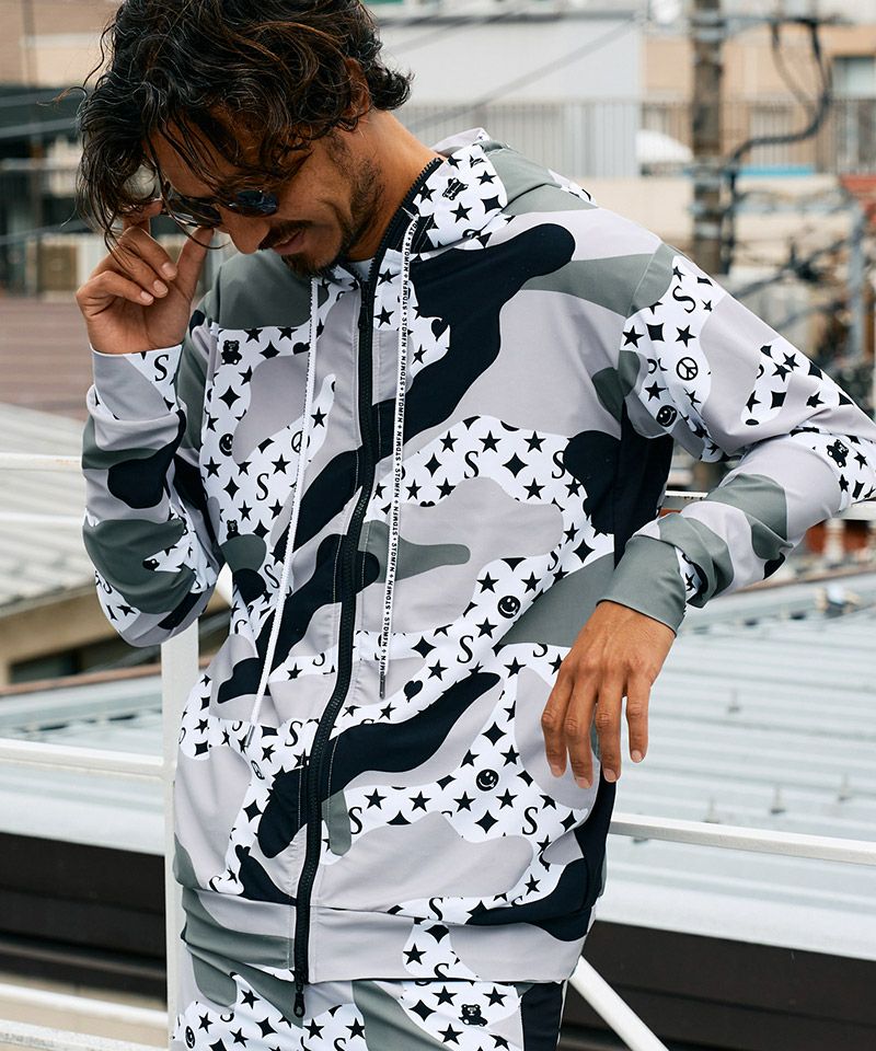 STUD MUFFIN 20%OFF【STUD MUFFIN(スタッドマフィン)】ストレッチナイロン スターグラムカモフラージュWジップアップラッシュパーカー(514-02776)