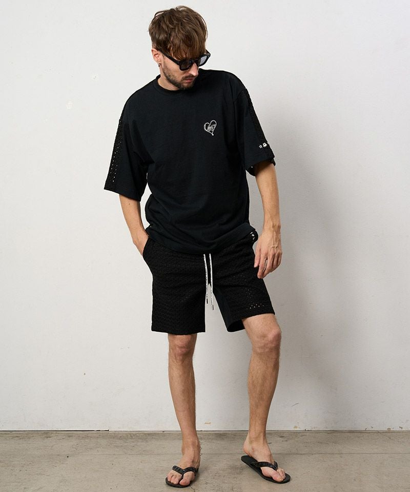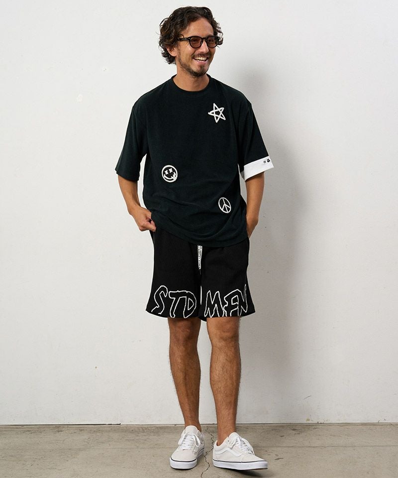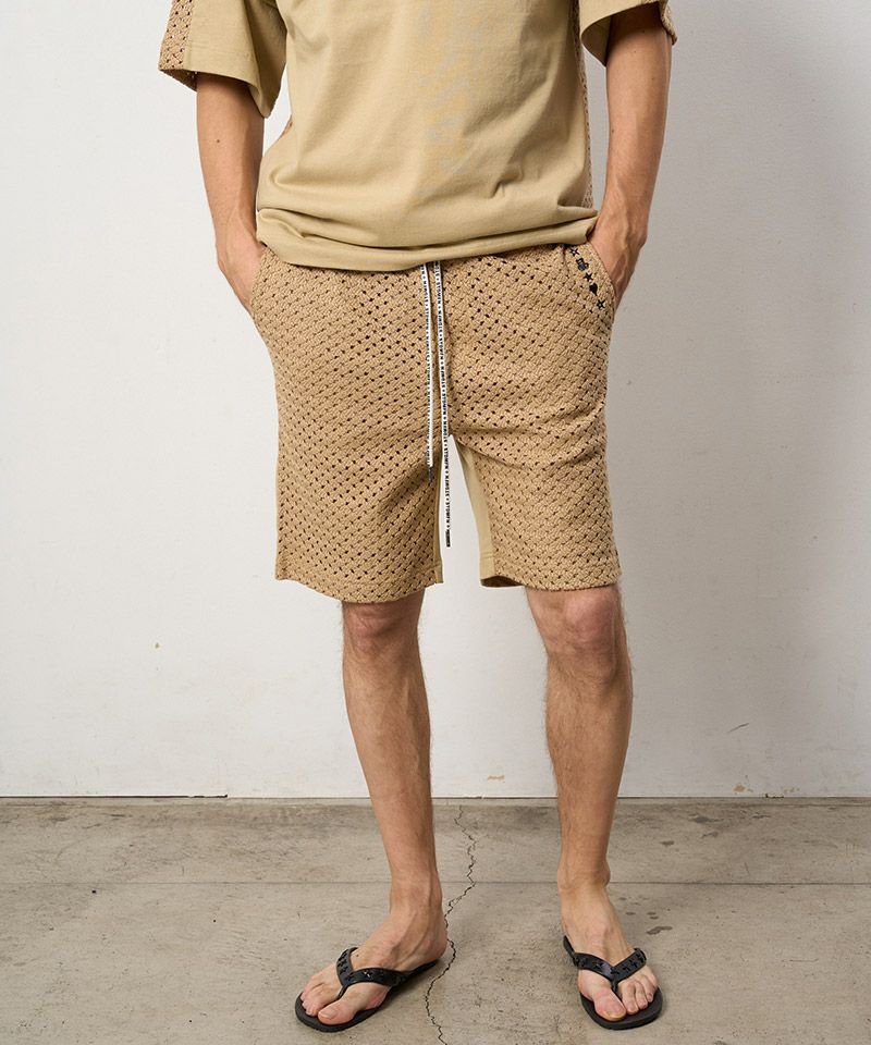 STUD MUFFIN 20%OFF【STUD MUFFIN(スタッドマフィン)】ラッセルメッシュ-ヘビージャージー切替 サガラパッチショートパンツ(514-06277)