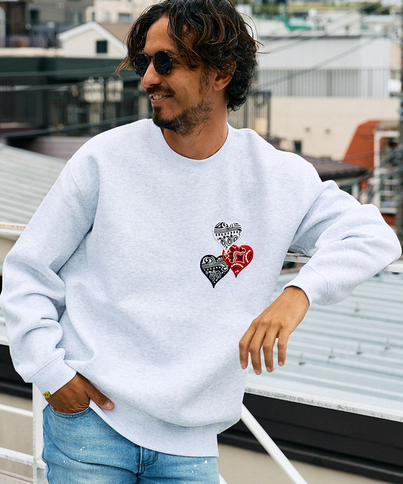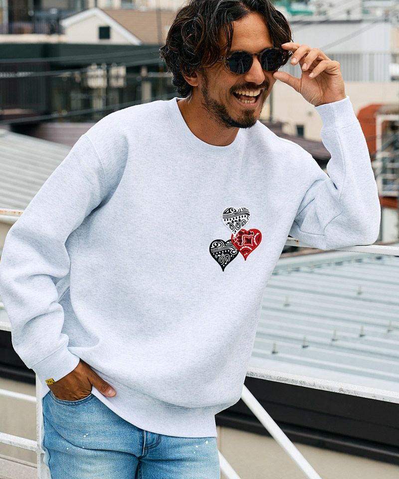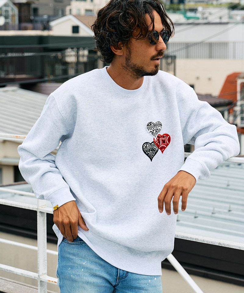 STUD MUFFIN 30%OFF【STUD MUFFIN(スタッドマフィン)】10ozT-C裏毛起毛 バンダナハートパッチLPSプリント スエットシャツ(514-02767)
