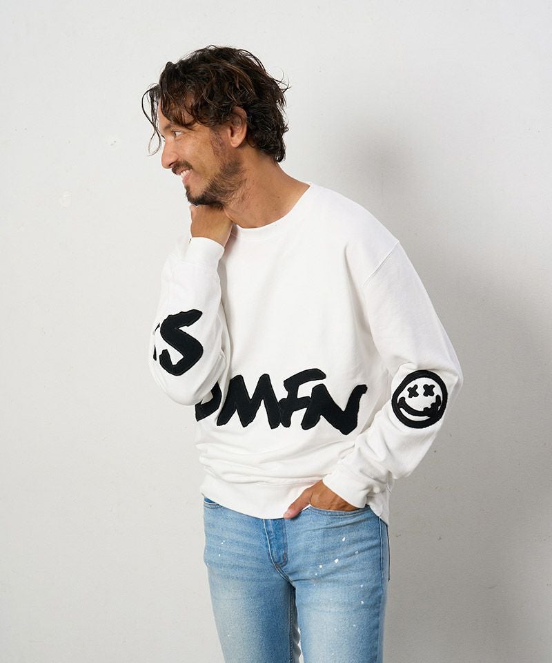STUD MUFFIN 30%OFF【STUD MUFFIN(スタッドマフィン)】10ozコットン裏毛パイル グラフィティカットオフパッチワーク スエットシャツ(514-02768)