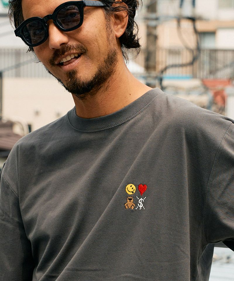 STUD MUFFIN 【STUD MUFFIN(スタッドマフィン)】ヘビーコットンバスク天竺 カートベアサガラパッチドルマンスリーブ Tシャツ(514-02791)